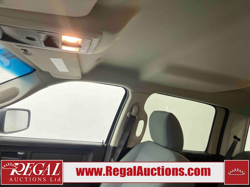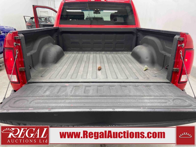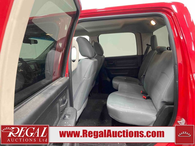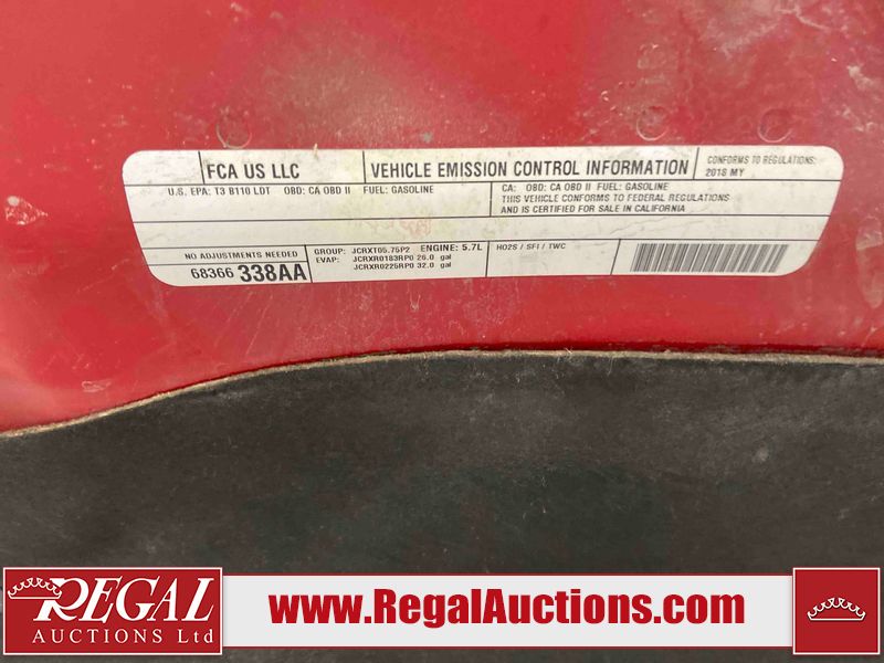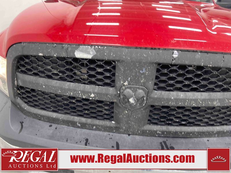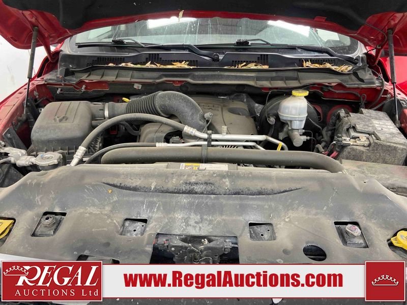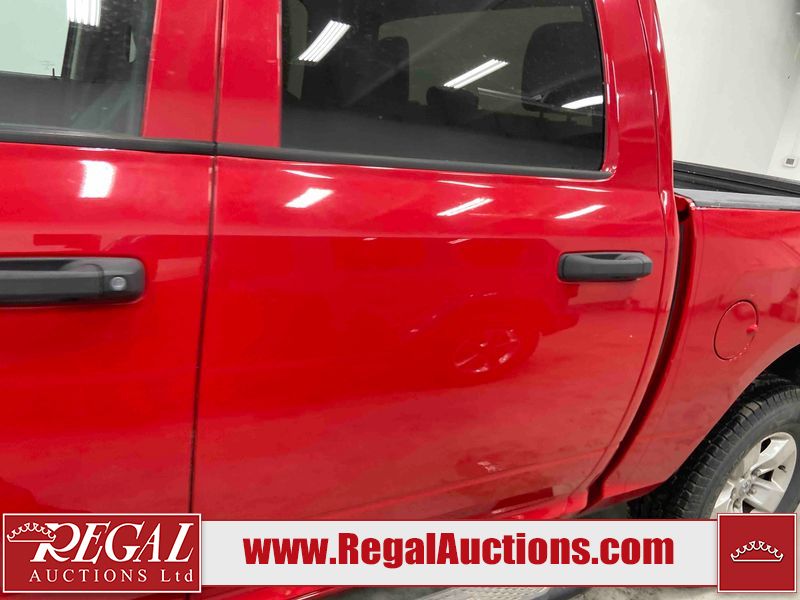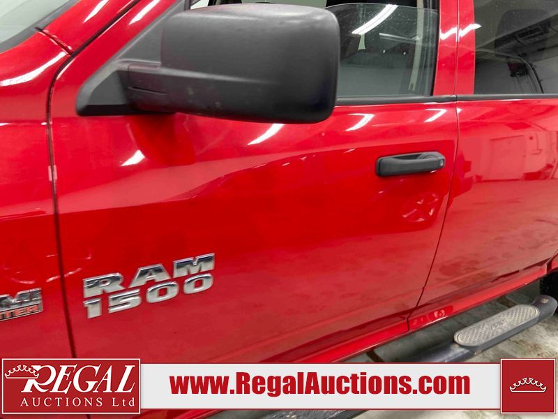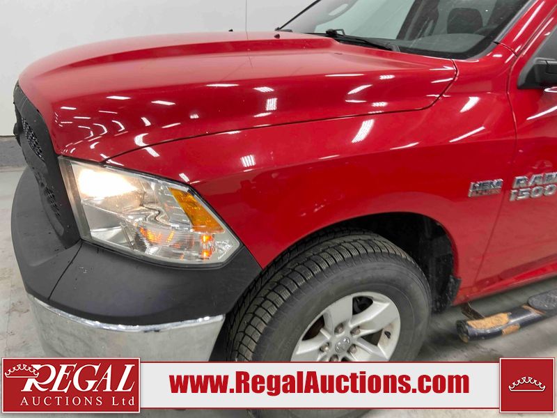 This 2018 RAM 1500 ST CREW CAB SWB 4WD 5.7L is powered by a 8 cylinder gasoline engine and an automatic transmission. It is equipped with four wheel drive. The truck has seats for 6 people. The truck has low mileage for its age. The body looks to be in fair condition overall. There is moderate paint peeling on the rear bumper. There are chips on the front bumper, grille, hood, roof, left front fender, left rear fender, rear bumper, tail gate, right rear fender, and right front fender. There is paint peeling on the grille and hood. There are very minor scratches in many areas around the body. There are very minor chips in some areas around the body. There is very minor dent damage in a few areas around the body. The interior looks to be in good condition overall. The carpet is dirty. The windshield is chipped. All of the tires are nearly bald and should be replaced.
