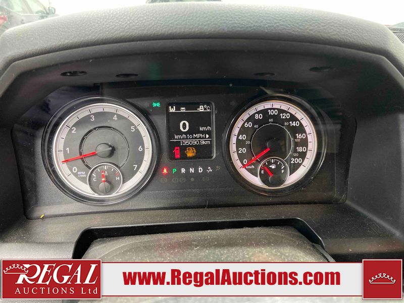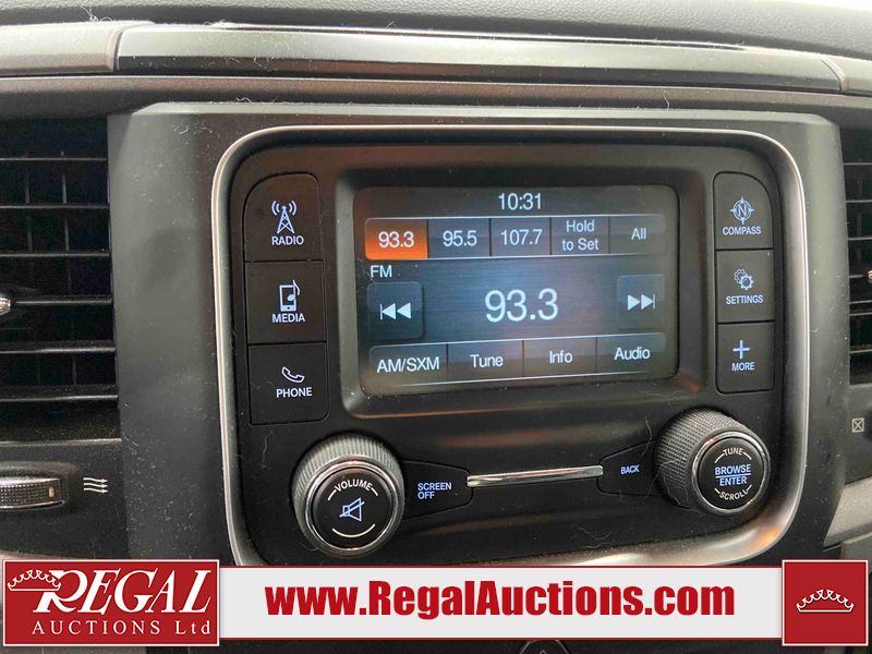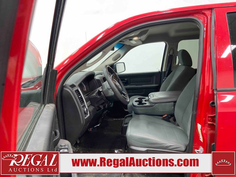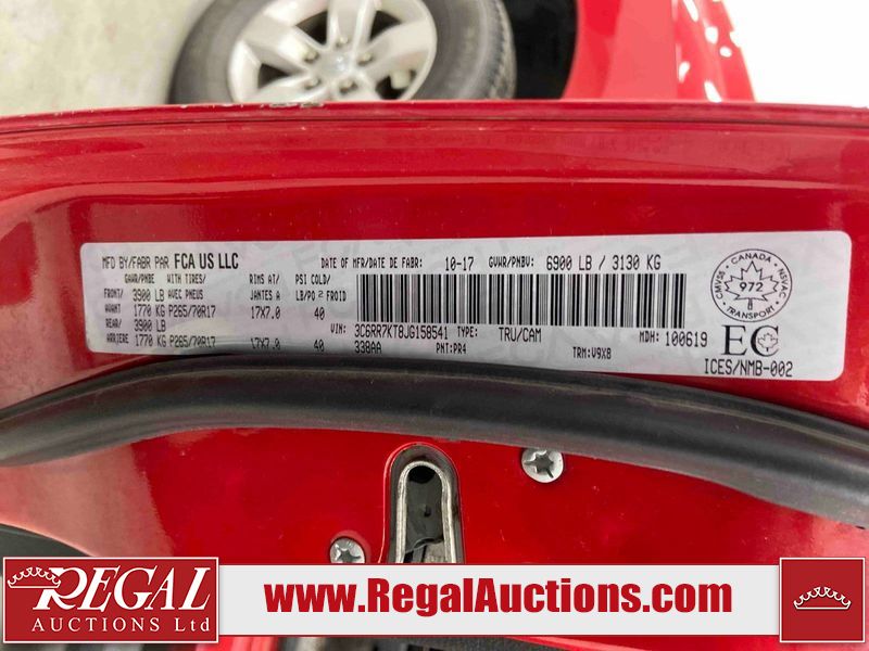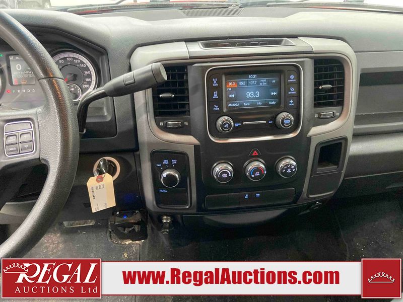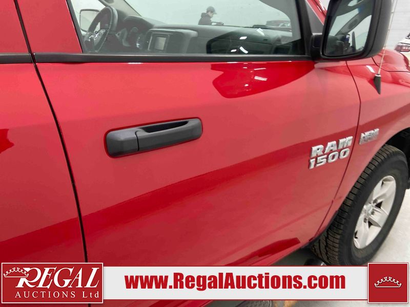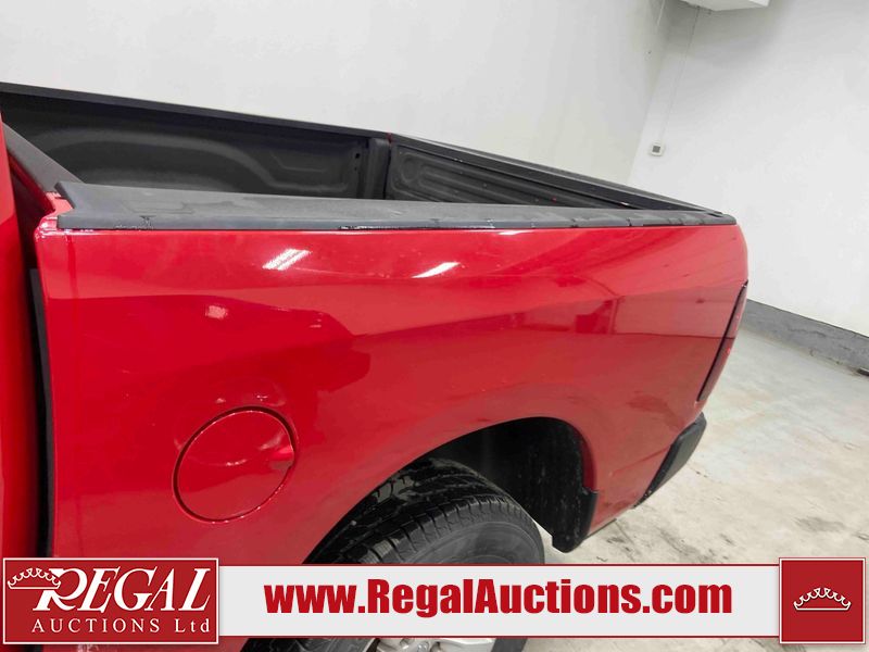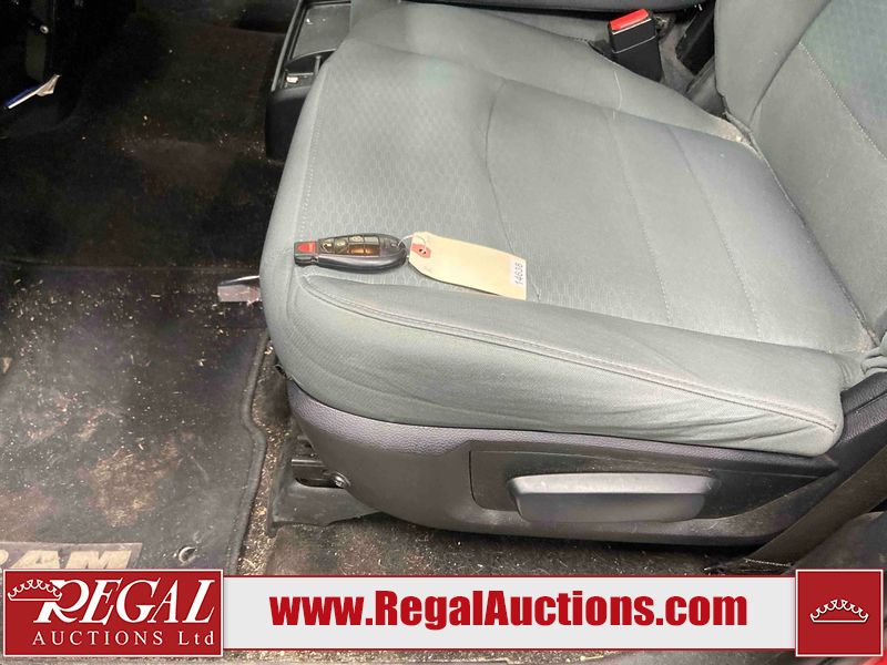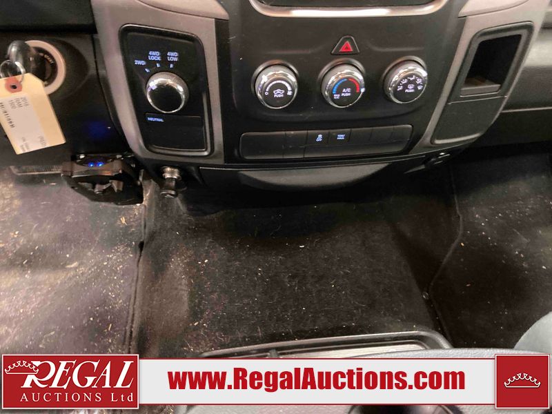 This 2018 RAM 1500 ST CREW CAB SWB 4WD 5.7L is powered by a 8 cylinder gasoline engine and an automatic transmission. It is equipped with four wheel drive. The truck has seats for 6 people. The truck has low mileage for its age. The body looks to be in fair condition overall. There is moderate paint peeling on the rear bumper. There are chips on the front bumper, grille, hood, roof, left front fender, left rear fender, rear bumper, tail gate, right rear fender, and right front fender. There is paint peeling on the grille and hood. There are very minor scratches in many areas around the body. There are very minor chips in some areas around the body. There is very minor dent damage in a few areas around the body. The interior looks to be in good condition overall. The carpet is dirty. The windshield is chipped. All of the tires are nearly bald and should be replaced.