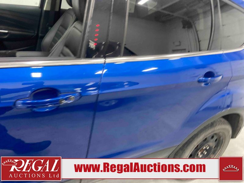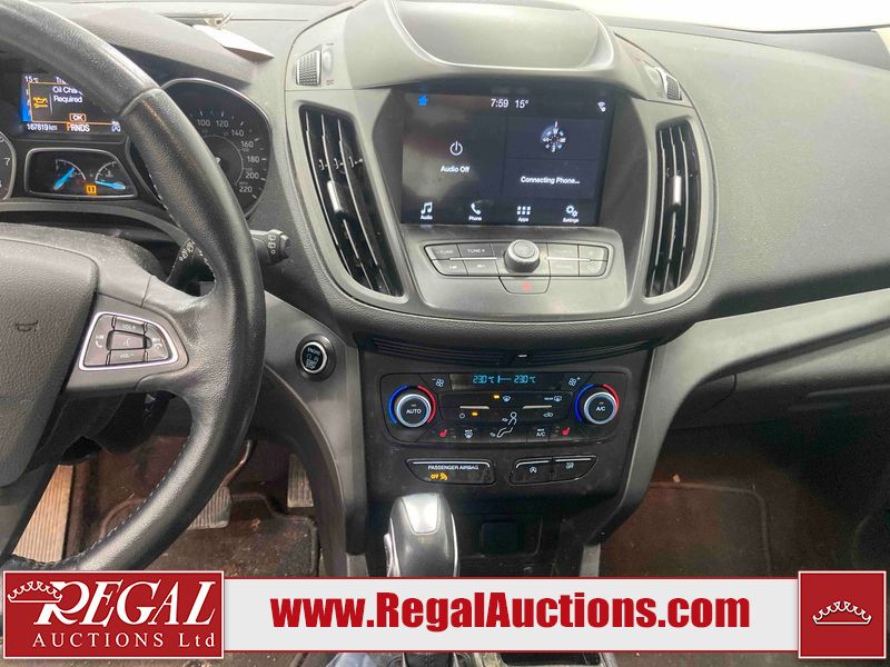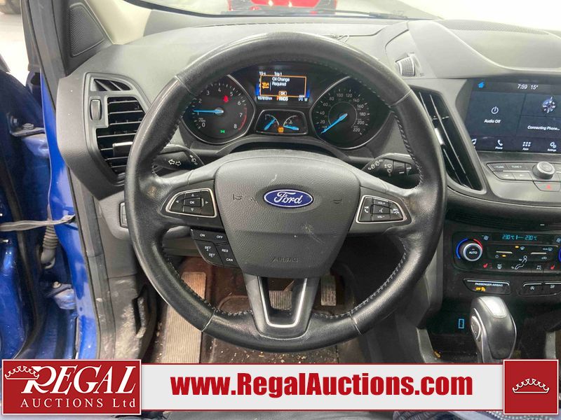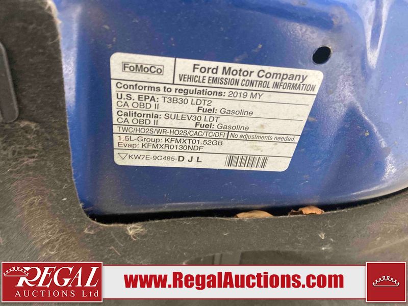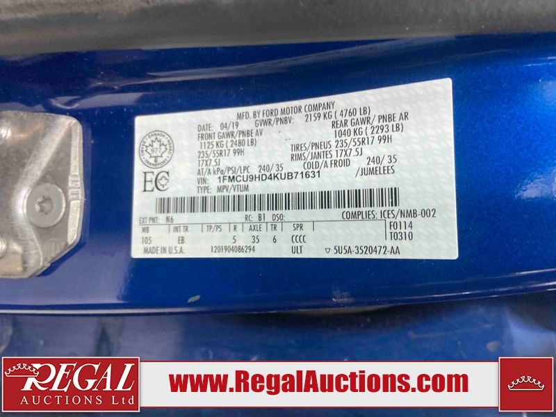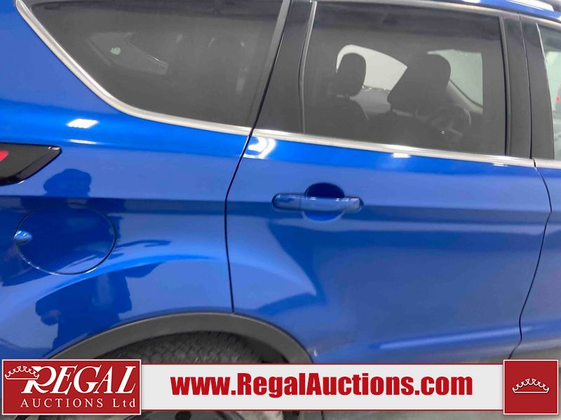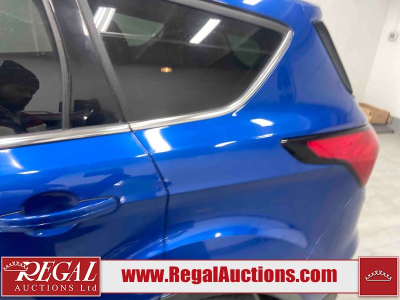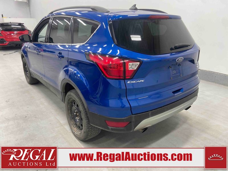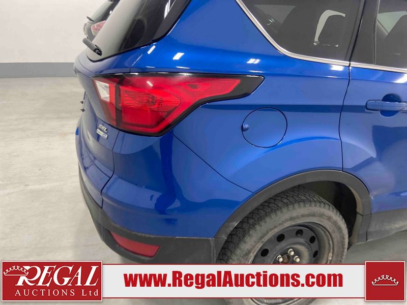 This 2019 FORD ESCAPE SEL 4D UTILITY AWD 1.5L is powered by a turbocharged 4 cylinder gasoline engine and an automatic transmission. It is equipped with four wheel drive. The SUV has seats for 5 people. The mileage is average considering the SUV's age. The vehicle has high value options including leather upholstery, power seats, heated seats, a backup camera, and a power lift gate. The vehicle has some mechanical problems. The engine is making abnormal noise. There is a rattling noise at idle. The body looks to be in fair condition overall. There are chips on the front bumper, grille, hood, roof, left front fender, left front door, left rear door, left rear fender, rear bumper, right rear door, right front door, and right front fender. There are very minor scratches in many areas around the body. There is very minor dent damage on the right rear fender. The interior looks to be in fair condition overall. The rear seats are stained. The windshield is cracked. All of the tires are nearly bald and should be replaced. Steel rims are installed. The factory set is missing.