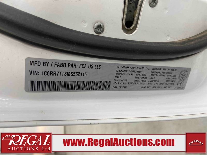 This 2021 RAM 1500 CLASSIC SLT CREW CAB SWB 4WD 5.7L is powered by a 8 cylinder gasoline engine and an automatic transmission. It is equipped with four wheel drive. The truck has seats for 6 people. The truck has high mileage for its age. The vehicle has high value options including power seats and a backup camera. The Check Engine light is on. The vehicle has some mechanical problems. The exhaust is noisy. The body looks to be in good condition overall. There are incidental chips on the left front door and tail gate. There are very minor chips in many areas around the body. There are very minor scratches in many areas around the body. There is very minor dent damage in a few areas around the body. The interior looks to be in fair condition overall. The rear seats are stained. The carpet is dirty. The windshield is chipped. All of the tires are nearly bald and should be replaced.