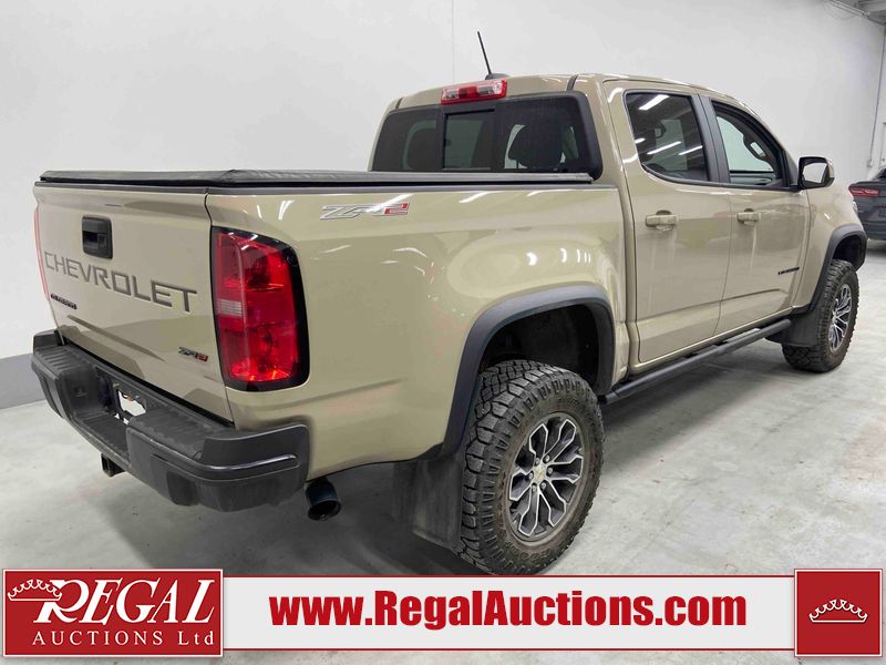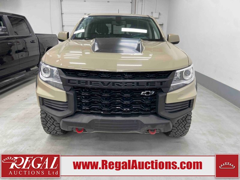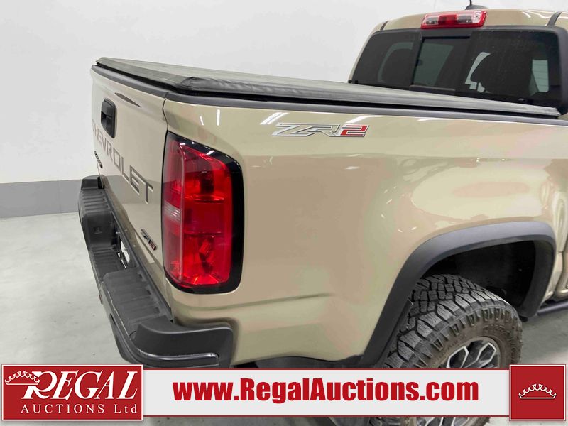 This 2022 CHEVROLET COLORADO ZR2 CREW CAB SWB 4WD 3.6L is powered by a 6 cylinder gasoline engine and an automatic transmission. It is equipped with four wheel drive. The truck has seats for 5 people. The truck has low mileage for its age. The vehicle has high value options including leather upholstery, power seats, heated seats, and a backup camera. The body looks to be in good condition overall. There are very minor chips in many areas around the body. There are very minor scratches in many areas around the body. There is very minor dent damage on the left rear door. The interior looks to be in good condition overall. The carpet is dirty. The windshield is chipped. All of the tires have lots of tread remaining.