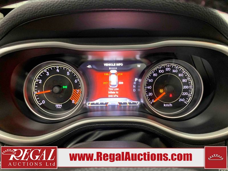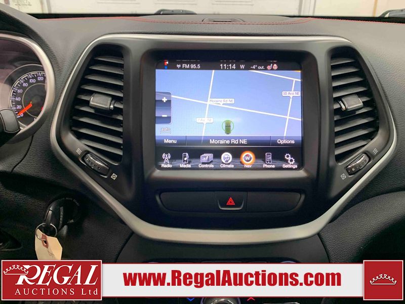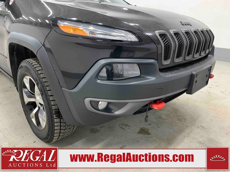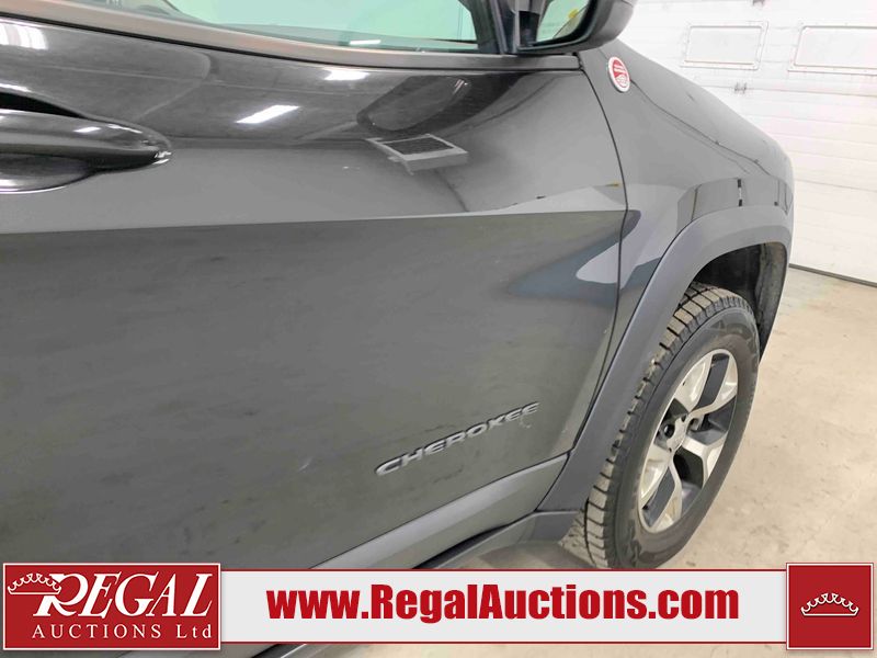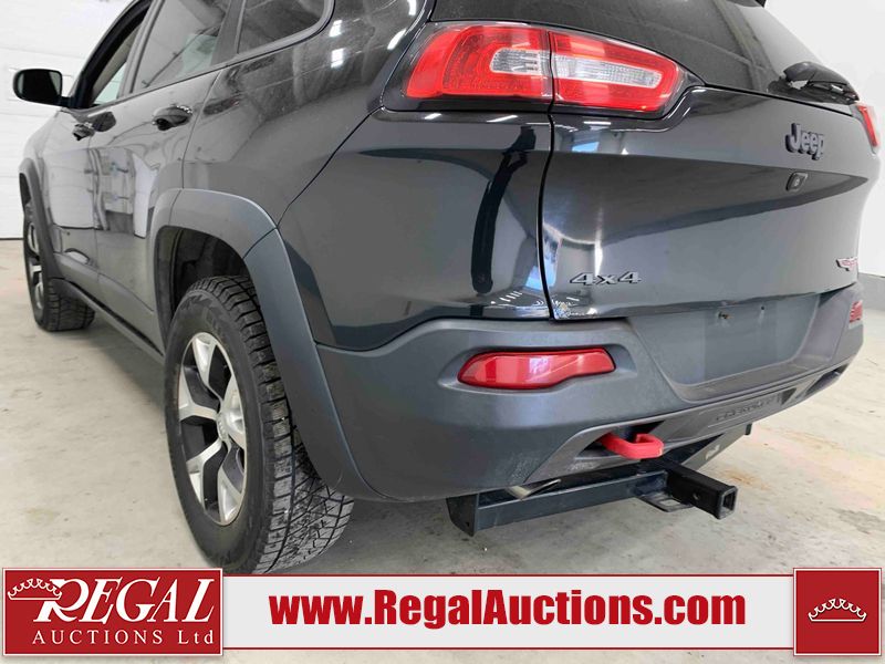 This 2015 JEEP CHEROKEE TRAILHAWK 4D UTILITY is powered by a 3.2L V6 gasoline engine and an automatic transmission. It is equipped with four-wheel drive. The SUV has seats for 5 people. The SUV has high mileage for its age. TRAILHAWK is a very popular trim level. The vehicle has high-value options, including a sunroof, leather upholstery, power seats, heated seats, navigation, and a backup camera. The Tire Pressure light is on. The body looks to be in good condition overall. There is slight rust on the rear door. The rear hatch is misaligned. There are very minor chips in many areas around the body. There are very minor scratches in many areas around the body. The interior looks to be in good condition overall. The windshield looks to be in good condition. All of the tires have lots of tread remaining. This SUV is being sold by a franchise dealership. The vehicle will be sold with the following declarations: Dealership Trade-In (See Footnote 1) and Claims Total $1000 - $2999 (See Footnote 2). Footnotes: 1) This vehicle is being sold on behalf of a franchise dealership. Franchise Dealerships are automotive sales companies who are directly connected to an automotive manufacturer like Ford, Tesla, Honda, BMW, or similar. 2) The vehicle's total recorded insurance claims history is between $1,000 - $2,999. This is the amount of money that was paid out by an insurance company for repairs to cover claims against the vehicle's insurance policy. This information is provided by CarFax. Regal Auctions Ltd. makes no guarantee or warranty, either express or implied, with respect to the data provided in this report. The information has been provided from the consignor and from sources generally believed to be reliable, however the accuracy of this information cannot be guaranteed by Regal Auctions.