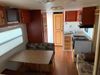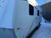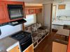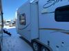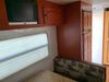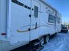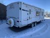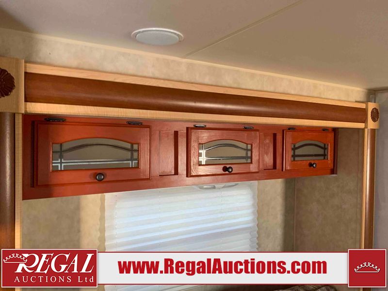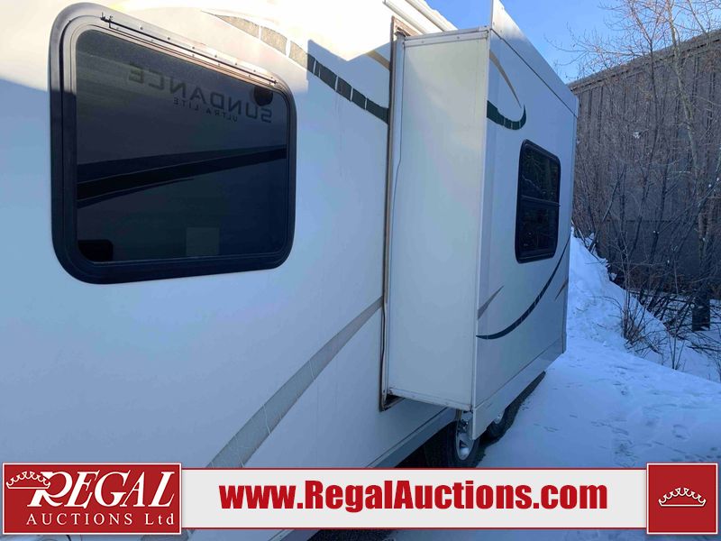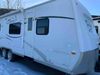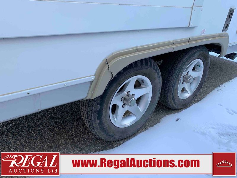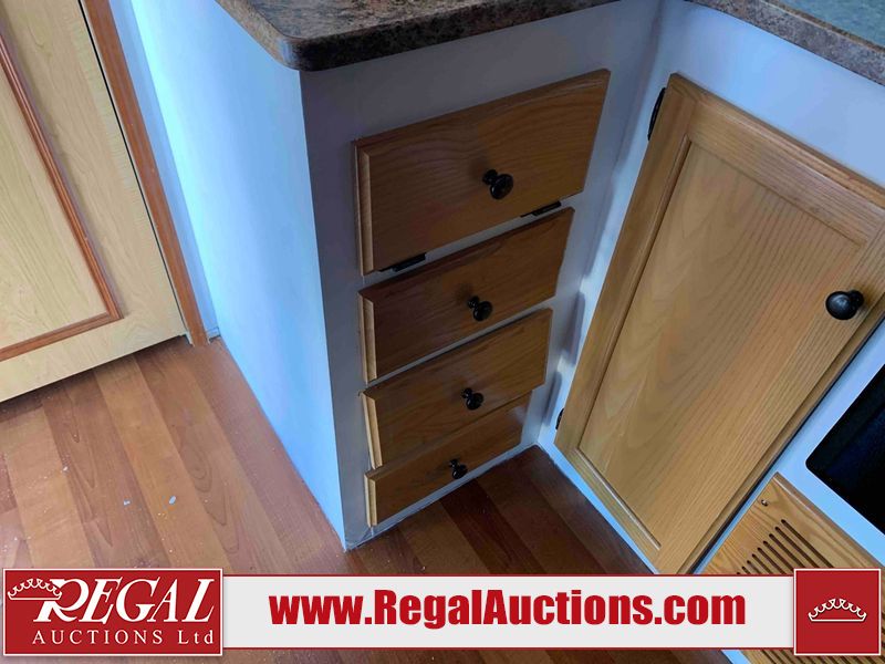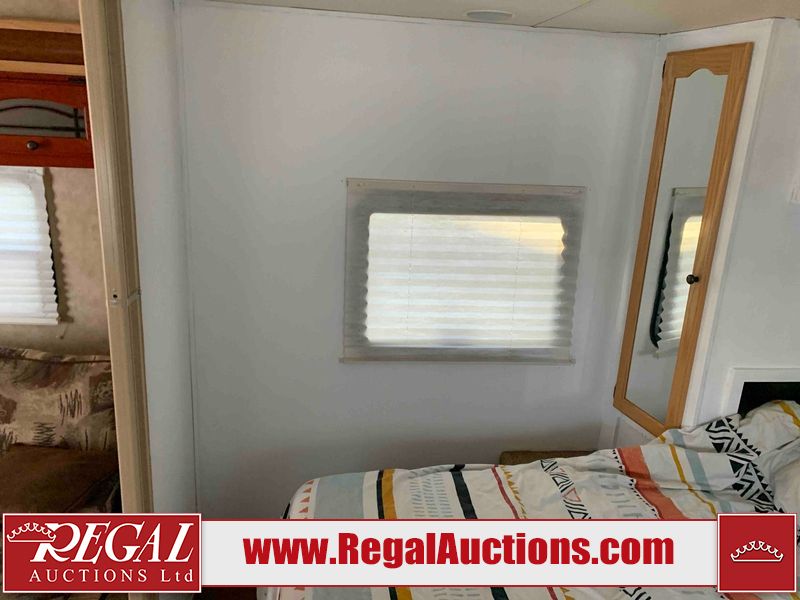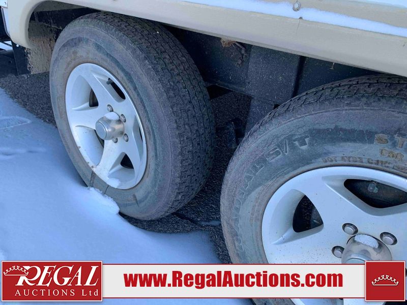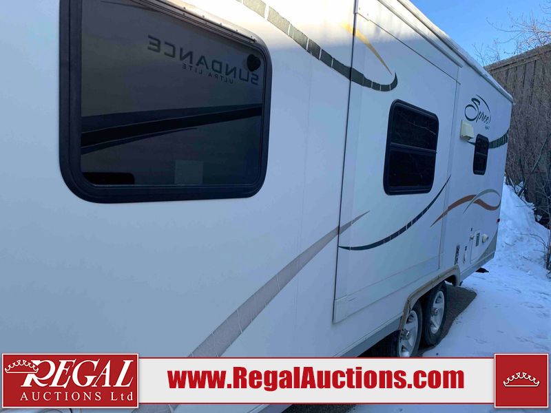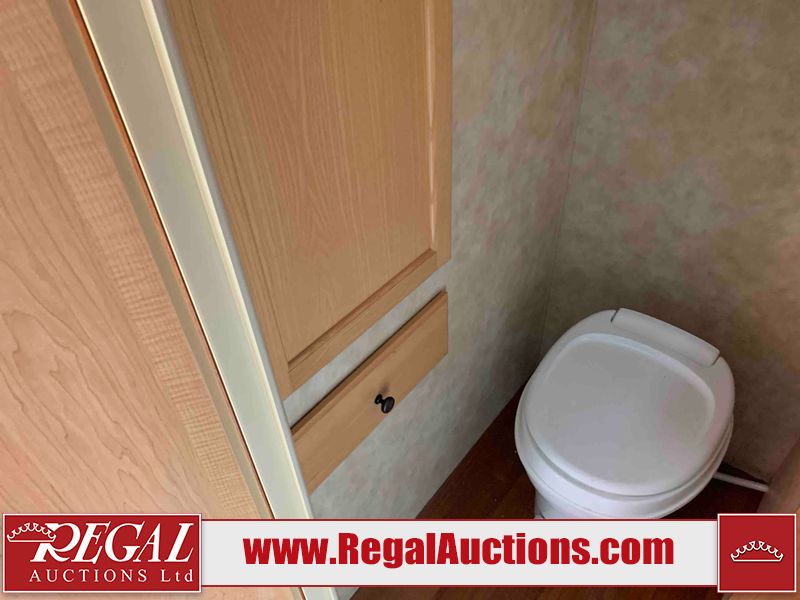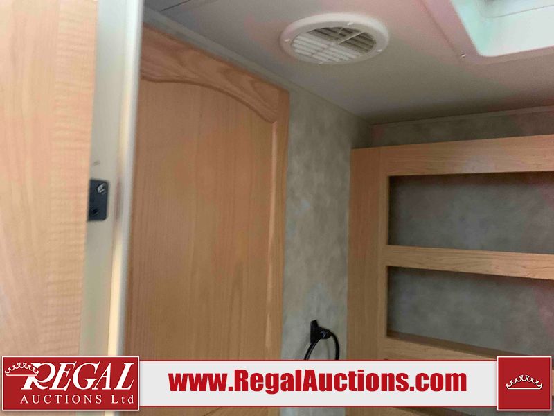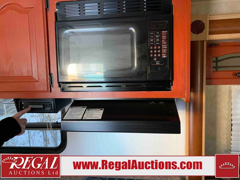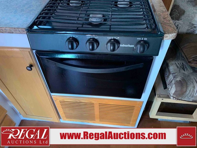 This RV is a 2009 KZ inc Spree 240 RBS model bumper pull travel trailer. This unit has two entry doors, roof air and a single slide out accommodating the living area/kitchen. The interior is dirty. The sink is cracked. The kitchen cabinets are poorly painted. Some of the wood paneling has scratches and scuffs. The slide out couch bed is missing trim. The kitchen drawer is broken. The bedroom roof has water damage. The exterior walls are made of hard wall fiberglass. The front end has moderate chips, scratches and peeling paint. Both plastic fenders are cracked. The rear walls have water delamination. Some of the wall trim is peeling and the decal is cracked. The awning is cracked. The slide is operational. This unit is equipped with one battery and two propane tanks. The tires are mounted on alloy rims. The side walls are cracked and will need to be replaced. The layout of this unit consists of a master bedroom at the front kitchen, living area at the centre and a washroom at the rear. This unit is equipped with a three burner stove top, oven microwave, a flat screen television for and a refrigerator .