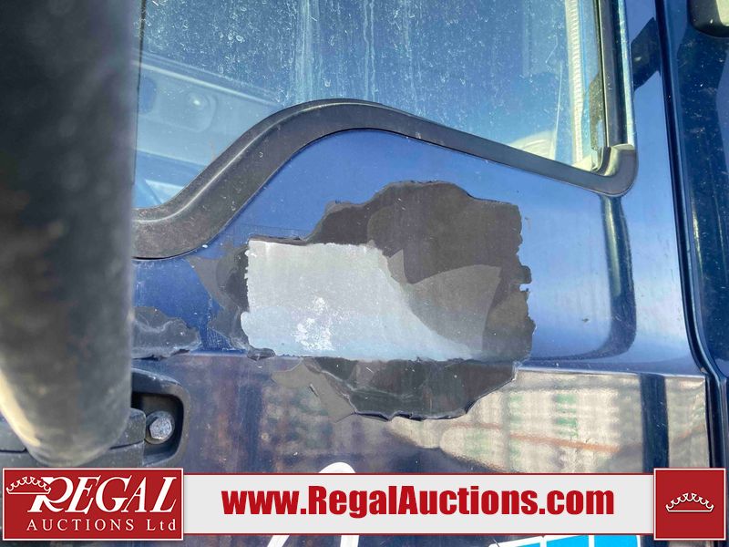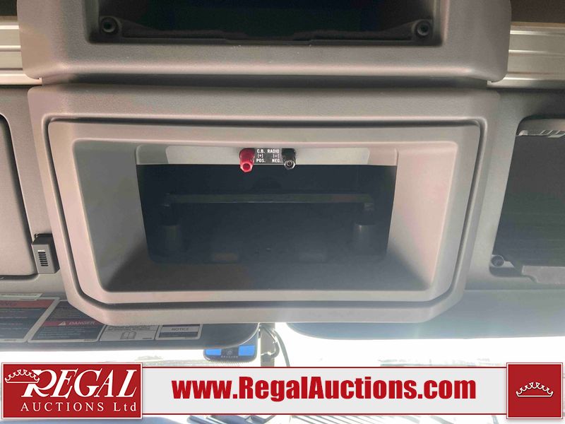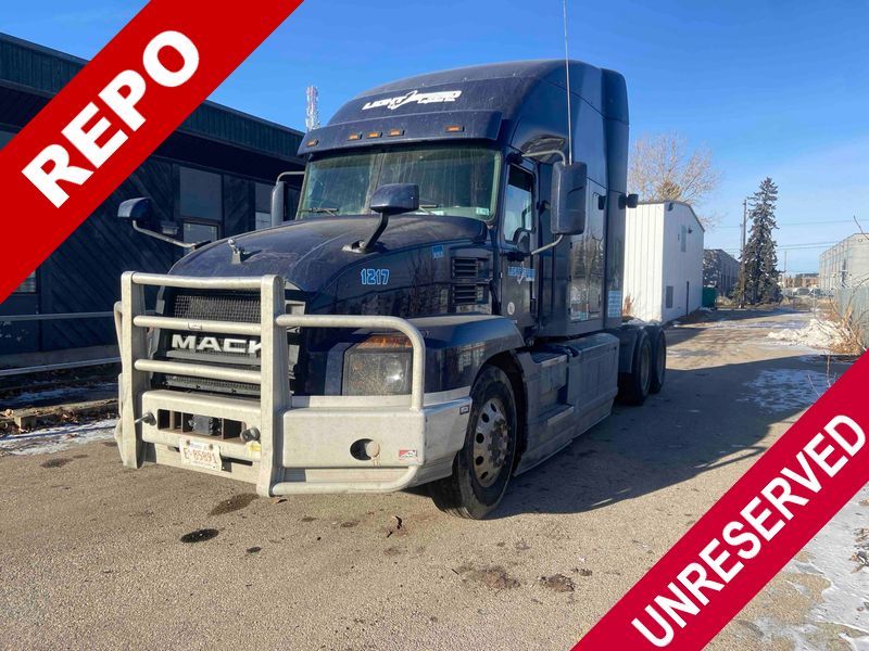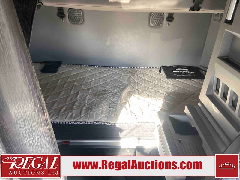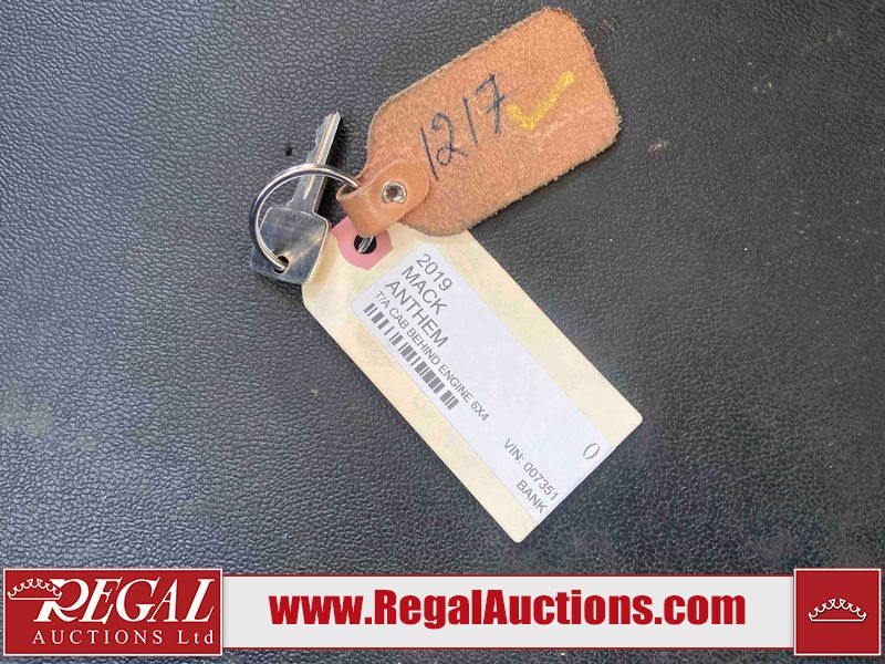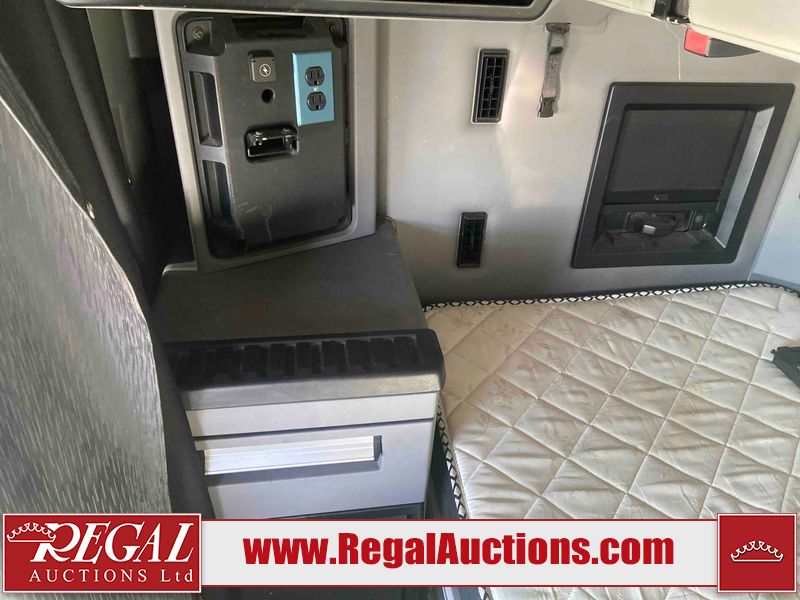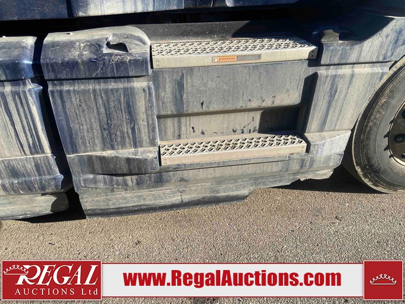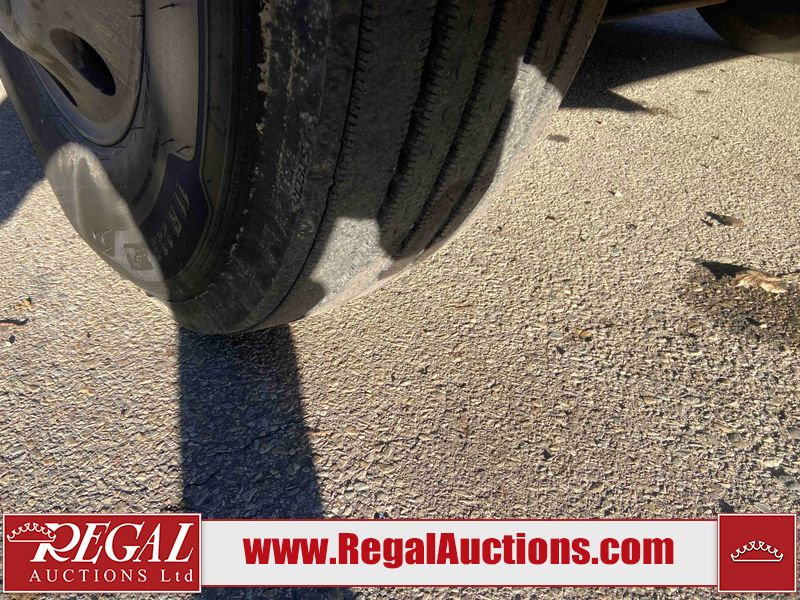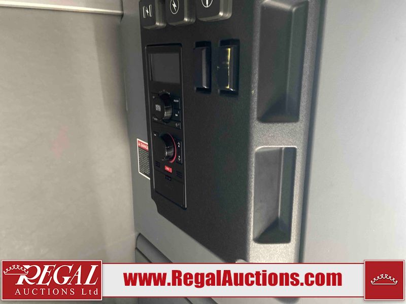This unit is a 2019 Mack Anthem AN614 tandem axle sleeper highway tractor. The odometer shows 1,222,011 kilometers and 24,079 engine hours. It’s GVWR is 23,600 KG. It has a CIP of 01/2026. The interior is dirty. The steering wheel is damaged. Both seats are worn, with the armrest, torn and been poorly resealed. The lower mattress is worn, and the upper mattress sustained. This unit is equipped with a stereo system, rear climate controls, and a refrigerator. All panels are showing chips, scratches, and scuffs. The crash bar is gouge. The windshield is cracked. The driver‘s door has peeling paint. Both cab sides have peeling paint. The right rear mudflap bracket is misaligned. This unit starts and runs without a boost. The check engine light is on. Miscommunication from ECU code, and Check engine fault codes. There is an audible air leak near the rear axles. This unit is powered by a MP8-445E 12.8L six cylinder turbo, diesel engine and an automatic transmission. The tires are mounted to alloy rims and appeared to be in good enough condition for use. This unit is equipped with air brakes, air, suspension, sliding fifth wheel, rear differential lock, and rear sliding axles. It has a 5400 kg front axle and a 9100 kg rear axis.