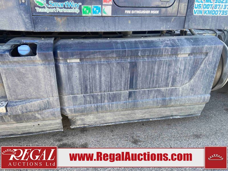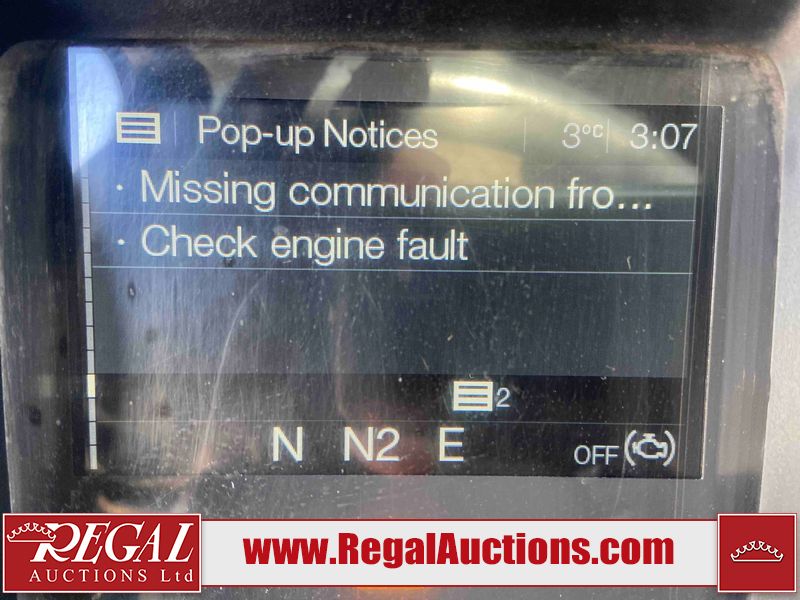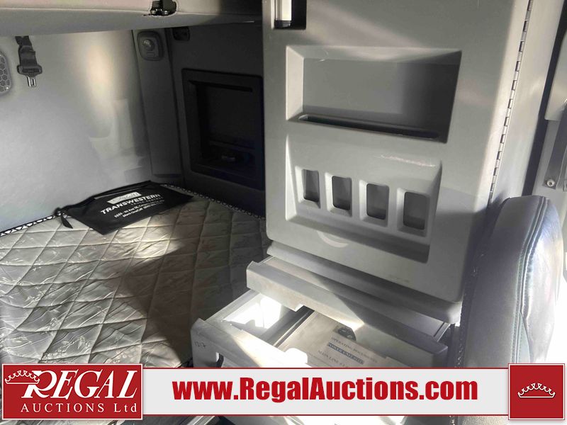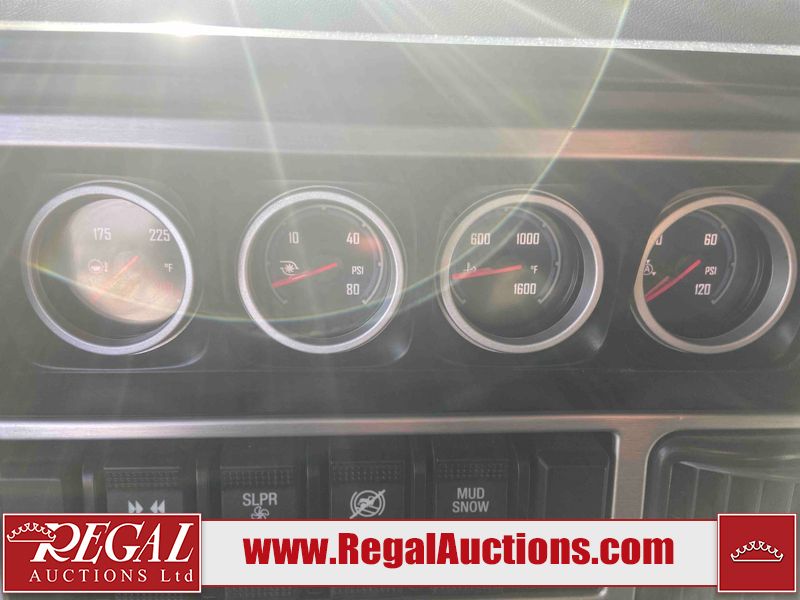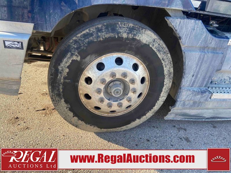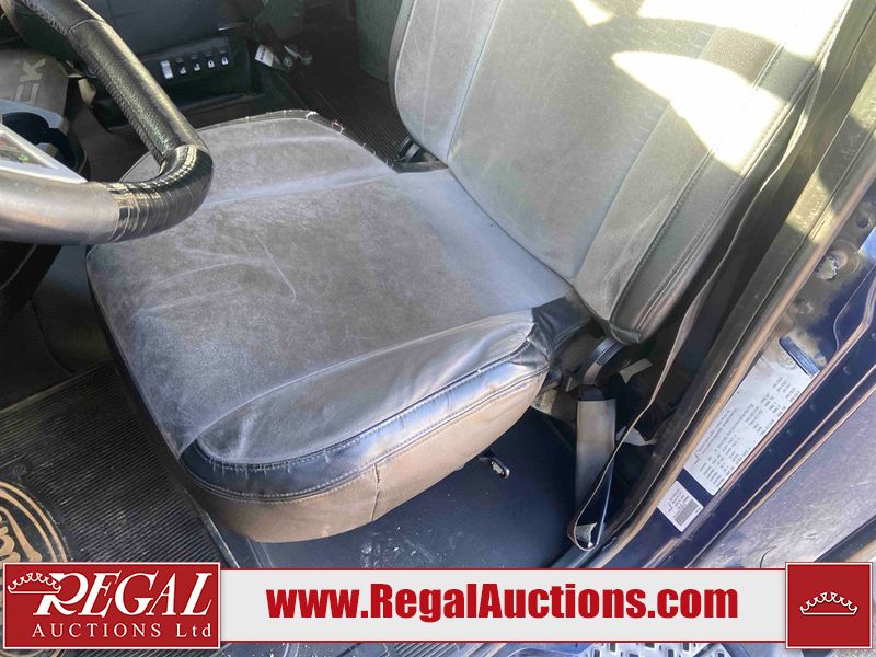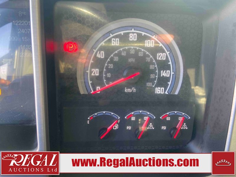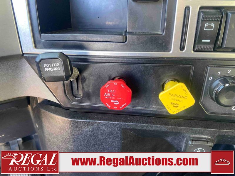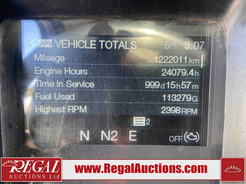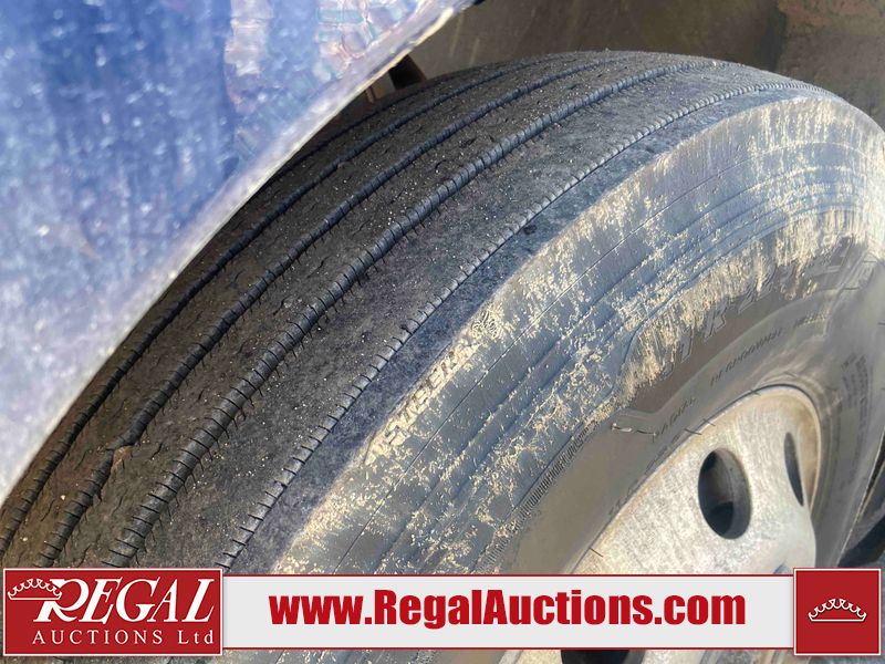 This unit is a 2019 Mack Anthem AN614 tandem axle sleeper highway tractor. The odometer shows 1,222,011 kilometers and 24,079 engine hours. It’s GVWR is 23,600 KG. It has a CIP of 01/2026. The interior is dirty. The steering wheel is damaged. Both seats are worn, with the armrest, torn and been poorly resealed. The lower mattress is worn, and the upper mattress sustained. This unit is equipped with a stereo system, rear climate controls, and a refrigerator. All panels are showing chips, scratches, and scuffs. The crash bar is gouge. The windshield is cracked. The driver‘s door has peeling paint. Both cab sides have peeling paint. The right rear mudflap bracket is misaligned. This unit starts and runs without a boost. The check engine light is on. Miscommunication from ECU code, and Check engine fault codes. There is an audible air leak near the rear axles. This unit is powered by a MP8-445E 12.8L six cylinder turbo, diesel engine and an automatic transmission. The tires are mounted to alloy rims and appeared to be in good enough condition for use. This unit is equipped with air brakes, air, suspension, sliding fifth wheel, rear differential lock, and rear sliding axles. It has a 5400 kg front axle and a 9100 kg rear axis.