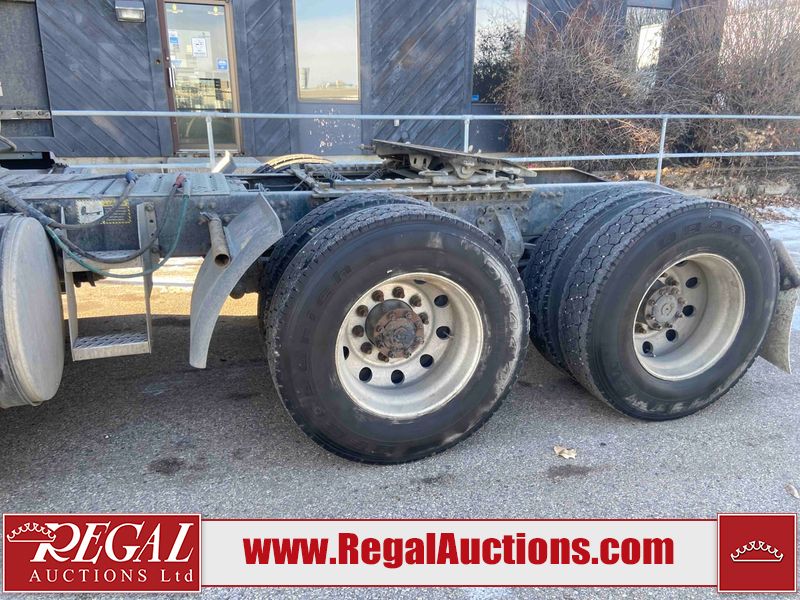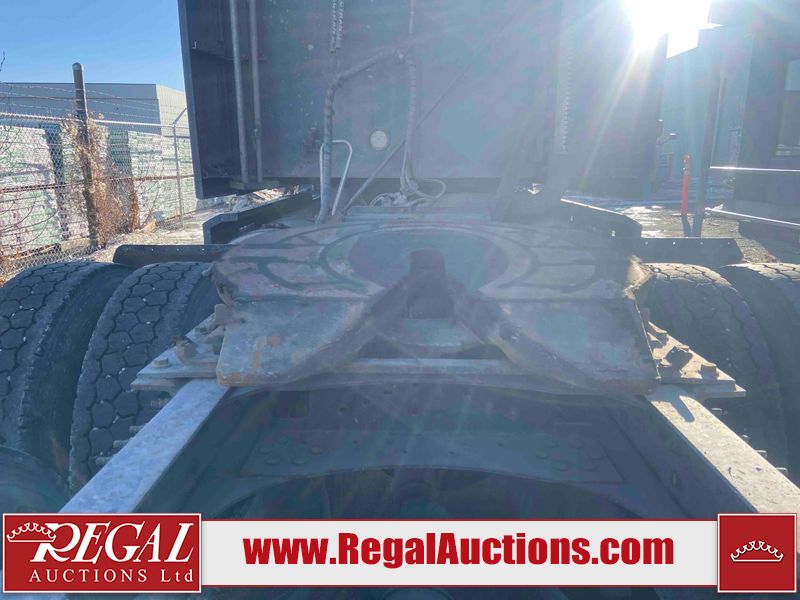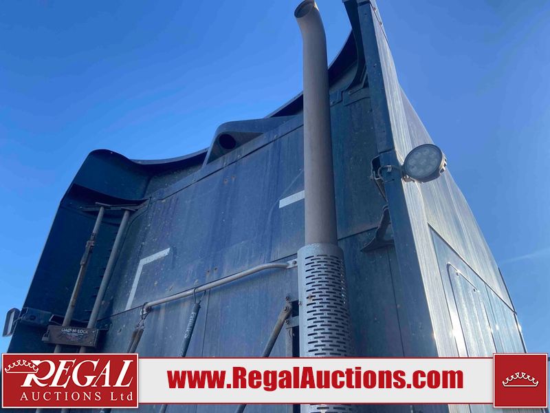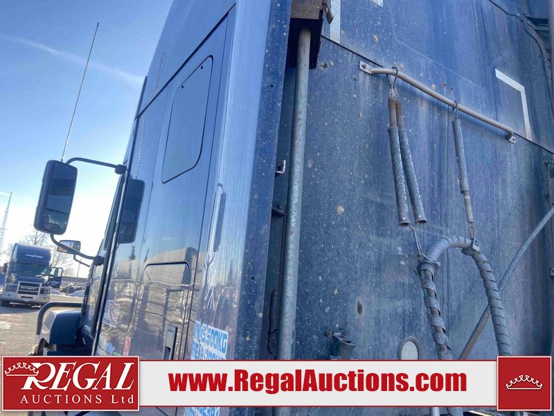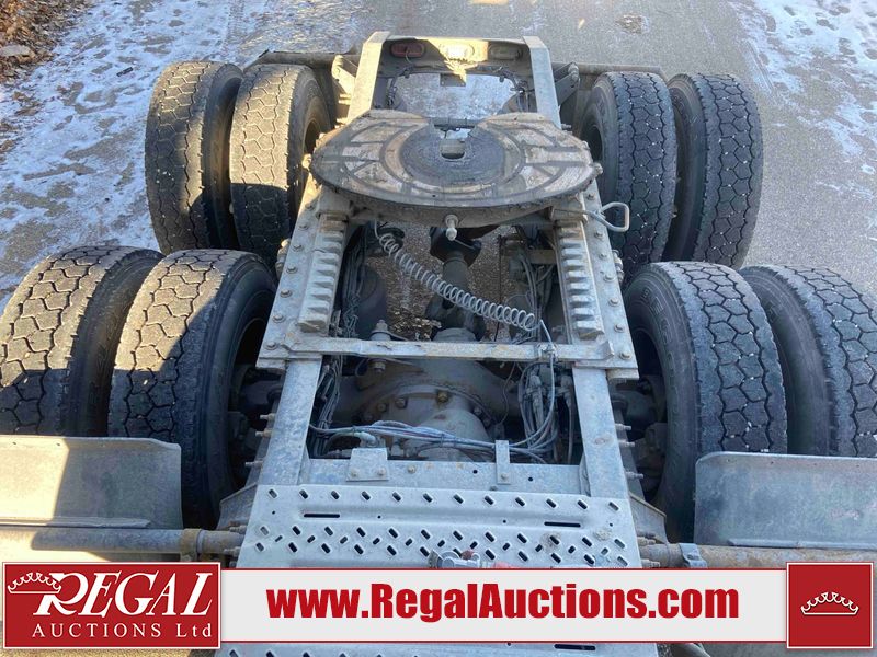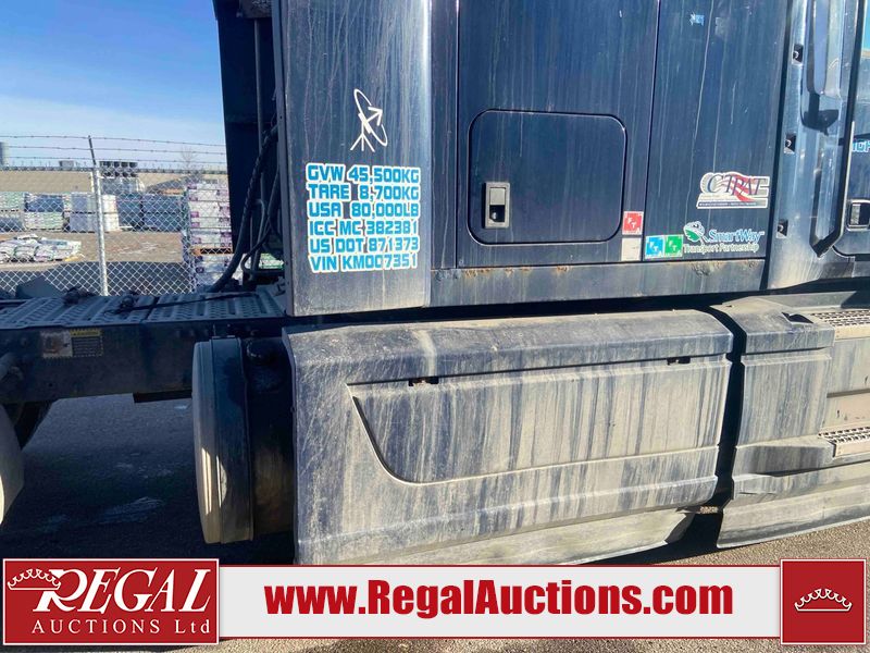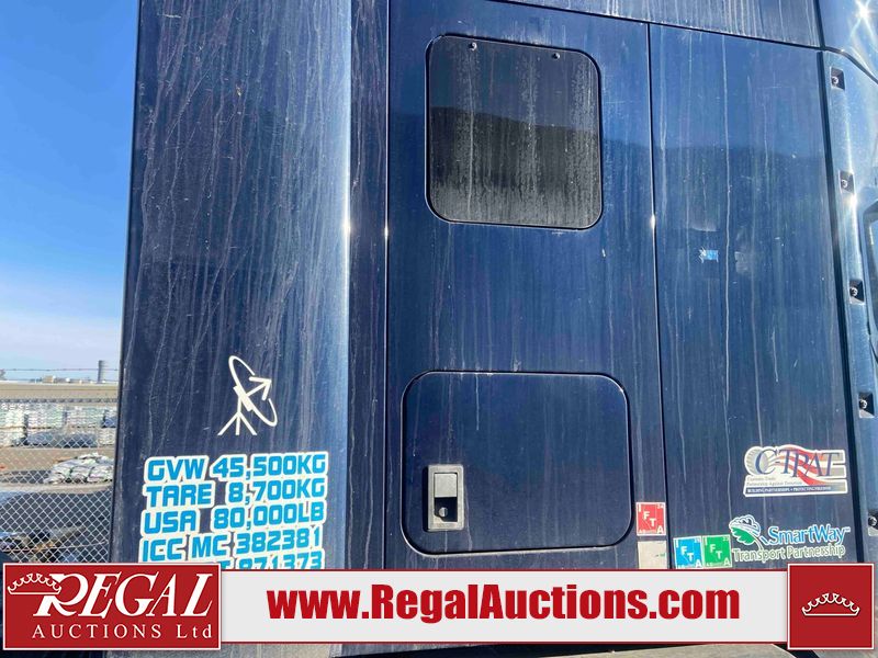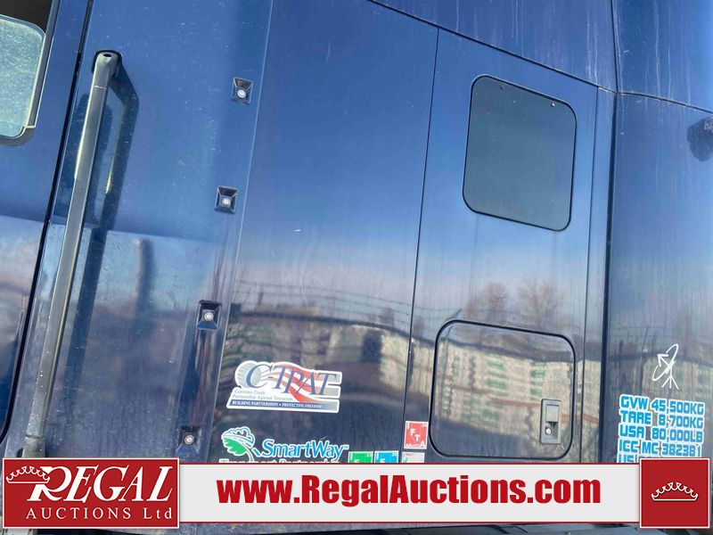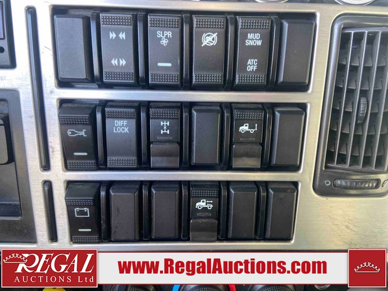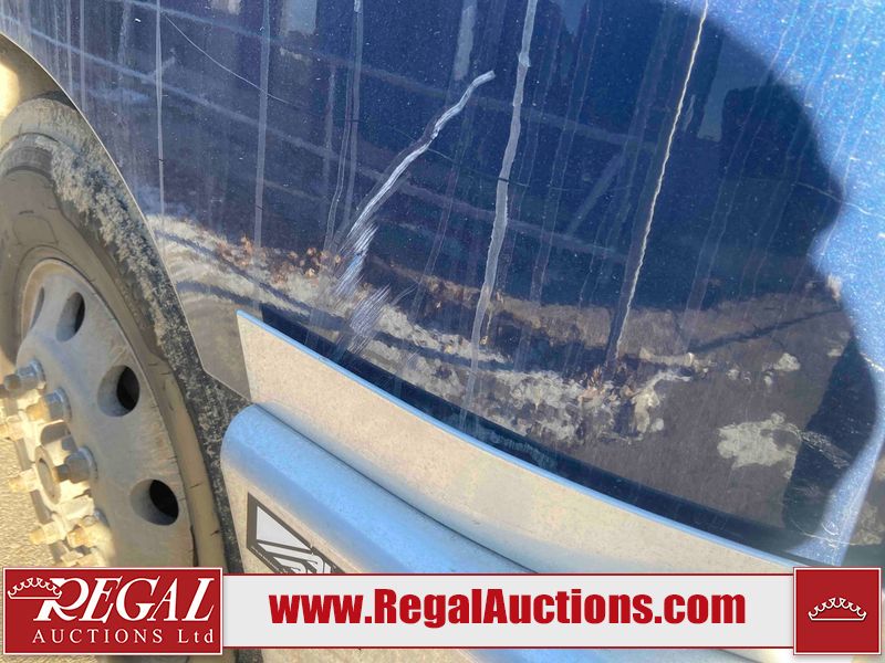 This unit is a 2019 Mack Anthem AN614 tandem axle sleeper highway tractor. The odometer shows 1,222,011 kilometers and 24,079 engine hours. It’s GVWR is 23,600 KG. It has a CIP of 01/2026. The interior is dirty. The steering wheel is damaged. Both seats are worn, with the armrest, torn and been poorly resealed. The lower mattress is worn, and the upper mattress sustained. This unit is equipped with a stereo system, rear climate controls, and a refrigerator. All panels are showing chips, scratches, and scuffs. The crash bar is gouge. The windshield is cracked. The driver‘s door has peeling paint. Both cab sides have peeling paint. The right rear mudflap bracket is misaligned. This unit starts and runs without a boost. The check engine light is on. Miscommunication from ECU code, and Check engine fault codes. There is an audible air leak near the rear axles. This unit is powered by a MP8-445E 12.8L six cylinder turbo, diesel engine and an automatic transmission. The tires are mounted to alloy rims and appeared to be in good enough condition for use. This unit is equipped with air brakes, air, suspension, sliding fifth wheel, rear differential lock, and rear sliding axles. It has a 5400 kg front axle and a 9100 kg rear axis.