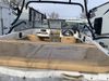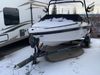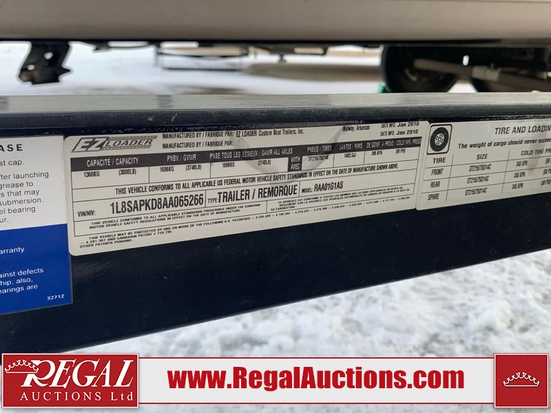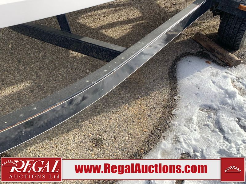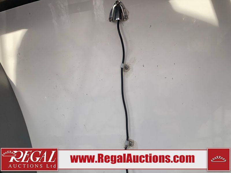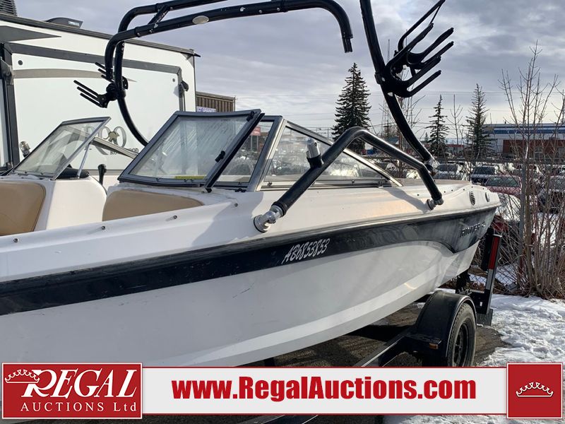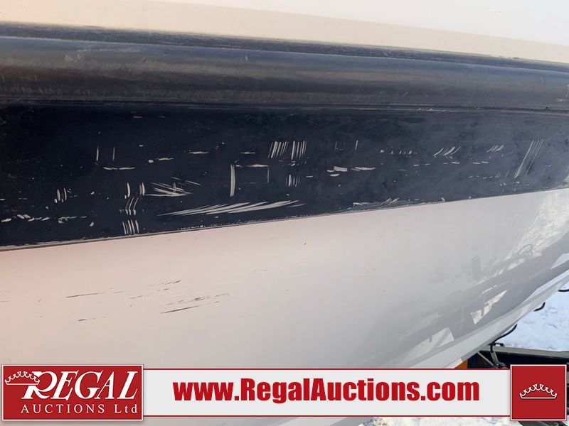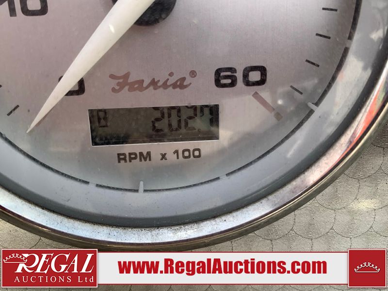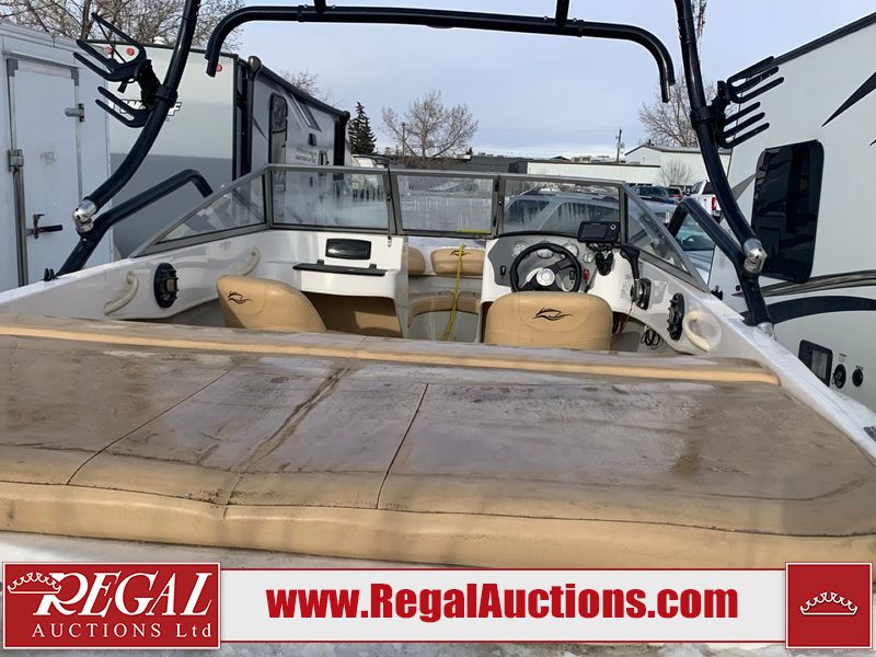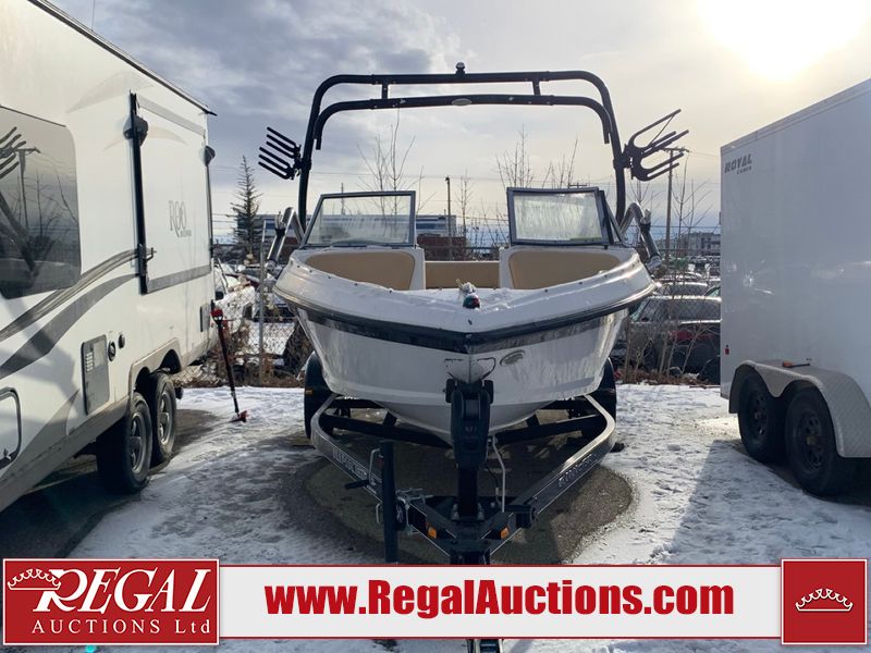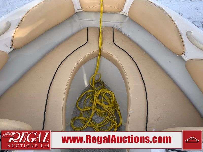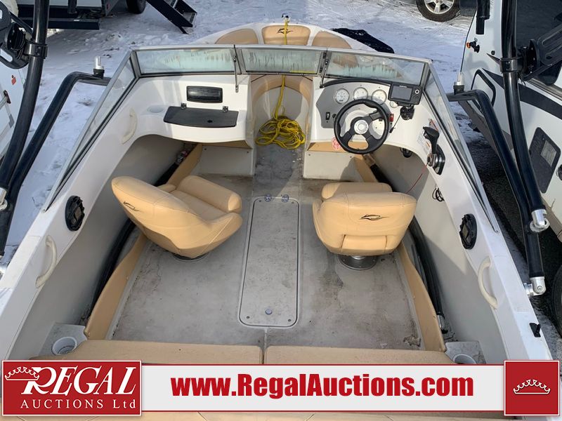 This watercraft is a 18 foot 2010 Rinker 186 bow rider model with a fibreglass v type hull. The hour metre reads 202 hours. This unit has a maximum capacity of 8 occupants or 1323lbs. The interior is dirty. The leather has stains. There are minor scuffs to the inside of the cap. The sides and bottom of the hull have deep scrapes. The hummingbird sensor has broken off of the transom. The trailer has surface rust. Steel rims are mounted, the tires have plenty of tread remaining. The engine block may be cracked. The unit is powered by a 4.3 Litre six cylinder Volvo GL engine and a stern drive. The propeller and Skegg are both damaged and may require repair. The drain plug is missing. The unit is equipped with a stereo system, hummingbird helix 5 model and a wake tower. This unit is also equipped with a canvas two piece cover.