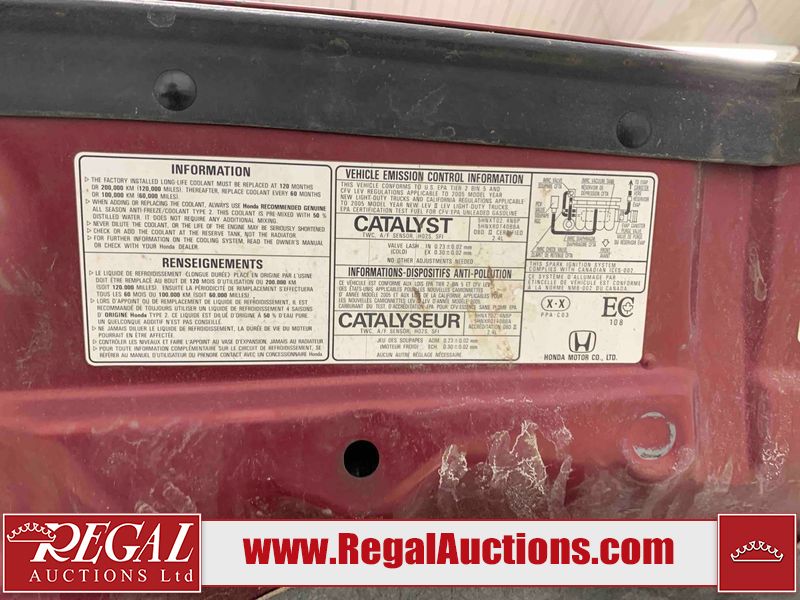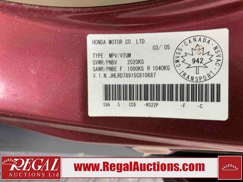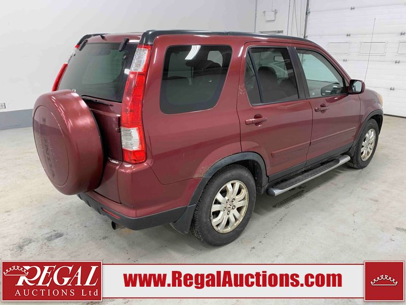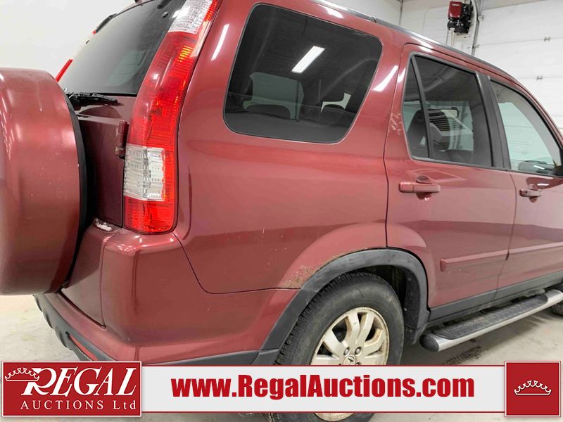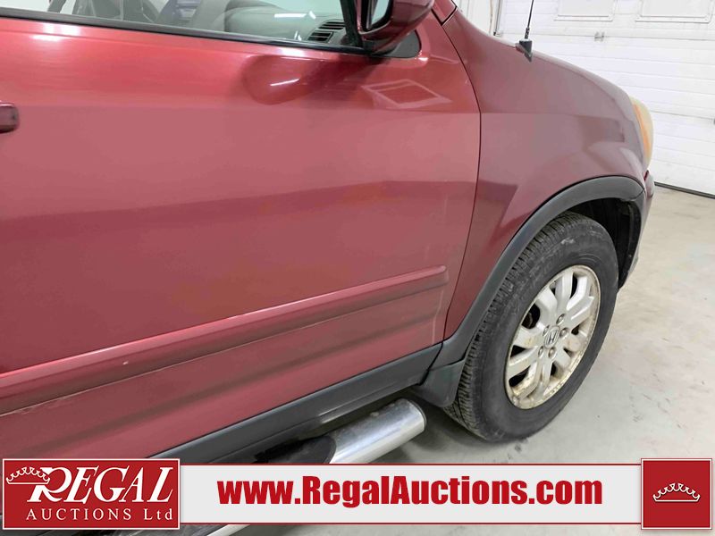 This 2005 HONDA CR-V 4D UTILITY AWD is powered by a 2.4L 4-cylinder gasoline engine and an automatic transmission. It is equipped with all-wheel drive. The SUV has seats for 5 people. The SUV has high mileage for its age. The vehicle has high-value options, including a sunroof and leather upholstery. The Maintenance light is on. The vehicle has some mechanical problems. **CHECK ENGINE LIGHT COMES ON OCCASIONALLY, VEHICLE GOES INTO LIMPMODE** (See Footnote 1) The body looks to be in rough condition overall. There is a fair amount of rust on the right rear fender. There are incidental chips on the front bumper, hood, roof, left front fender, left front door, left rear door, left rear fender, rear bumper, rear door, right rear fender, right rear door, right front door, and right front fender. There are scratches on the front bumper, hood, roof, left front fender, left front door, left rear door, left rear fender, rear bumper, rear door, right rear fender, right rear door, right front door, and right front fender. There is minor rust on the roof, left rear fender, and right rear door. There is incidental dent damage on the left front door. There are very minor chips on the grille. The interior looks to be in good condition overall. The driver seat is worn. The driver side mirror housing is broken. The windshield is chipped. The passenger side mirror is broken. The front tires are both worn. The rear tires both have lots of tread remaining. This SUV is being sold by a private individual. The vehicle will be sold with the following declarations: Mechanical Problems (See Footnote 1). Footnotes: 1) We've identified some mechanical problems with the vehicle. However, the vehicle has not undergone a mechanical inspection and our findings are not to be considered a complete evaluation of the vehicle's mechanical condition. Review our Buyer Protection Policy to see how Regal Auctions protects you from undisclosed mechanical problems. Regal Auctions Ltd. makes no guarantee or warranty, either express or implied, with respect to the data provided in this report. The information has been provided from the consignor and from sources generally believed to be reliable, however the accuracy of this information cannot be guaranteed by Regal Auctions.
