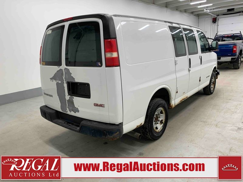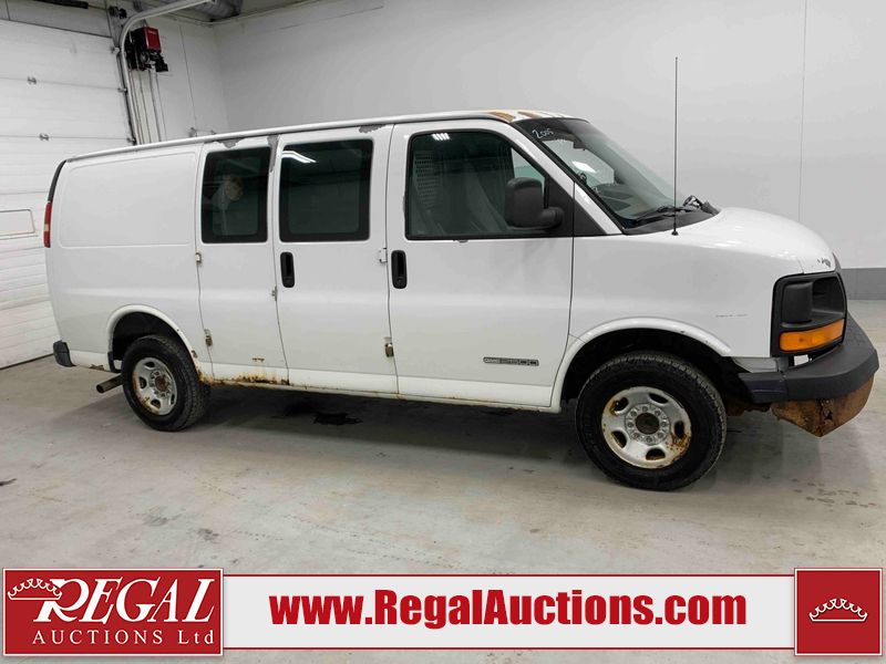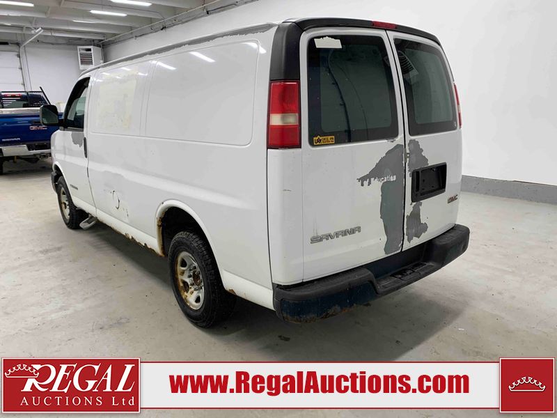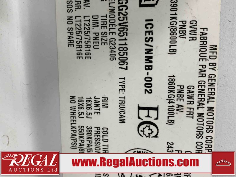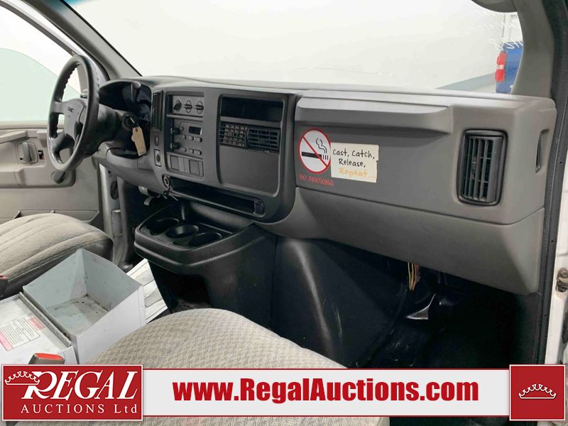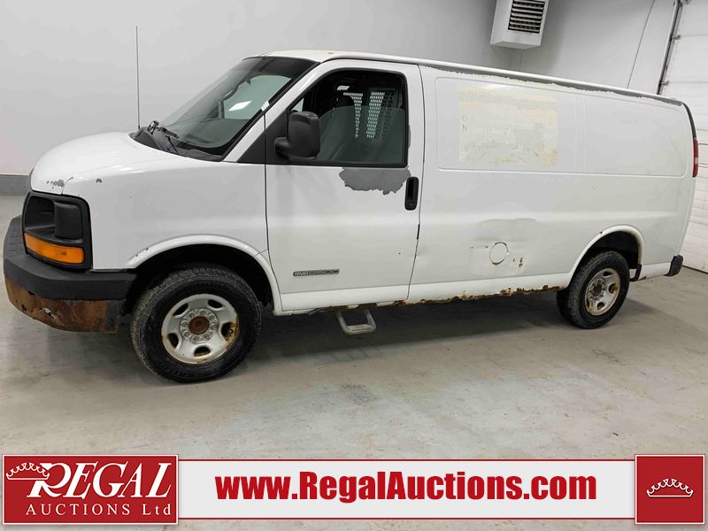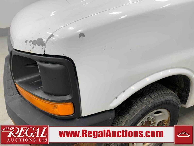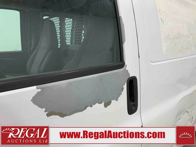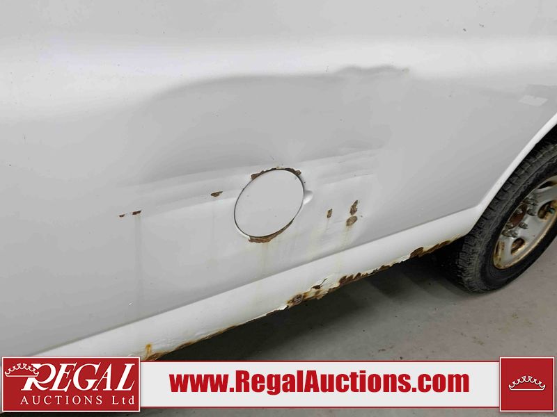 This 2005 GMC SAVANA G2500 CARGO VAN RWD 4.8L is powered by a 4.8L 8C 8 cylinder gasoline engine and an automatic transmission. The van has seats for 2 people. The van has low mileage for its age. The vehicle does not have power windows, power locks, or air conditioning. The body looks to be in rough condition overall. There is extensive rust on the front bumper, left rear fender, rear bumper, right rear fender, and right rear door. There is severe hail on the roof. There is considerable paint peeling on the rear door. The fascia is broken on the front bumper. There is moderate hail on the hood. There is moderate rust on the roof and right front door. There is noteworthy paint peeling on the left front door. There are minor chips on the hood, left front fender, and right front fender. There is minor paint peeling on the hood, left front fender, and right front door. There is incidental dent damage on the left front door. There are slight scratches on the right rear fender, right rear door, and right front fender. There is incidental rust on the right front fender. There are very minor scratches in a few areas around the body. The interior looks to be in fair condition overall. The driver's seat is torn. The passenger seat is stained. The windshield is cracked. All of the tires have lots of tread remaining. This van is being sold by the fleet department of a corporation or government body. The vehicle will be sold with the following declarations: Fleet Vehicle (See Footnote 1). Footnotes: 1) This vehicle is a commercially owned work vehicle. Regal Auctions Ltd. makes no guarantee or warranty, either express or implied, with respect to the data provided in this report. The information has been provided from the consignor and from sources generally believed to be reliable, however the accuracy of this information cannot be guaranteed by Regal Auctions.