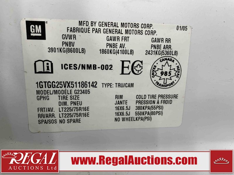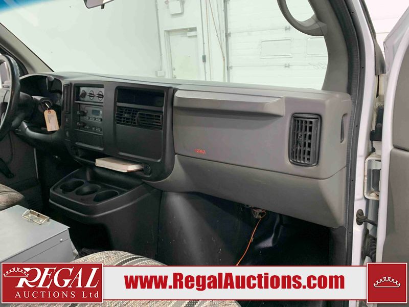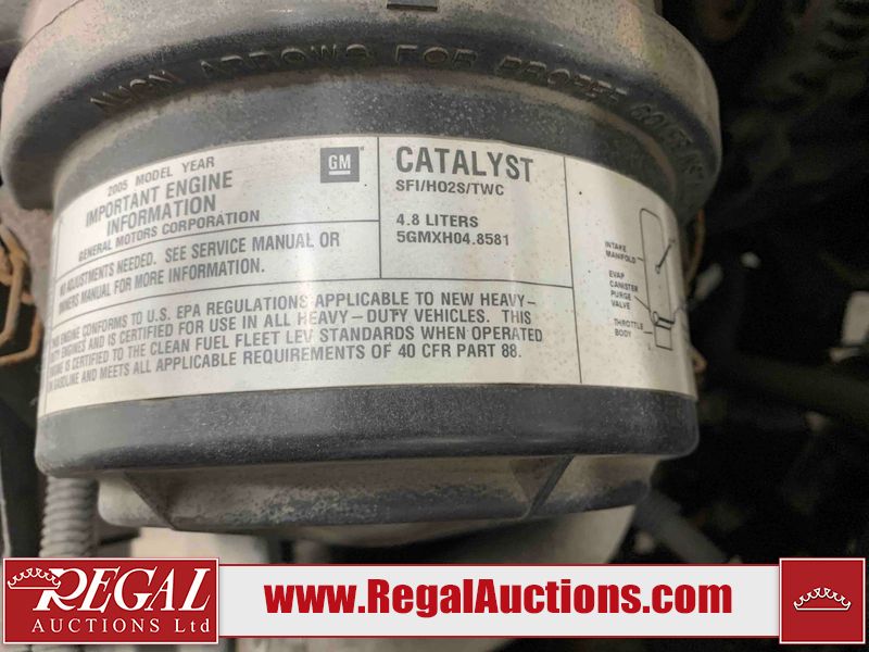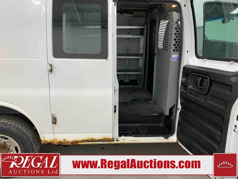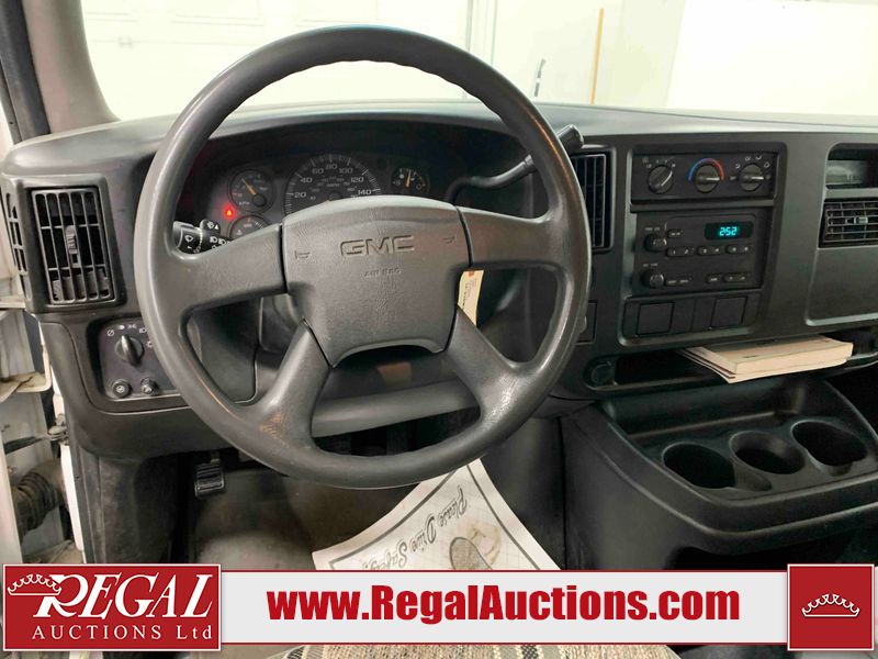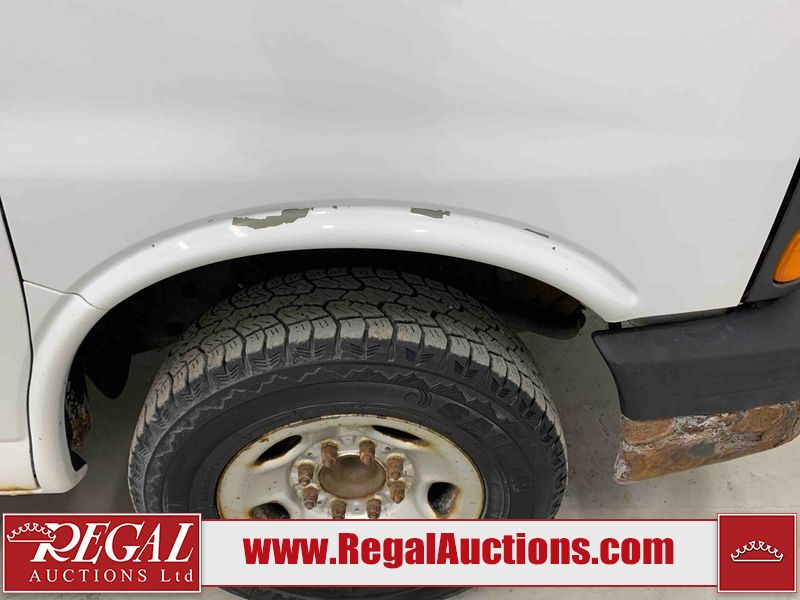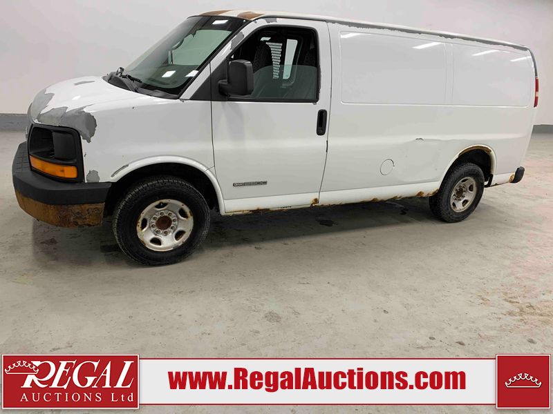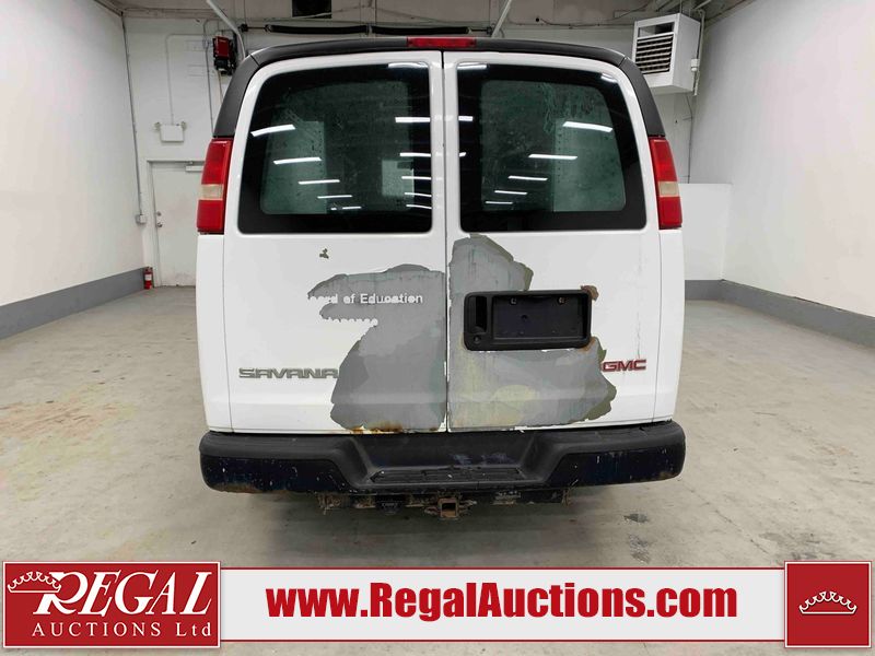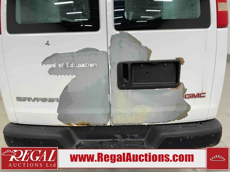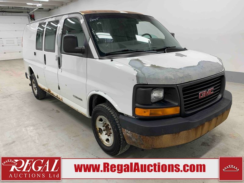 This 2005 GMC SAVANA G2500 CARGO VAN RWD is powered by a 4.8L V8 gasoline engine and an automatic transmission. The van has seats for 2 people. The mileage is average considering the van's age. The vehicle does not have power windows, power locks, or air conditioning. The Check Engine light is on. The body looks to be in rough condition overall. There is very bad paint peeling on the hood and rear door. There is severe rust on the left rear fender, right rear fender, and right rear door. There is severe dent damage on the left rear fender. There is a fair amount of rust on the front bumper, roof, left front door, rear bumper, rear door, and right front door. There is moderate paint peeling on the left front fender, right front door, and right front fender. There is incidental rust on the hood. There are chips on the left front fender. There is slight paint peeling on the left front door and right rear door. There are incidental scratches on the left rear fender, rear bumper, and right rear door. There are very minor scratches on the left front door. There are very minor chips on the left front door. The left side of the passenger cargo doors does not open. The interior looks to be in good condition overall. The windshield is chipped. All of the tires have lots of tread remaining. This van is being sold by the fleet department of a corporation or government body. The vehicle will be sold with the following declarations: Fleet Vehicle (See Footnote 1). Footnotes: 1) This vehicle is a commercially owned work vehicle. Regal Auctions Ltd. makes no guarantee or warranty, either express or implied, with respect to the data provided in this report. The information has been provided from the consignor and from sources generally believed to be reliable, however the accuracy of this information cannot be guaranteed by Regal Auctions.