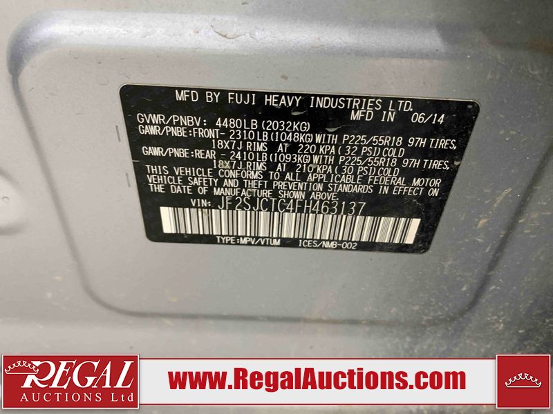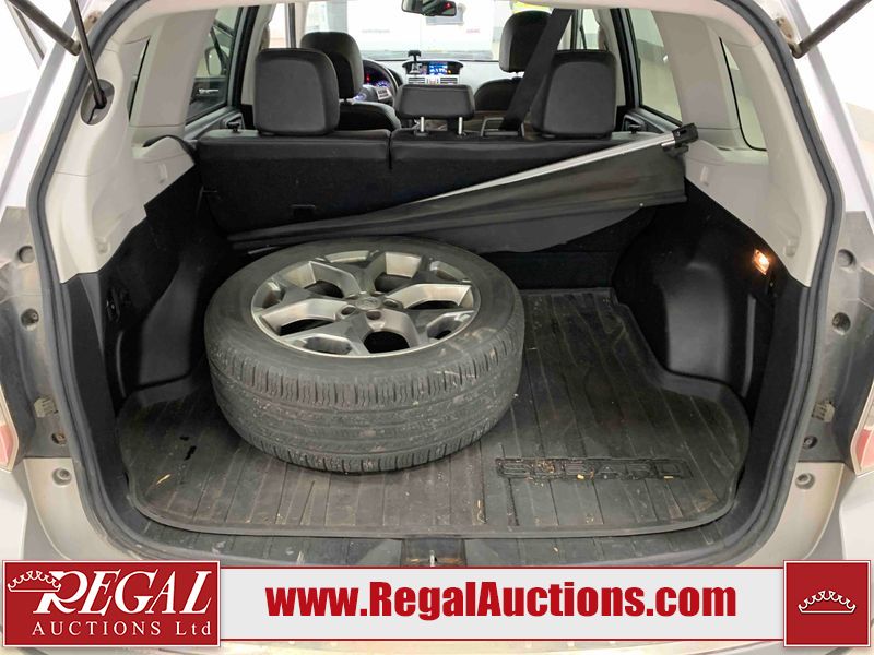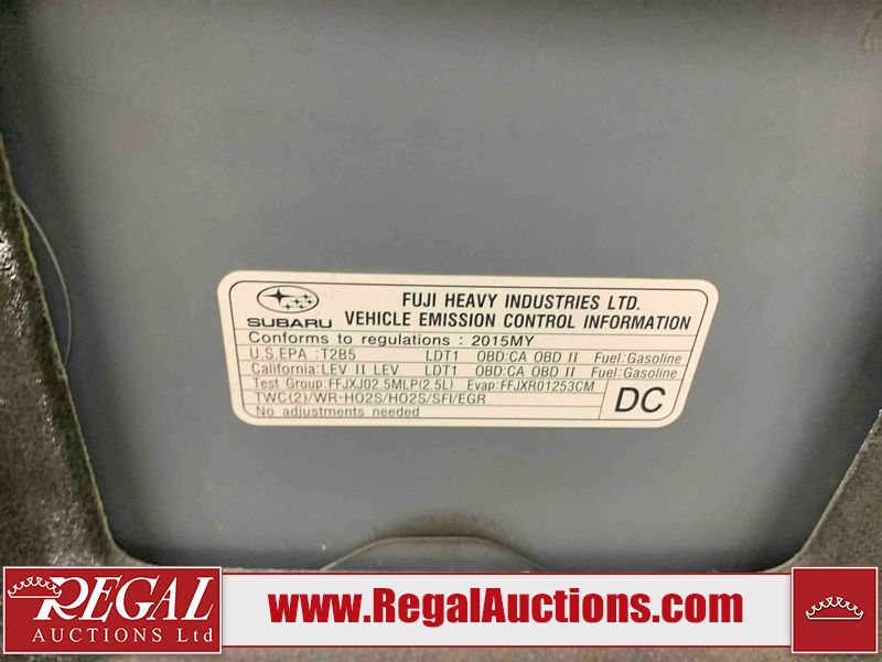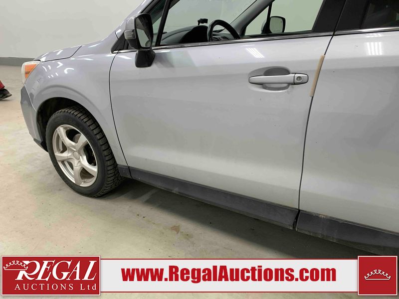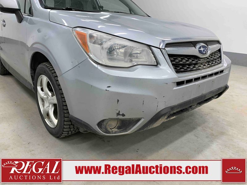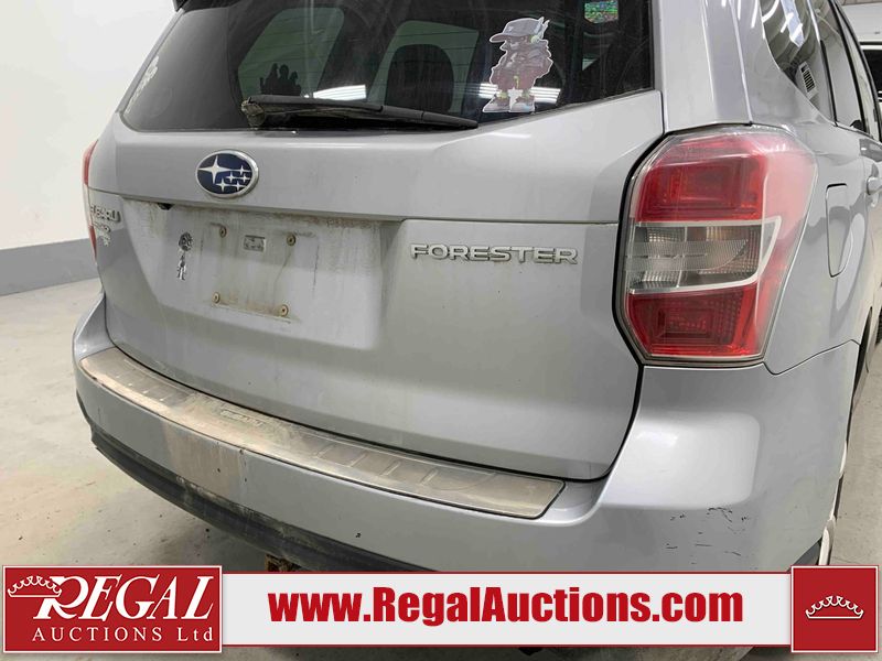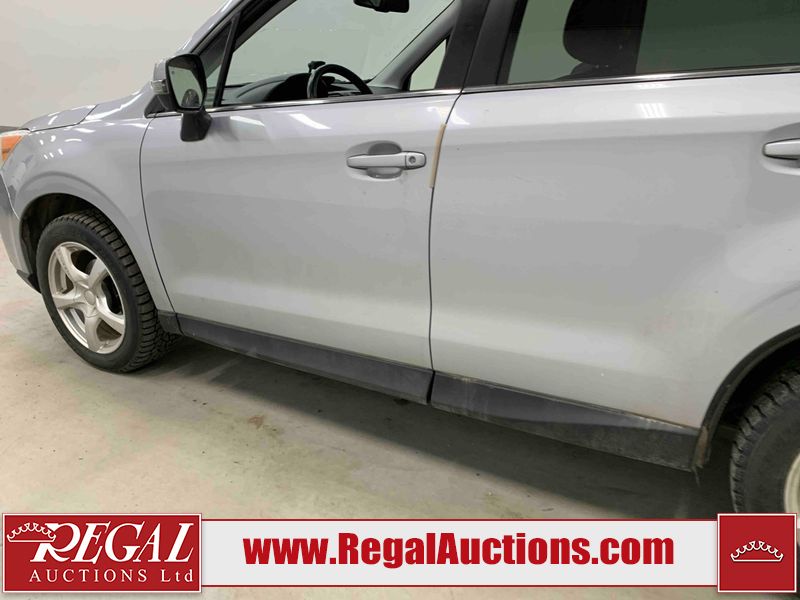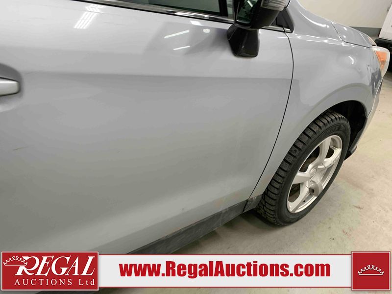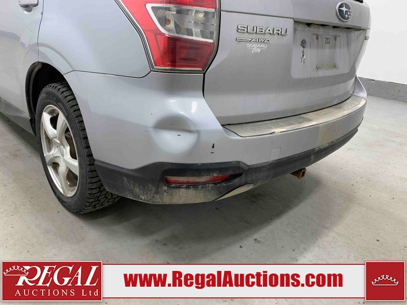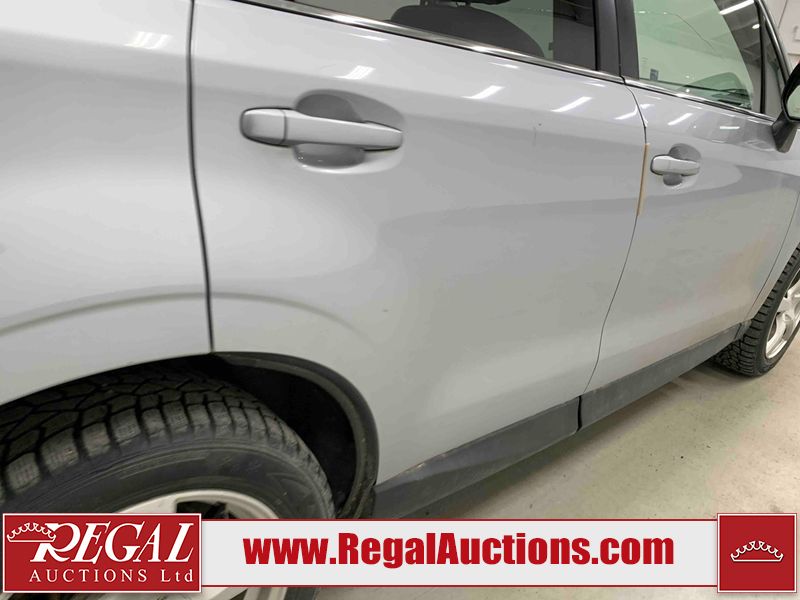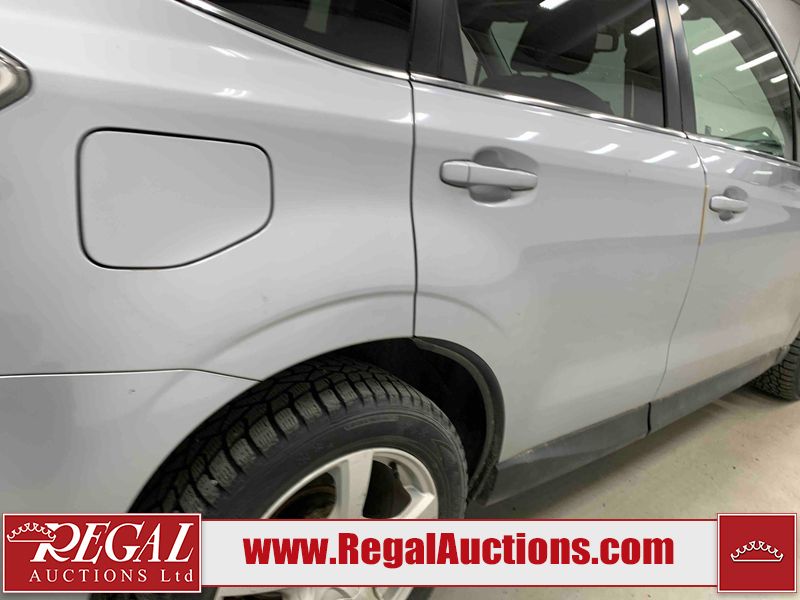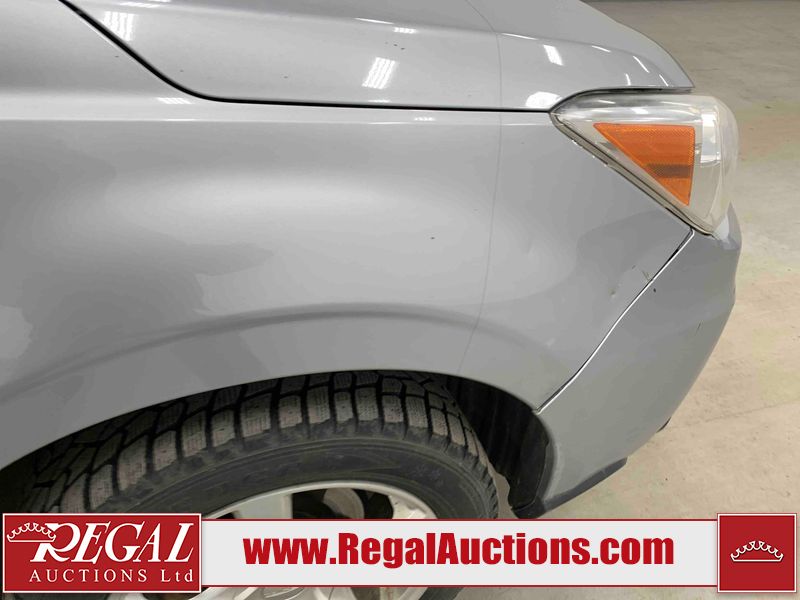 This 2015 SUBARU FORESTER 4D UTILITY AWD is powered by a 2.5L 4-cylinder gasoline engine and an automatic transmission. It is equipped with all-wheel drive. The SUV has seats for 5 people. The mileage is average considering the SUV's age. The vehicle has high-value options, including leather upholstery, power seats, and heated seats. The body looks to be in fair condition overall. There are chips on the front bumper, roof, left front fender, and rear bumper. There are scratches on the front bumper, hood, roof, left front fender, left front door, left rear door, left rear fender, rear bumper, rear door, right rear fender, right rear door, right front door, and right front fender. There is rust on the roof. There is dent damage on the left rear door. There are very minor chips in many areas around the body. The interior looks to be in good condition overall. The driver's seat is torn. The windshield is damaged. All of the tires have lots of tread remaining. This SUV is being sold by an automotive broker. The vehicle will be sold with the following declarations: Out of Province - BC (See Footnote 1). Footnotes: 1) The vehicle's last registered jurisdiction is British Columbia. The purchaser must have the vehicle undergo and pass an Out of Province inspection before it can be registered in Alberta. Regal Auctions Ltd. makes no guarantee or warranty, either express or implied, with respect to the data provided in this report. The information has been provided from the consignor and from sources generally believed to be reliable, however the accuracy of this information cannot be guaranteed by Regal Auctions.