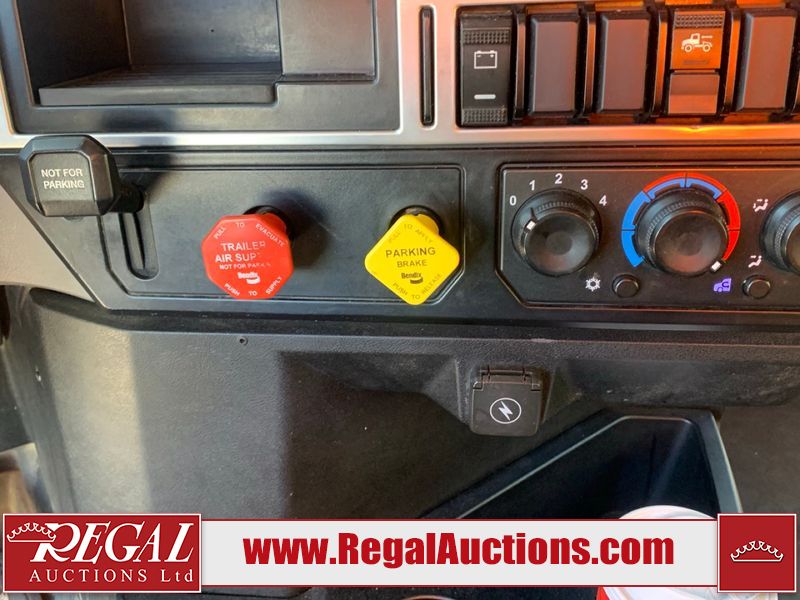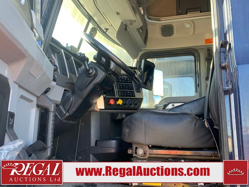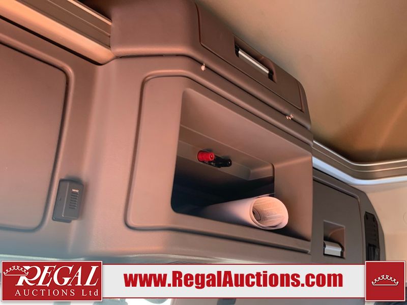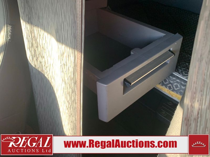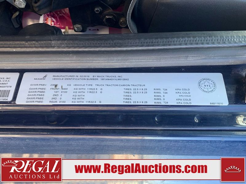 This unit is a 2020 Mack Anthem tandem axle sleeper highway tractor. Odometer reads 1,167,722 km and 21,913 engine hours. The CVIP expiry is 4/2026. This unit has a GVW of 23,600 kg. The interior is clean. The seats are torn. The rear drawer is off the slide. This unit is equipped with a mini refrigerator and rear climate control. It also has a dash cam and a tablet mounted to the dashboard. The engine cover, side, plastics, and walls have scratches. The front bumper and crash bar are missing. The engine starts and runs without a boost. The check engine light is on. The unit is powered by a 12.8L Mac in-line 6 cylinder turbo diesel engine and an automatic transmission. This unit has a 5400 kg front axle and 18,200 kg rear axles. This unit is Equipped with air brakes, air, suspension, and rear, locking differentials. Alloy rims are mounted, the tires have plenty of tread remaining.