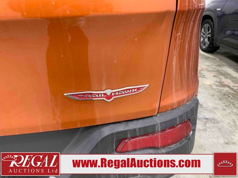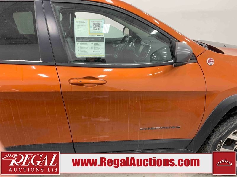 This 2016 JEEP CHEROKEE TRAILHAWK 4D UTILITY 4WD is powered by a 3.2L V6 gasoline engine and an automatic transmission. It is equipped with four-wheel drive. The SUV has seats for 5 people. The mileage is average considering the SUV's age. TRAILHAWK is a very popular trim level. The vehicle has high-value options, including a sunroof, leather upholstery, power seats, heated seats, and navigation. The body looks to be in fair condition overall. There are incidental chips on the front bumper, hood, roof, left front door, rear door, right rear door, right front door, and right front fender. There are scratches on the front bumper, hood, left front door, rear door, right rear fender, right rear door, right front door, and right front fender. There is minor dent damage on the right rear door. There are very minor chips in many areas around the body. There are very minor scratches in some areas around the body. The interior looks to be in good condition overall. The windshield looks to be in good condition. Both driver's side tires are nearly bald and should be replaced. Both passenger-side tires have lots of tread remaining. This SUV is being sold by an automotive broker. The vehicle will be sold with the following declarations: Claims Total $5000 - $9999 (See Footnote 1). Footnotes: 1) The vehicle's total recorded insurance claims history is between $5,000 - $9,999. This is the amount of money that was paid out by an insurance company for repairs to cover claims against the vehicle's insurance policy. This information is provided by CarFax. Regal Auctions Ltd. makes no guarantee or warranty, either express or implied, with respect to the data provided in this report. The information has been provided from the consignor and from sources generally believed to be reliable, however the accuracy of this information cannot be guaranteed by Regal Auctions.