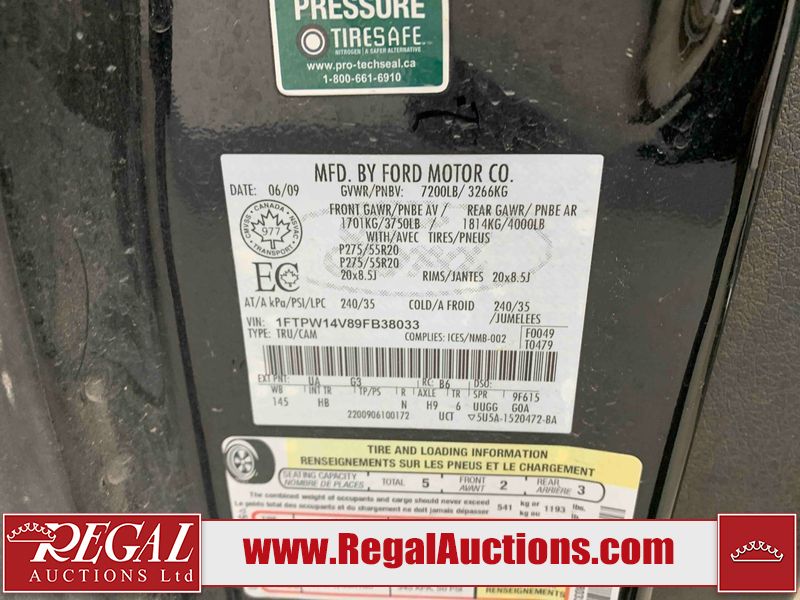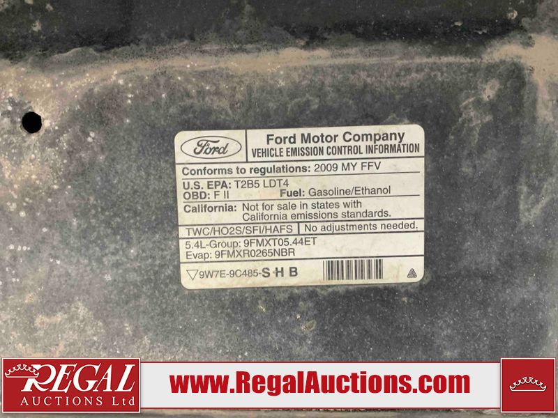 This 2009 FORD F-150 Lariat 4D CREW CAB is powered by a 5.4L 8C 8 cylinder gasoline engine and an automatic transmission. It is equipped with four wheel drive. The truck has seats for 5 people. The truck has high mileage for its age. The vehicle has high value options including leather upholstery, power seats, heated seats, navigation, and a backup camera. The Check Engine and Tire Pressure lights are on. The body looks to be in rough condition overall. There is a fair amount of rust on the front bumper, roof, left front door, and left rear fender. There is conspicuous paint peeling on the front bumper and roof. There is noteworthy chrome peeling on the grille. There are chips on the front bumper, hood, roof, left front door, left rear door, left rear fender, rear bumper, tail gate, right rear fender, right rear door, right front door, and right front fender. There are minor scratches on the front bumper, hood, roof, left front fender, left front door, left rear door, left rear fender, rear bumper, tail gate, right rear fender, right rear door, right front door, and right front fender. There is minimal dent damage on the hood and right rear fender. The left front fender has parts missing. There is slight paint peeling on the left front door and left rear fender. There is rust on the rear bumper, right rear fender, right rear door, and right front fender. There are very minor chips on the left front fender. The interior looks to be in fair condition overall. The dashboard is broken. The driver's seat is torn. The passenger side mirror housing is broken. All of the tires have lots of tread remaining. This truck is being sold by a franchise dealership. The vehicle will be sold with the following declarations: Dealership Trade-In (See Footnote 1). Footnotes: 1) This vehicle is being sold on behalf of a franchise dealership. Franchise Dealerships are automotive sales companies who are directly connected to an automotive manufacturer like Ford, Tesla, Honda, BMW, or similar. Regal Auctions Ltd. makes no guarantee or warranty, either express or implied, with respect to the data provided in this report. The information has been provided from the consignor and from sources generally believed to be reliable, however the accuracy of this information cannot be guaranteed by Regal Auctions.