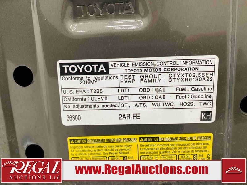 This 2012 TOYOTA RAV4 4D UTILITY is powered by a 2.5L 4 cylinder gasoline engine and an automatic transmission. It is equipped with four wheel drive. The SUV has seats for 5 people. The SUV has low mileage for its age. The vehicle has high value options including a backup camera. The body looks to be in fair condition overall. There are scratches on the front bumper, left rear fender, and rear door. There is minimal dent damage on the left rear door, right rear fender, right front door, and right front fender. There are very minor chips in many areas around the body. There are very minor scratches in many areas around the body. The interior looks to be in good condition overall. The windshield looks to be in good condition. All of the tires have lots of tread remaining. This SUV is being sold by an automotive broker. The vehicle will be sold with the following declarations: Claims Total $15,000 - $19,999 (See Footnote 1). Footnotes: 1) The vehicle's total recorded insurance claims history is between $15,000 - $19,999. This is the amount of money that was paid out by an insurance company for repairs to cover claims against the vehicle's insurance policy. This information is provided by CarFax. Regal Auctions Ltd. makes no guarantee or warranty, either express or implied, with respect to the data provided in this report. The information has been provided from the consignor and from sources generally believed to be reliable, however the accuracy of this information cannot be guaranteed by Regal Auctions.