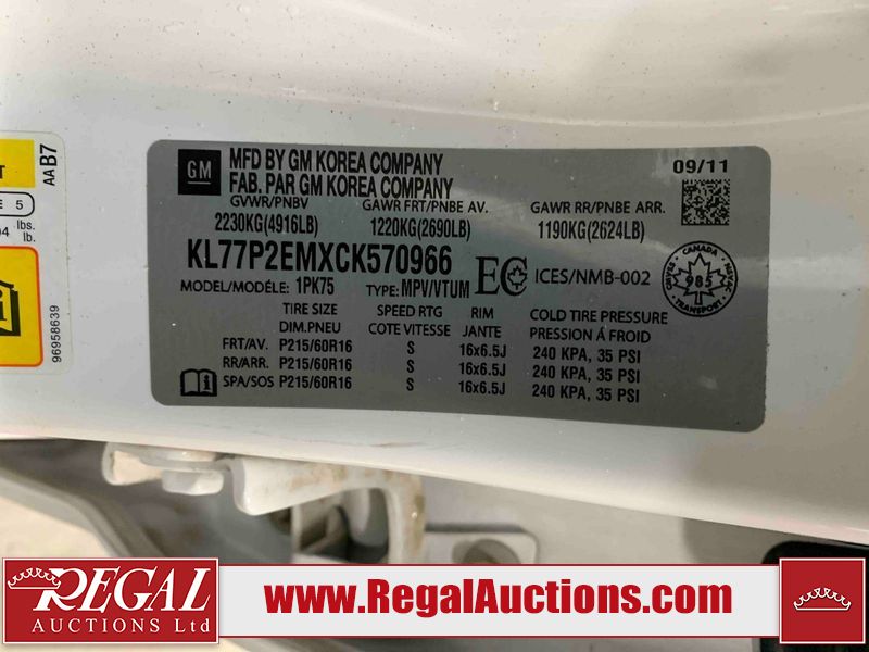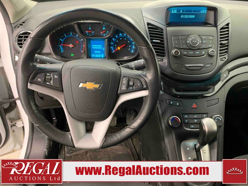 This 2012 CHEVROLET ORLANDO LT 4D UTILITY is powered by a 2.4L 4 cylinder gasoline engine and an automatic transmission. It is a two wheel drive model. The SUV has seats for 5 people. The SUV has low mileage for its age. The Tire Pressure light is on. The body looks to be in fair condition overall. There are minor scratches on the front bumper, left front fender, and rear bumper. There are slight chips on the hood, left front door, and rear bumper. There are very minor chips in many areas around the body. There are very minor scratches in many areas around the body. The interior looks to be in good condition overall. The windshield is chipped. All of the tires have lots of tread remaining. This SUV is being sold by an automotive broker. The vehicle will be sold with the following declarations: Out of Province - BC (See Footnote 1) and Out of Province - AB OVERRIDE (See Footnote 2). Footnotes: 1) The vehicle's last registered jurisdiction is British Columbia. The purchaser must have the vehicle undergo and pass an Out of Province inspection before it can be registered in Alberta. 2) Out of province inspection for registering the vehicle in Alberta has been completed. Regal Auctions Ltd. makes no guarantee or warranty, either express or implied, with respect to the data provided in this report. The information has been provided from the consignor and from sources generally believed to be reliable, however the accuracy of this information cannot be guaranteed by Regal Auctions.