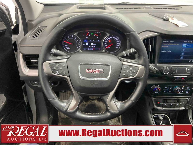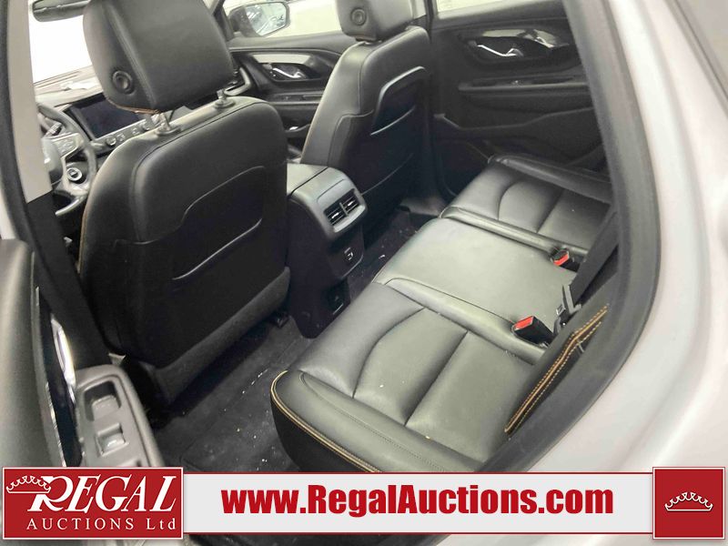 This 2022 GMC TERRAIN AT4 4D UTILITY 4WD 1.5L is powered by a turbocharged 4C 4 cylinder gasoline engine and an automatic transmission. It is equipped with four wheel drive. The SUV has seats for 5 people. The SUV has high mileage for its age. The vehicle has high value options including a sunroof, leather upholstery, power seats, heated seats, navigation, a backup camera, and a power lift gate. The body looks to be in fair condition overall. There are minimal chips on the front bumper, grille, hood, roof, left front door, and right front door. There is paint peeling on the front bumper and grille. There are very minor scratches in many areas around the body. There are very minor chips in many areas around the body. There is very minor dent damage in a few areas around the body. The interior looks to be in good condition overall. The carpet is dirty. The windshield is chipped. All of the tires have lots of tread remaining.