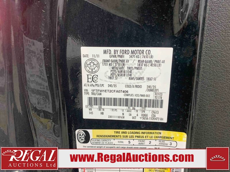 This 2012 FORD F-150 CREW CAB is powered by a 3.5L 6 cylinder gasoline engine and an automatic transmission. It is equipped with four wheel drive. The truck has seats for 5 people. The mileage is average considering the truck's age. The vehicle has high value options including power seats, heated seats, navigation, and a backup camera. The body looks to be in rough condition overall. There are incidental chips on the front bumper, grille, hood, roof, left front fender, left front door, left rear door, left rear fender, rear bumper, trunk lid, rear door, tail gate, pickup bed, right rear fender, right rear door, right front door, and right front fender. There are minimal scratches on the front bumper, hood, roof, left front fender, left front door, left rear door, left rear fender, rear bumper, trunk lid, rear door, tail gate, pickup bed, right rear fender, right rear door, right front door, and right front fender. The interior looks to be in good condition overall. The carpet is dirty. The windshield is damaged. All of the tires have lots of tread remaining. This truck is being sold by a franchise dealership. The vehicle will be sold with the following declarations: Dealership Trade-In (See Footnote 1). Footnotes: 1) This vehicle is being sold on behalf of a franchise dealership. Franchise Dealerships are automotive sales companies who are directly connected to an automotive manufacturer like Ford, Tesla, Honda, BMW, or similar. Regal Auctions Ltd. makes no guarantee or warranty, either express or implied, with respect to the data provided in this report. The information has been provided from the consignor and from sources generally believed to be reliable, however the accuracy of this information cannot be guaranteed by Regal Auctions.