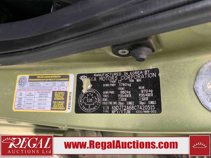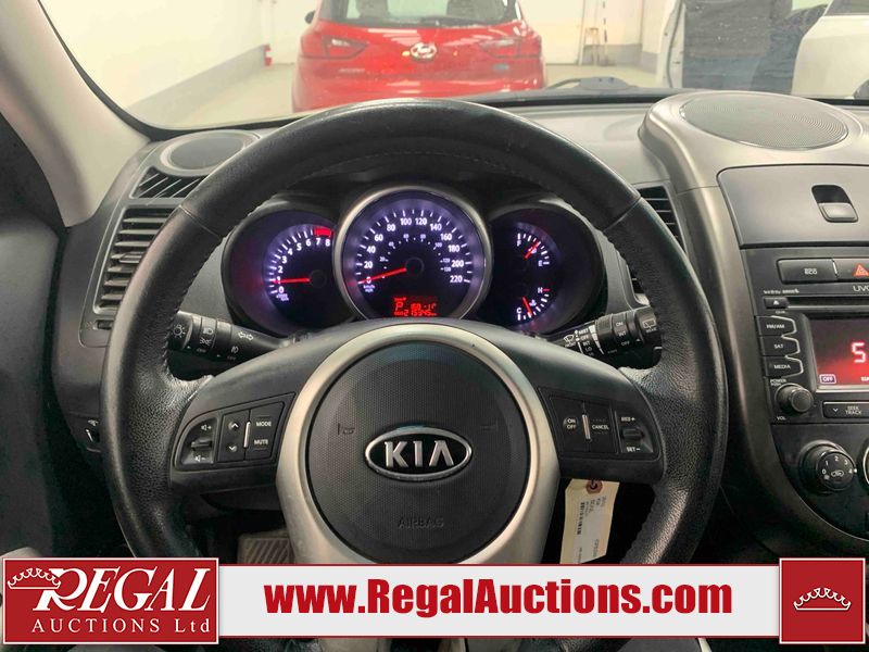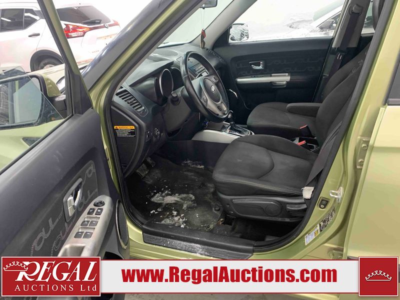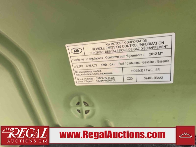 This 2012 KIA SOUL 4D UTILITY is powered by a 2.0L 4 cylinder gasoline engine and an automatic transmission. It is a two wheel drive model. The SUV has seats for 5 people. The mileage is average considering the SUV's age. The vehicle has high value options including a sunroof, power seats, and navigation. The body looks to be in rough condition overall. There are chips on the front bumper, grille, hood, roof, left front fender, left front door, left rear door, left rear fender, rear bumper, trunk lid, rear door, tail gate, pickup bed, right rear fender, right rear door, right front door, and right front fender. There are scratches on the front bumper, hood, roof, left front fender, left front door, left rear door, left rear fender, rear bumper, trunk lid, rear door, tail gate, pickup bed, right rear fender, right rear door, right front door, and right front fender. There is incidental dent damage on the left front fender, left rear door, and left rear fender. There is minor rust on the left front fender. The interior looks to be in fair condition overall. The doors are worn. The dashboard, driver's seat, passenger seat, rear seats, and doors are dirty. The windshield is chipped. The tires are all worn. This SUV is being sold by an automotive broker. The vehicle will be sold with the following declarations: Auctioneer Announcement "**DRIVERS DOOR INOPERABLE FROM EXTEROIR** " and Claims Total $1000 - $2999 (See Footnote 1). Footnotes: 1) The vehicle's total recorded insurance claims history is between $1,000 - $2,999. This is the amount of money that was paid out by an insurance company for repairs to cover claims against the vehicle's insurance policy. This information is provided by CarFax. Regal Auctions Ltd. makes no guarantee or warranty, either express or implied, with respect to the data provided in this report. The information has been provided from the consignor and from sources generally believed to be reliable, however the accuracy of this information cannot be guaranteed by Regal Auctions.