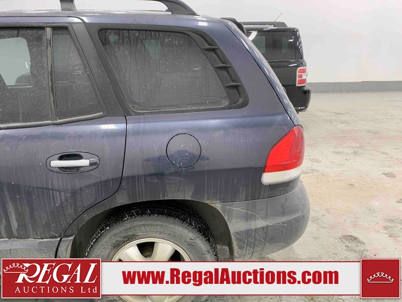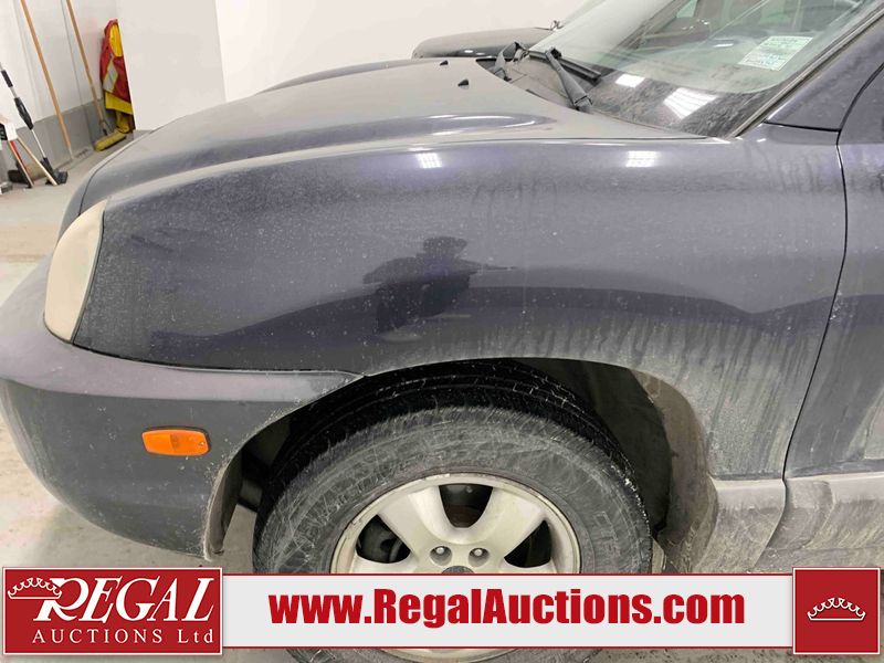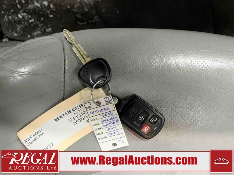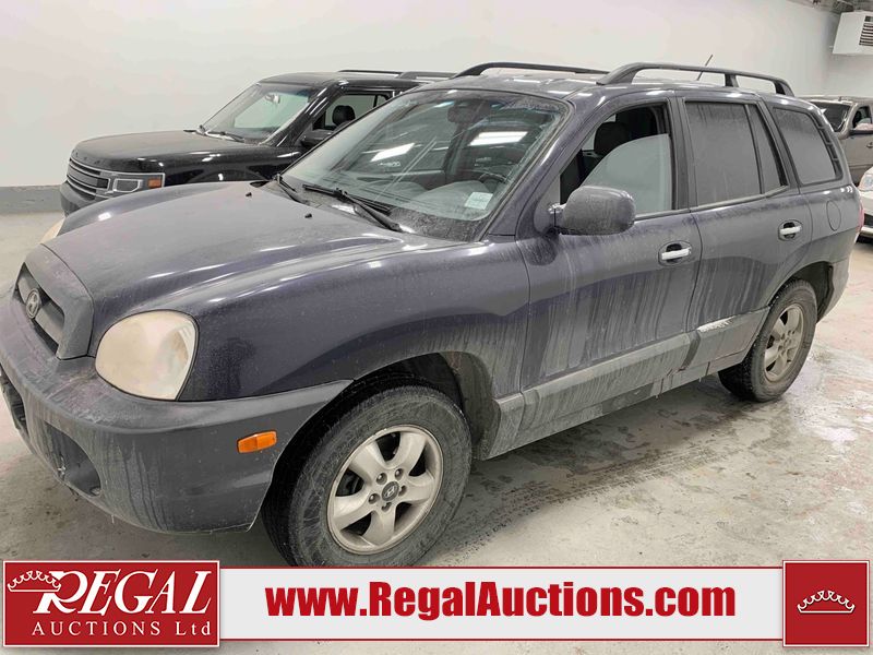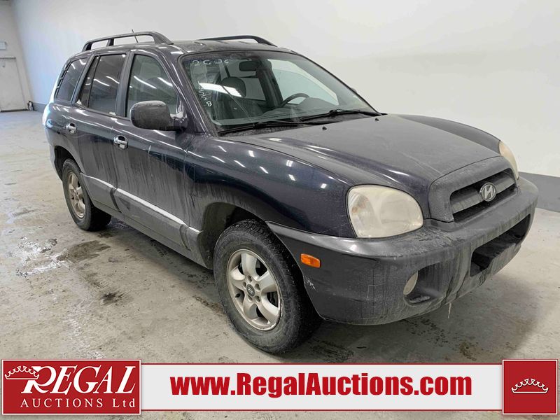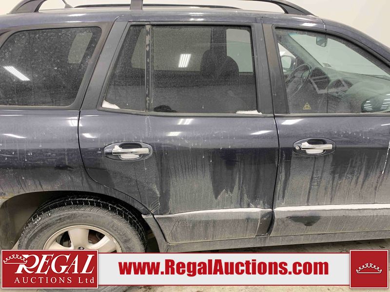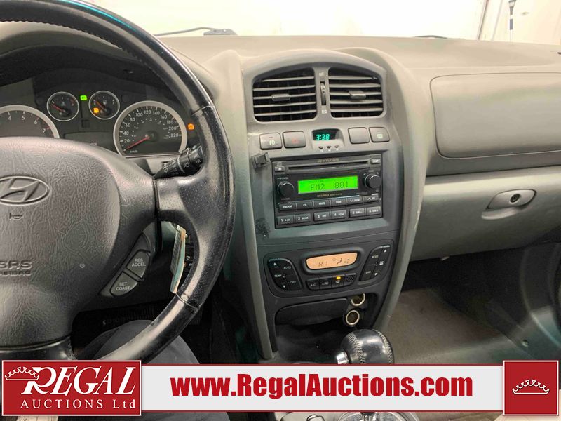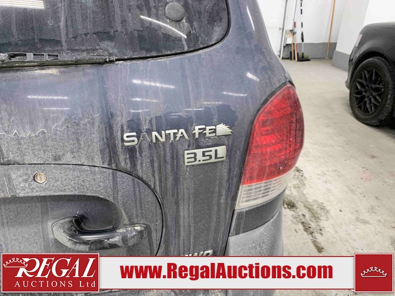This 2006 HYUNDAI SANTA FE 4D UTILITY is powered by a 3.5L 6 cylinder gasoline engine and an automatic transmission. It is equipped with four wheel drive. The SUV has seats for 5 people. The SUV has high mileage for its age. The vehicle has high value options including a sunroof, leather upholstery, power seats, heated seats, and a power lift gate. The Check Engine light is on. The body looks to be in rough condition overall. There are incidental chips on the front bumper, grille, hood, roof, left front fender, left front door, left rear door, left rear fender, rear bumper, trunk lid, rear door, tail gate, pickup bed, right rear fender, right rear door, right front door, and right front fender. There are incidental scratches on the front bumper, hood, roof, left front fender, left front door, left rear door, left rear fender, rear bumper, trunk lid, rear door, tail gate, pickup bed, right rear fender, right rear door, right front door, and right front fender. The interior looks to be in good condition overall. The dashboard, driver's seat, passenger seat, rear seats, and doors are dirty. The windshield is chipped. The tires are all worn. This SUV is being sold by a franchise dealership. The vehicle will be sold with the following declarations: Dealership Trade-In (See Footnote 1). Footnotes: 1) This vehicle is being sold on behalf of a franchise dealership. Franchise Dealerships are automotive sales companies who are directly connected to an automotive manufacturer like Ford, Tesla, Honda, BMW, or similar. Regal Auctions Ltd. makes no guarantee or warranty, either express or implied, with respect to the data provided in this report. The information has been provided from the consignor and from sources generally believed to be reliable, however the accuracy of this information cannot be guaranteed by Regal Auctions.