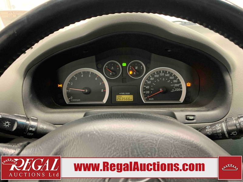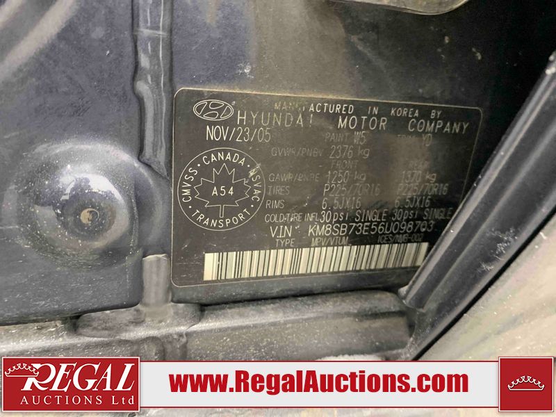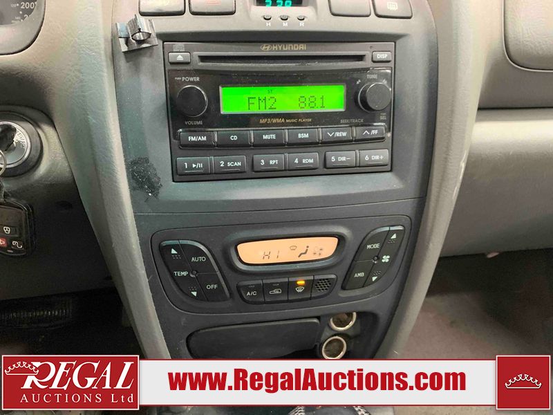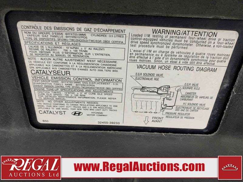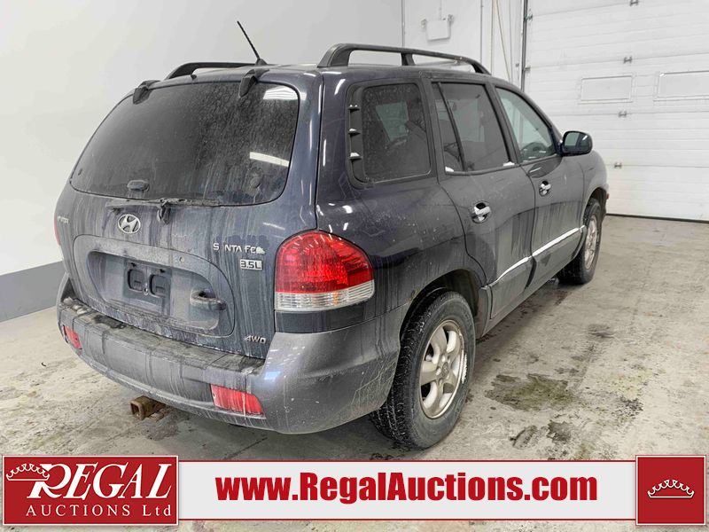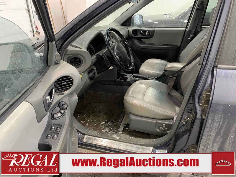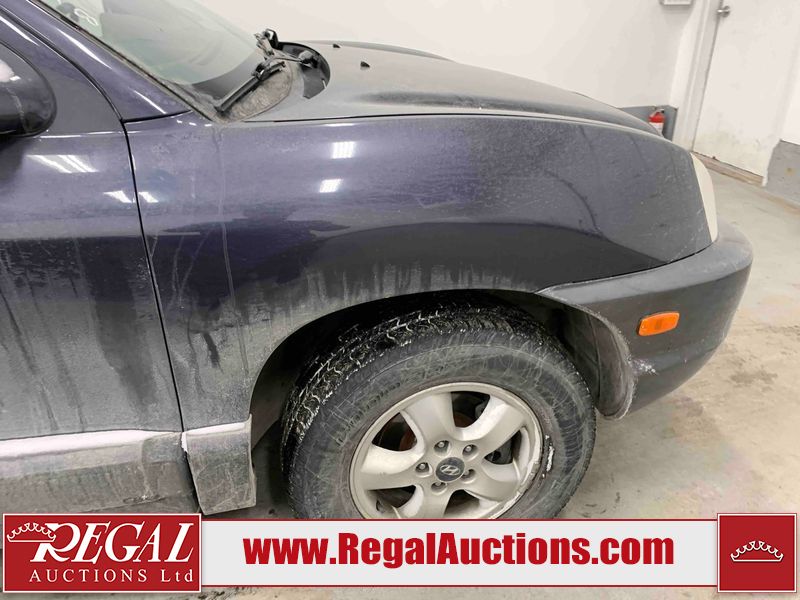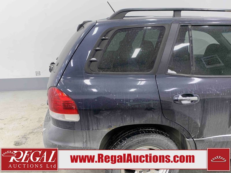 This 2006 HYUNDAI SANTA FE 4D UTILITY is powered by a 3.5L 6 cylinder gasoline engine and an automatic transmission. It is equipped with four wheel drive. The SUV has seats for 5 people. The SUV has high mileage for its age. The vehicle has high value options including a sunroof, leather upholstery, power seats, heated seats, and a power lift gate. The Check Engine light is on. The body looks to be in rough condition overall. There are incidental chips on the front bumper, grille, hood, roof, left front fender, left front door, left rear door, left rear fender, rear bumper, trunk lid, rear door, tail gate, pickup bed, right rear fender, right rear door, right front door, and right front fender. There are incidental scratches on the front bumper, hood, roof, left front fender, left front door, left rear door, left rear fender, rear bumper, trunk lid, rear door, tail gate, pickup bed, right rear fender, right rear door, right front door, and right front fender. The interior looks to be in good condition overall. The dashboard, driver's seat, passenger seat, rear seats, and doors are dirty. The windshield is chipped. The tires are all worn. This SUV is being sold by a franchise dealership. The vehicle will be sold with the following declarations: Dealership Trade-In (See Footnote 1). Footnotes: 1) This vehicle is being sold on behalf of a franchise dealership. Franchise Dealerships are automotive sales companies who are directly connected to an automotive manufacturer like Ford, Tesla, Honda, BMW, or similar. Regal Auctions Ltd. makes no guarantee or warranty, either express or implied, with respect to the data provided in this report. The information has been provided from the consignor and from sources generally believed to be reliable, however the accuracy of this information cannot be guaranteed by Regal Auctions.