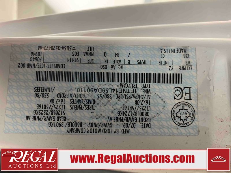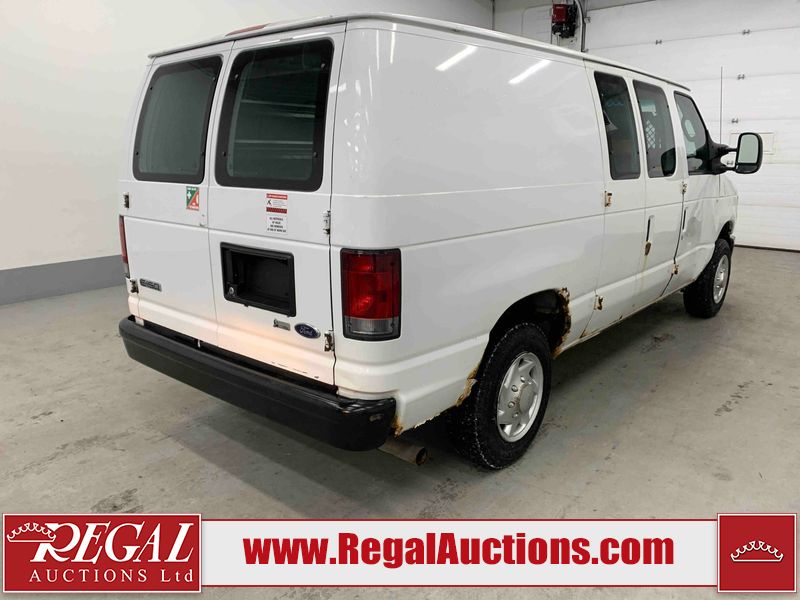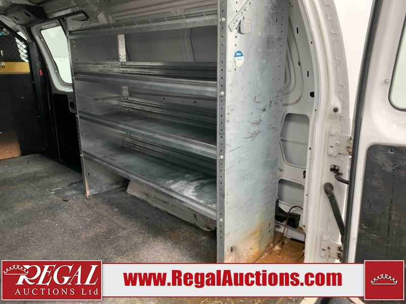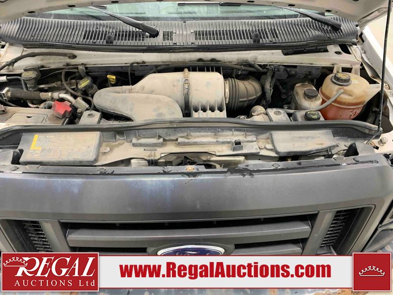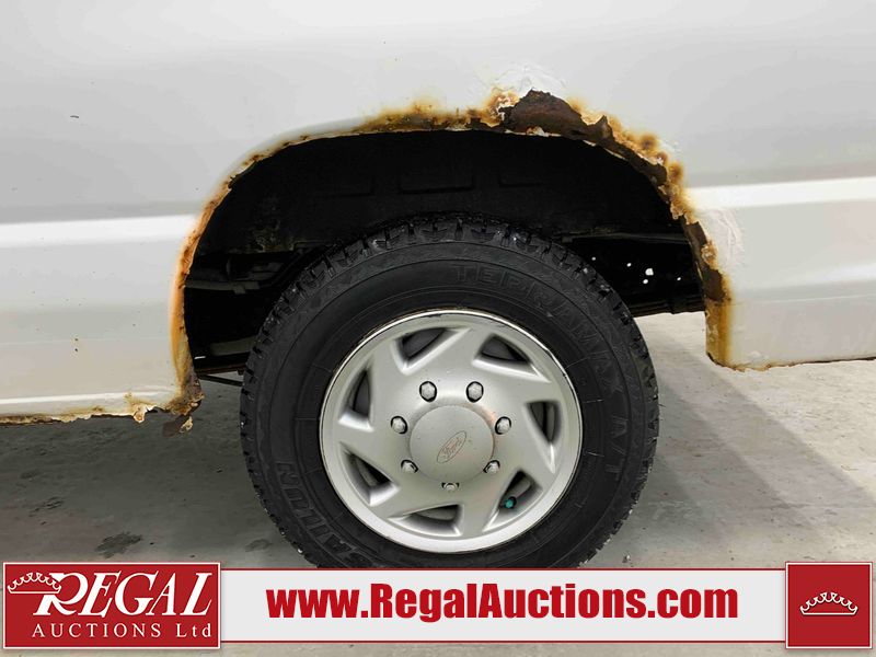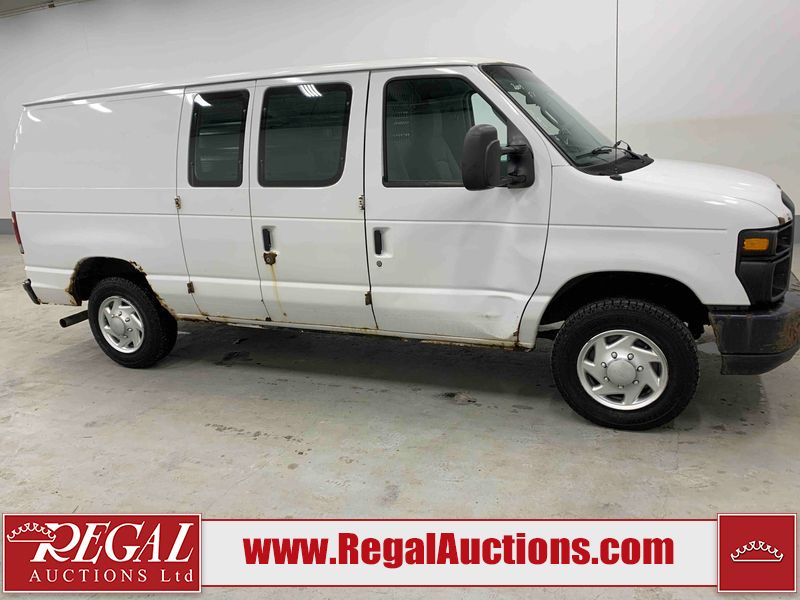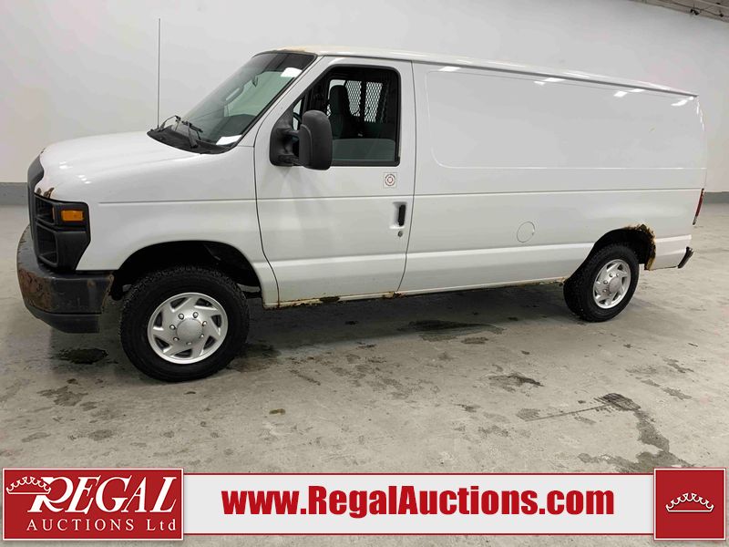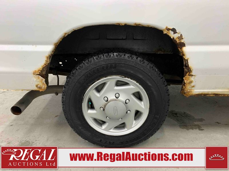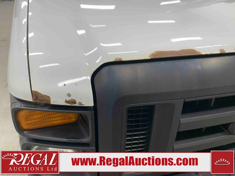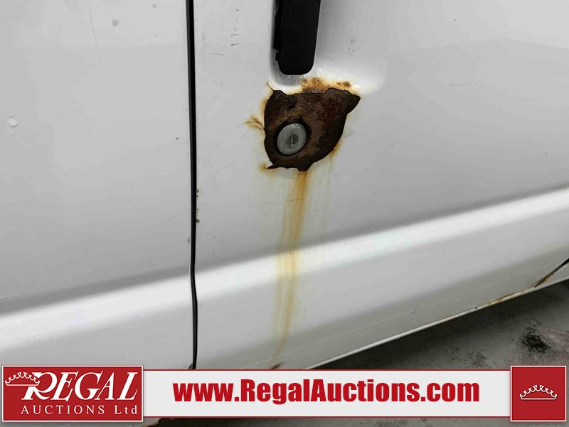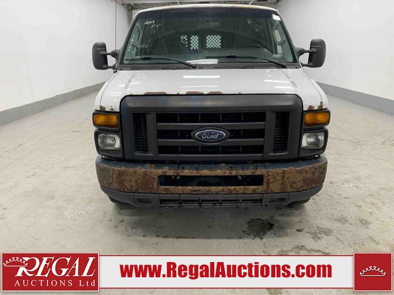 This 2009 FORD E-150 ECONOLINE CARGO VAN RWD is powered by a 5.4L 8C 8 cylinder gasoline engine and an automatic transmission. The van has seats for 2 people. The mileage is average considering the van's age. The vehicle does not have power windows or power locks. It is equipped with a rear cargo heater. The body looks to be in rough condition overall. There is considerable rust on the front bumper, left rear fender, right rear fender, and right rear door. There is substantial dent damage on the right front door. There is noteworthy rust on the hood, roof, left front door, right front door, and right front fender. There is noteworthy hail on the roof. There are incidental chips on the hood, left front door, and right front fender. There is minor hail on the hood. There are minimal scratches on the rear bumper, rear door, right rear door, and right front fender. There is minor rust on the rear door. There is dent damage on the right front fender. The interior looks to be in good condition overall. The passenger side mirror housing is broken. The windshield is cracked. All of the tires have lots of tread remaining. This van is being sold by the fleet department of a corporation or government body. The vehicle will be sold with the following declarations: Fleet Vehicle (See Footnote 1). Footnotes: 1) This vehicle is a commercially owned work vehicle. Regal Auctions Ltd. makes no guarantee or warranty, either express or implied, with respect to the data provided in this report. The information has been provided from the consignor and from sources generally believed to be reliable, however the accuracy of this information cannot be guaranteed by Regal Auctions.