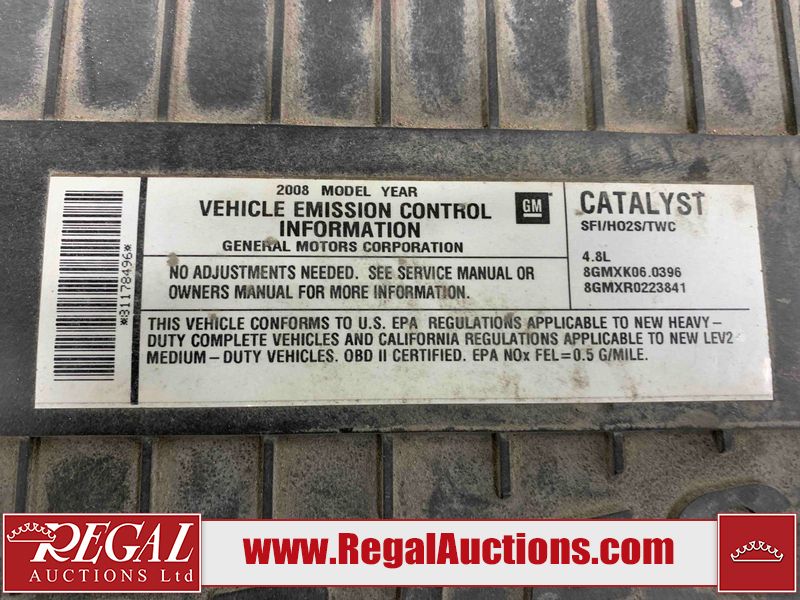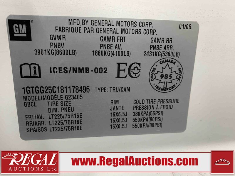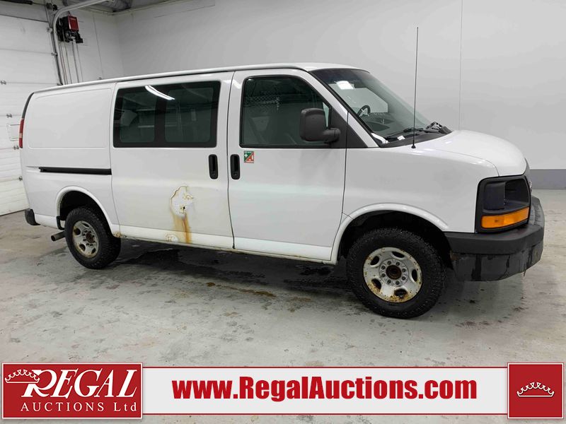 This 2008 GMC SAVANA G2500 CARGO VAN RWD 4.8L is powered by a 4.8L 8C 8 cylinder gasoline engine and an automatic transmission. The van has seats for 2 people. The van has low mileage for its age. The vehicle does not have power windows or power locks. It is equipped with a rear cargo heater. The body looks to be in rough condition overall. There is extensive rust on the left rear fender, right rear fender, and right rear door. There is very bad dent damage on the rear bumper. There is moderate rust on the front bumper, left front door, and right front door. There is moderate hail on the hood and roof. There are slight chips on the hood and left front fender. There is rust on the roof, left front fender, rear bumper, and rear door. There are minimal scratches on the left front door, left rear fender, rear door, right rear fender, and right rear door. There are very minor scratches on the right front door. There are very minor chips on the right front fender. The interior looks to be in good condition overall. The windshield looks to be in good condition. All of the tires have lots of tread remaining. This van is being sold by the fleet department of a corporation or government body. The vehicle will be sold with the following declarations: Fleet Vehicle (See Footnote 1). Footnotes: 1) This vehicle is a commercially owned work vehicle. Regal Auctions Ltd. makes no guarantee or warranty, either express or implied, with respect to the data provided in this report. The information has been provided from the consignor and from sources generally believed to be reliable, however the accuracy of this information cannot be guaranteed by Regal Auctions.
