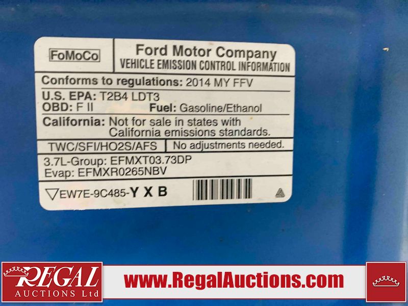 This 2014 FORD F-150 XLT SUPERCAB is powered by a 3.7L V6 cylinder gasoline engine and an automatic transmission. It is equipped with four-wheel drive. The truck has seats for 6 people. The truck has low mileage for its age. The body looks to be in fair condition overall. There are a fair amount of scratches on the pickup bed. There is moderate rust on the right rear fender and right front door. There are chips on the front bumper, hood, left front fender, and left rear fender. There is dent damage on the front bumper, left front door, and tail gate. There are scratches on the left rear fender, rear bumper, tail gate, and right rear door. There are very minor chips in many areas around the body. There are very minor scratches in some areas around the body. The tail lights are broken. The interior looks to be in good condition overall. The windshield is chipped. The passenger side tires are worn. The driver's side tires have lots of tread remaining. This truck is being sold by a franchise dealership. The vehicle will be sold with the following declarations: Dealership Trade-In (See Footnote 1). Footnotes: 1) This vehicle is being sold on behalf of a franchise dealership. Franchise Dealerships are automotive sales companies who are directly connected to an automotive manufacturer like Ford, Tesla, Honda, BMW, or similar. Regal Auctions Ltd. makes no guarantee or warranty, either express or implied, with respect to the data provided in this report. The information has been provided from the consignor and from sources generally believed to be reliable, however the accuracy of this information cannot be guaranteed by Regal Auctions.