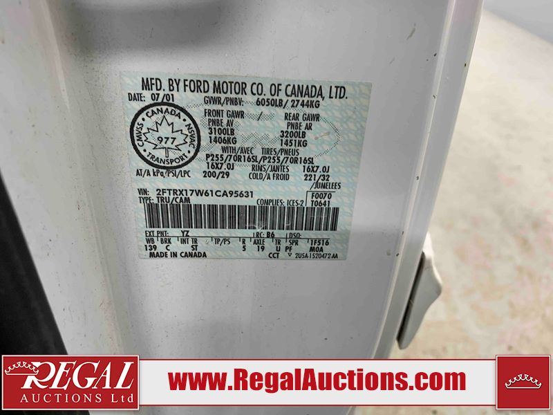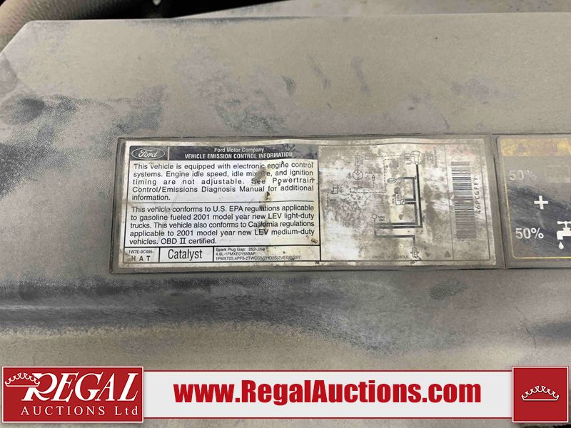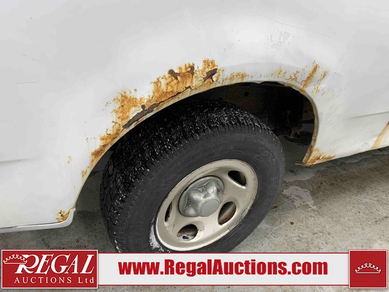 This 2001 FORD F-150 EXTENDED CAB PICKUP 4.6L is powered by a 4.6L 8 cylinder gasoline engine and an automatic transmission. It is a two wheel drive model. The truck has seats for 6 people. The truck has high mileage for its age. The vehicle does not have power windows or power locks. The body looks to be in rough condition overall. There is severe rust on the left rear fender and tail gate. There is a fair amount of rust on the roof, left front fender, left front door, left rear fender, tail gate, right front door, and right front fender. There are slight chips on the front bumper, grille, hood, roof, left front fender, left front door, left rear fender, tail gate, right front door, and right front fender. There are slight scratches on the front bumper, hood, roof, left front fender, left front door, left rear fender, tail gate, right front door, and right front fender. There is dent damage on the left front door, left rear fender, right front door, and right front fender. The headlight lenses are hazy. The airbag light is on The interior looks to be in good condition overall. The windshield is chipped. The windshield is cracked. All of the tires have lots of tread remaining. This truck is being sold by a franchise dealership. The vehicle will be sold with the following declarations: Dealership Trade-In (See Footnote 1). Footnotes: 1) This vehicle is being sold on behalf of a franchise dealership. Franchise Dealerships are automotive sales companies who are directly connected to an automotive manufacturer like Ford, Tesla, Honda, BMW, or similar. Regal Auctions Ltd. makes no guarantee or warranty, either express or implied, with respect to the data provided in this report. The information has been provided from the consignor and from sources generally believed to be reliable, however the accuracy of this information cannot be guaranteed by Regal Auctions.