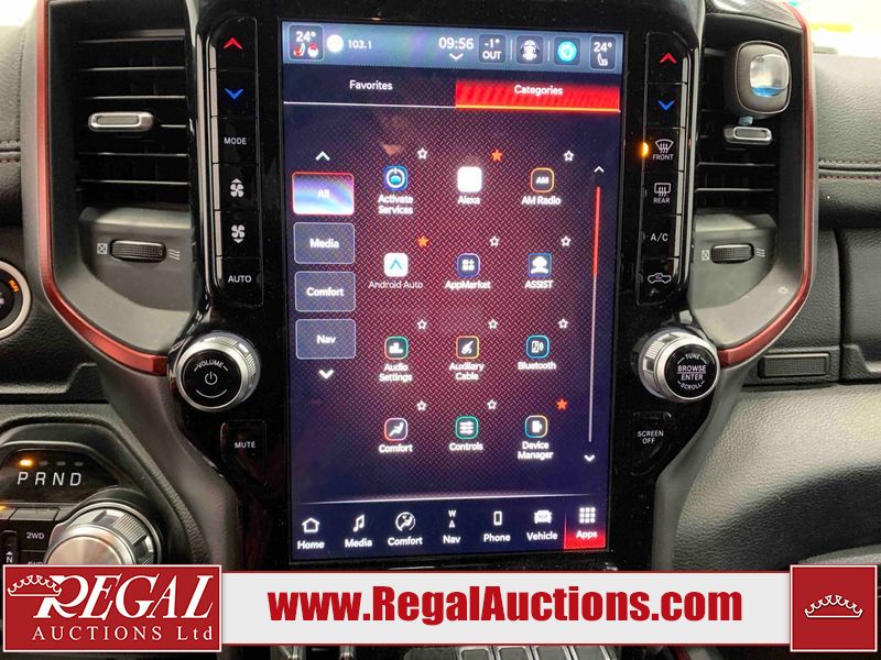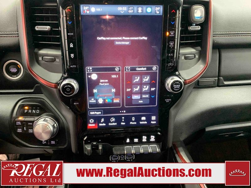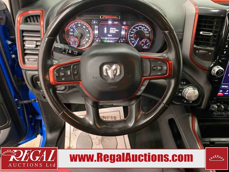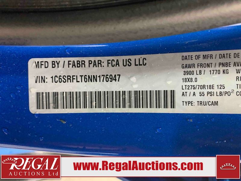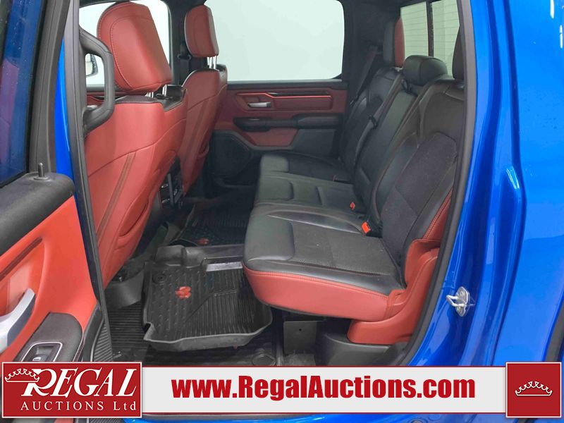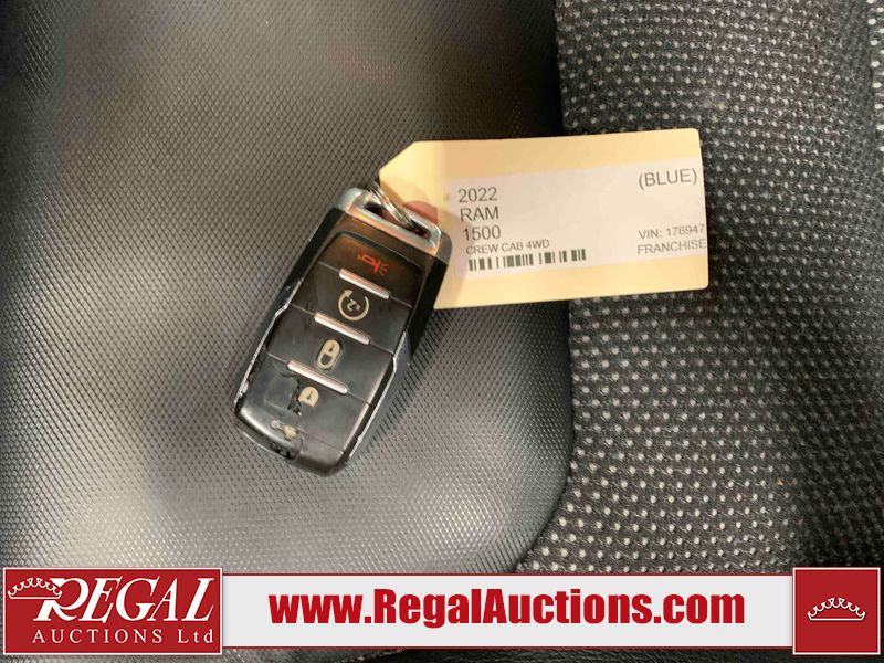 This 2022 RAM 1500 CREW CAB 4WD is powered by a V8 gasoline engine and an automatic transmission. It is equipped with four-wheel drive. The truck has seats for 5 people. The truck has high mileage for its age. The vehicle has high-value options, including leather upholstery, power seats, navigation, and a backup camera. The body looks to be in good condition overall. There are chips on the front bumper. There are minimal scratches on the rear bumper and right rear fender. There are very minor chips in many areas around the body. There are very minor scratches on the tailgate. The interior looks to be in good condition overall. The driver's seat is torn. The windshield is cracked. All of the tires have lots of tread remaining. This truck is being sold by a franchise dealership. The vehicle will be sold with the following declarations: Claims Total $15,000 - $19,999 (See Footnote 1) and Dealership Trade-In (See Footnote 2). Footnotes: 1) The vehicle's total recorded insurance claims history is between $15,000 - $19,999. This is the amount of money that was paid out by an insurance company for repairs to cover claims against the vehicle's insurance policy. This information is provided by CarFax. 2) This vehicle is being sold on behalf of a franchise dealership. Franchise Dealerships are automotive sales companies who are directly connected to an automotive manufacturer like Ford, Tesla, Honda, BMW, or similar. Regal Auctions Ltd. makes no guarantee or warranty, either express or implied, with respect to the data provided in this report. The information has been provided from the consignor and from sources generally believed to be reliable, however the accuracy of this information cannot be guaranteed by Regal Auctions.