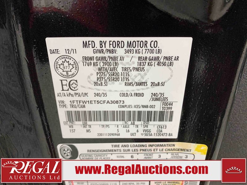 This 2012 FORD F-150 XLT 4D CREW CAB PICKUP 4WD is powered by a 3.5L 6 cylinder gasoline engine and an automatic transmission. It is equipped with four wheel drive. The truck has seats for 6 people. The mileage is average considering the truck's age. The vehicle has high value options including power seats. The body looks to be in fair condition overall. There are scratches on the left front fender, rear bumper, tail gate, right rear fender, and right front door. There is minimal dent damage on the left front fender. There are very minor chips in many areas around the body. There are very minor scratches in many areas around the body. There is very minor dent damage in a few areas around the body. The interior looks to be in good condition overall. The windshield is cracked. All of the tires have lots of tread remaining. This truck is being sold by a franchise dealership. The vehicle will be sold with the following declarations: Dealership Trade-In (See Footnote 1). Footnotes: 1) This vehicle is being sold on behalf of a franchise dealership. Franchise Dealerships are automotive sales companies who are directly connected to an automotive manufacturer like Ford, Tesla, Honda, BMW, or similar. Regal Auctions Ltd. makes no guarantee or warranty, either express or implied, with respect to the data provided in this report. The information has been provided from the consignor and from sources generally believed to be reliable, however the accuracy of this information cannot be guaranteed by Regal Auctions.