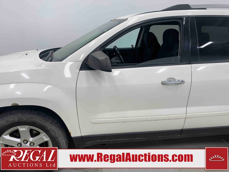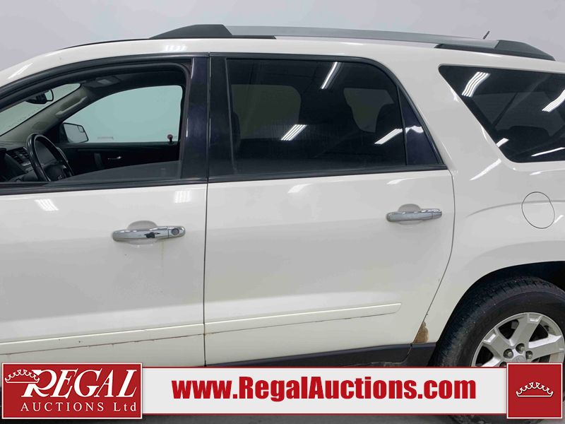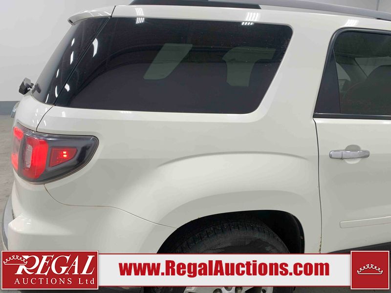 This 2013 GMC ACADIA 4D UTILITY AWD is powered by a 3.6L 6 cylinder gasoline engine and an automatic transmission. It is equipped with four wheel drive. The SUV has seats for 7 people. The SUV has high mileage for its age. The vehicle has high value options including power seats, heated seats, a backup camera, and a power lift gate. The body looks to be in rough condition overall. There is pronounced rust on the roof, left front fender, and left rear fender. There are minimal chips on the front bumper, hood, roof, left front fender, left front door, rear bumper, rear door, right rear fender, right rear door, right front door, and right front fender. There are minimal scratches on the front bumper, left rear door, rear bumper, and rear door. There is dent damage on the left front fender. There is slight rust on the right rear fender and right front fender. There are very minor chips in a few areas around the body. There are very minor scratches in many areas around the body. The interior looks to be in good condition overall. The windshield is cracked. The tires are all worn. This SUV is being sold by an automotive broker. Regal Auctions Ltd. makes no guarantee or warranty, either express or implied, with respect to the data provided in this report. The information has been provided from the consignor and from sources generally believed to be reliable, however the accuracy of this information cannot be guaranteed by Regal Auctions.