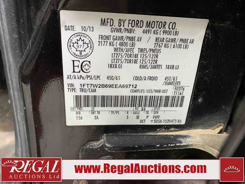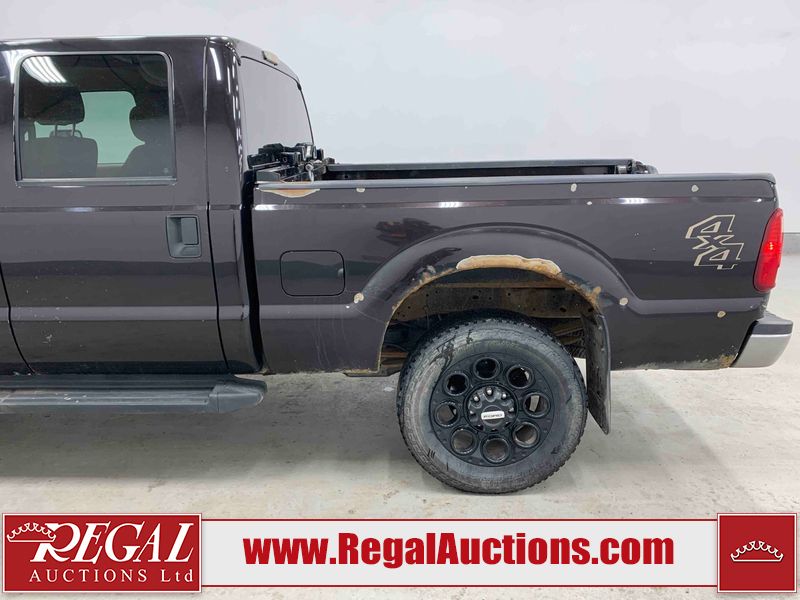 This 2014 FORD F-250 SD XLT CREW CAB 4WD is powered by a 6.2L V8 gasoline engine and an automatic transmission. It is equipped with four-wheel drive. The truck has seats for 5 people. The truck has high mileage for its age. The vehicle has high-value options including power seats. The Tire Pressure light is on. The body looks to be in rough condition overall. There is severe rust on the left rear fender and right rear fender. There is a fair amount of rust on the left front fender, pickup bed, and right front fender. There are some scratches on the pickup bed. There is rust on the front bumper and left rear door. There are chips on the front bumper, grille, hood, left front fender, left front door, left rear door, left rear fender, right rear fender, right rear door, right front door, and right front fender. There is slight chrome peeling on the grille. There are incidental scratches on the left front door, left rear door, left rear fender, rear bumper, right rear fender, right rear door, and right front door. There is dent damage on the pickup bed and right front door. There are very minor scratches on the hood. The taillight is cracked. The interior looks to be in fair condition overall. The driver's seat is worn. The rear seats are stained. The driver's seat is stained. The windshield is cracked. The passenger side rear tire is worn. All of the other tires have lots of tread remaining. This truck is being sold by a private individual. The vehicle will be sold with the following declarations: Claims Total $10,000 - $14,999 (See Footnote 1). Footnotes: 1) The vehicle's total recorded insurance claims history is between $10,000 - $14,999. This is the amount of money that was paid out by an insurance company for repairs to cover claims against the vehicle's insurance policy. This information is provided by CarFax. Regal Auctions Ltd. makes no guarantee or warranty, either express or implied, with respect to the data provided in this report. The information has been provided from the consignor and from sources generally believed to be reliable, however the accuracy of this information cannot be guaranteed by Regal Auctions.