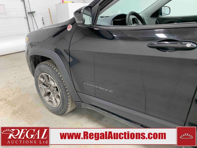 This 2022 JEEP CHEROKEE TRAILHAWK ELITE 4D UTILITY 4WD 3.2L is powered by a 6 cylinder gasoline engine and an automatic transmission. It is equipped with four wheel drive. The SUV has seats for 5 people. The SUV has high mileage for its age. TRAILHAWK is a very popular trim level. The vehicle has high value options including leather upholstery, power seats, heated seats, navigation, and a backup camera. The body looks to be in good condition overall. There are chips on the front bumper, hood, roof, and left front door. There are scratches on the rear bumper. There are very minor scratches in many areas around the body. There are very minor chips in many areas around the body. The interior looks to be in good condition overall. The windshield is cracked. The front tires are both worn. The rear tires both have lots of tread remaining.