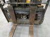 This forklift is a 2017 caterpillar GP30N model. The hour meter show 1731 hours. The max left capacity is 9880 pounds. The seat is torn. The engine cover gasket is torn. All panels are showing chips, scratches, and scuffs. The mat, front left fender, left side skirt, counterweight, right side skirt, and right front fender have peeling paint. The front panel, right fender, dented. This unit starts and runs with out a boost. This unit is powered by a 61 horsepower GNFXB0 2.5L four-cylinder LPG engine with a 1 / 1 power shift transmission. The tires are mounted to steel rims, and appeared to be in good enough condition for use. This unit is equipped with a two stage mast and 4 foot forks.