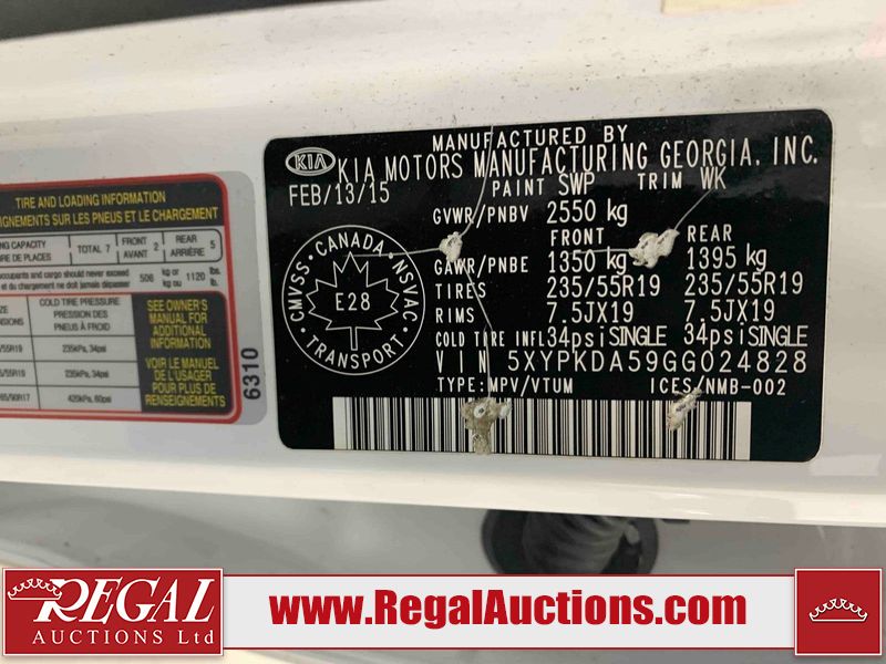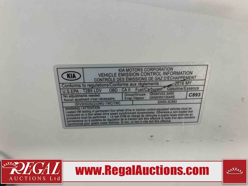This 2016 KIA SORENTO SX 4D UTILITY is powered by a 3.3L V6 gasoline engine and an automatic transmission. It is equipped with all-wheel drive. The SUV has seats for 5 people. The SUV has low mileage for its age. The vehicle has high-value options, including leather upholstery, power seats, heated seats, navigation, a backup camera, and a power lift gate. The body looks to be in fair condition overall. There are minor chips on the front bumper, hood, and rear bumper. There are slight scratches on the rear bumper. There is minor dent damage on the right front fender. There are very minor scratches in many areas around the body. There are very minor chips in many areas around the body. The interior looks to be in good condition overall. The dashboard, driver's seat, passenger seat, rear seats, and doors are dirty. The carpet is dirty. The windshield is chipped. All of the tires have lots of tread remaining. This SUV is being sold by an automotive broker. The vehicle will be sold with the following declarations: Out of Province - BC (See Footnote 1) and Claims Total $10,000 - $14,999 (See Footnote 2). Footnotes: 1) The vehicle's last registered jurisdiction is British Columbia. The purchaser must have the vehicle undergo and pass an Out of Province inspection before it can be registered in Alberta. 2) The vehicle's total recorded insurance claims history is between $10,000 - $14,999. This is the amount of money that was paid out by an insurance company for repairs to cover claims against the vehicle's insurance policy. This information is provided by CarFax. Regal Auctions Ltd. makes no guarantee or warranty, either express or implied, with respect to the data provided in this report. The information has been provided from the consignor and from sources generally believed to be reliable, however the accuracy of this information cannot be guaranteed by Regal Auctions.