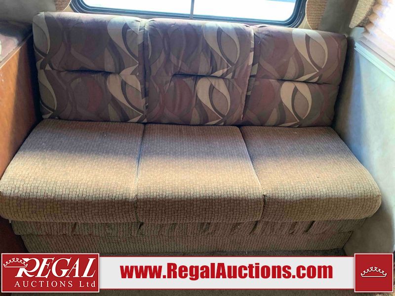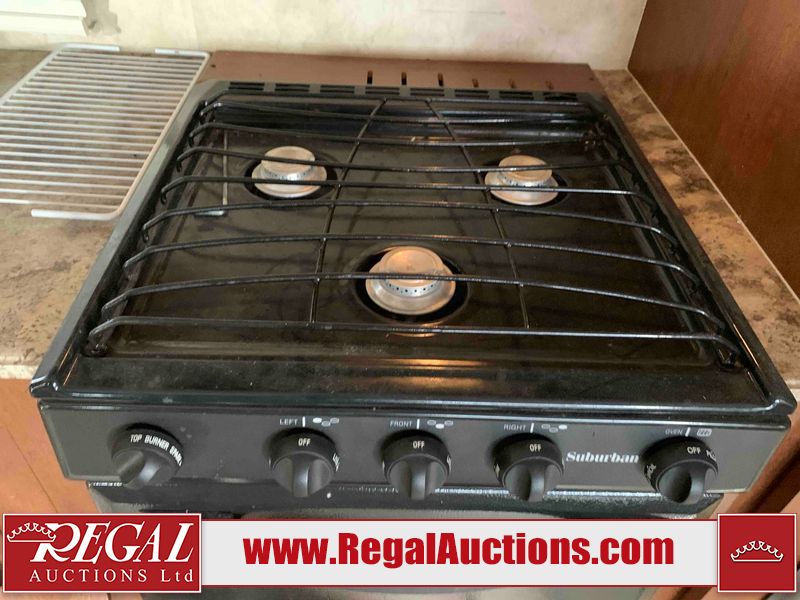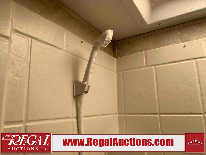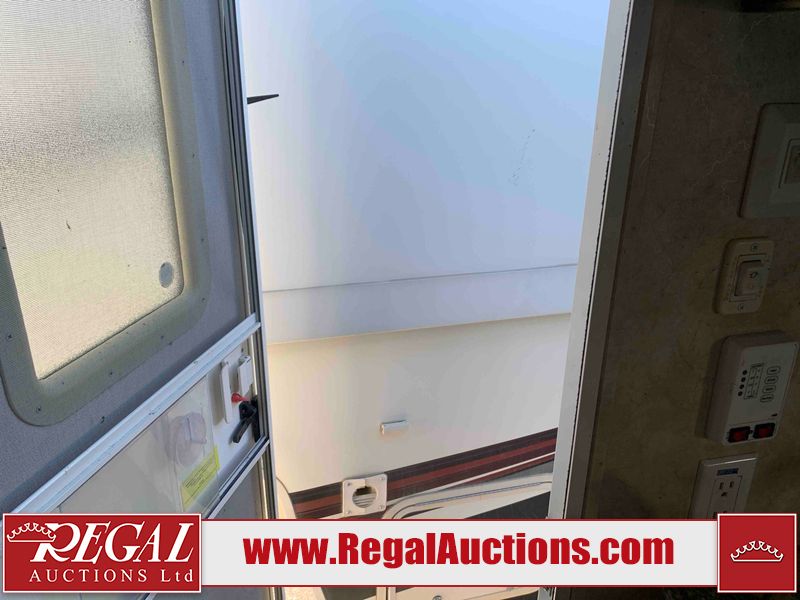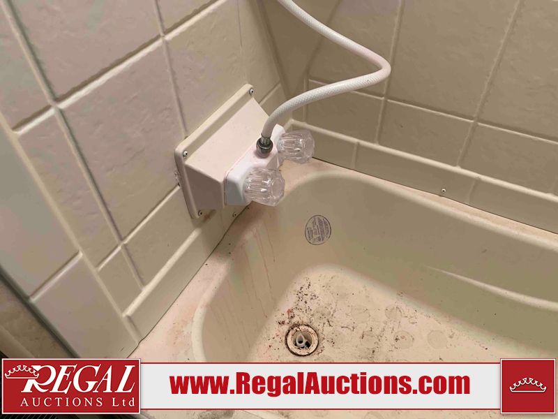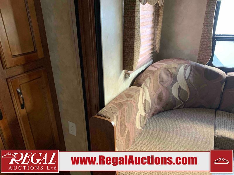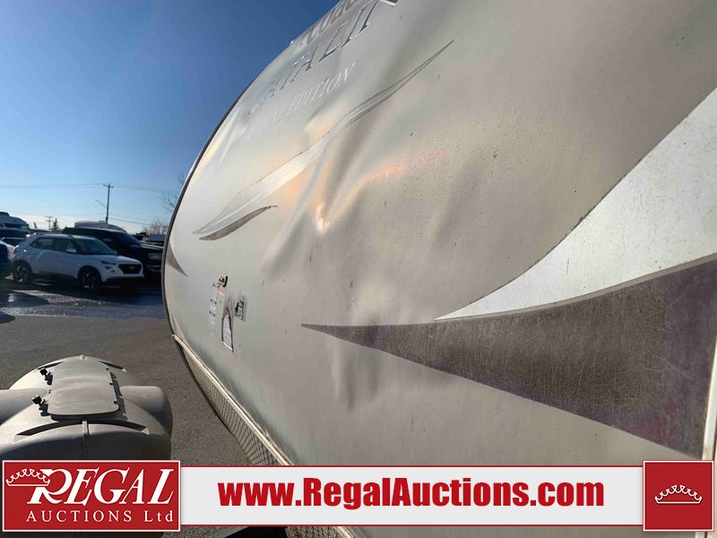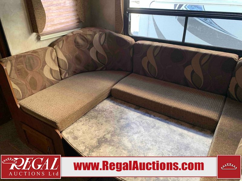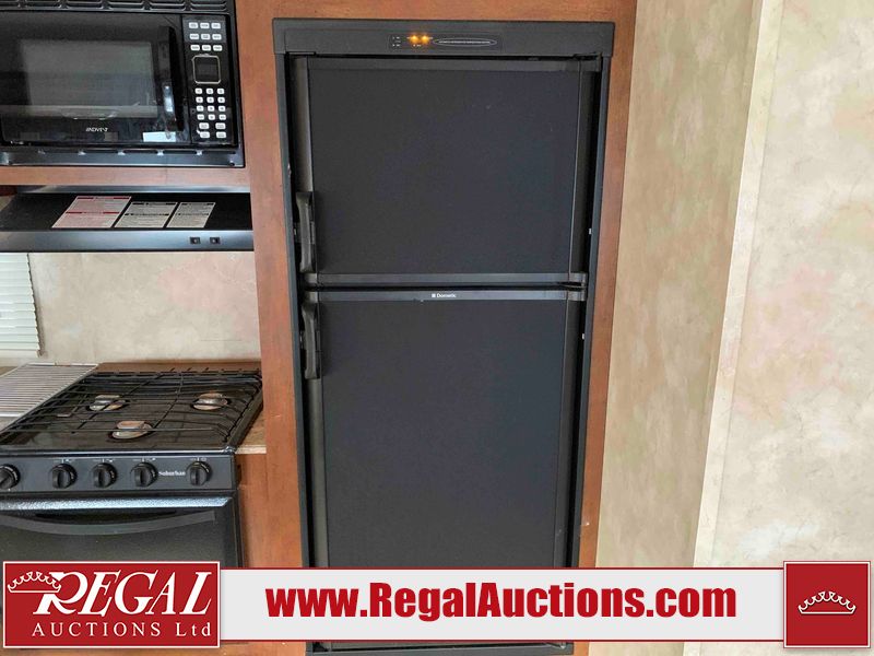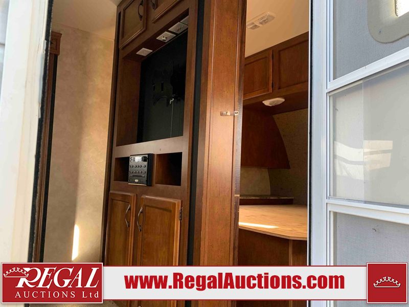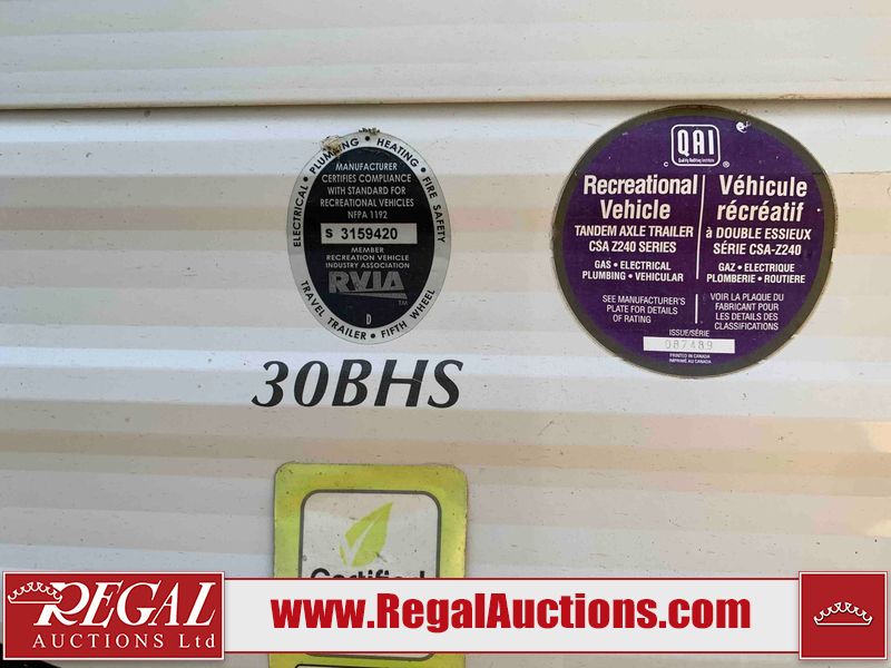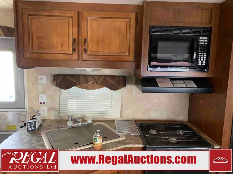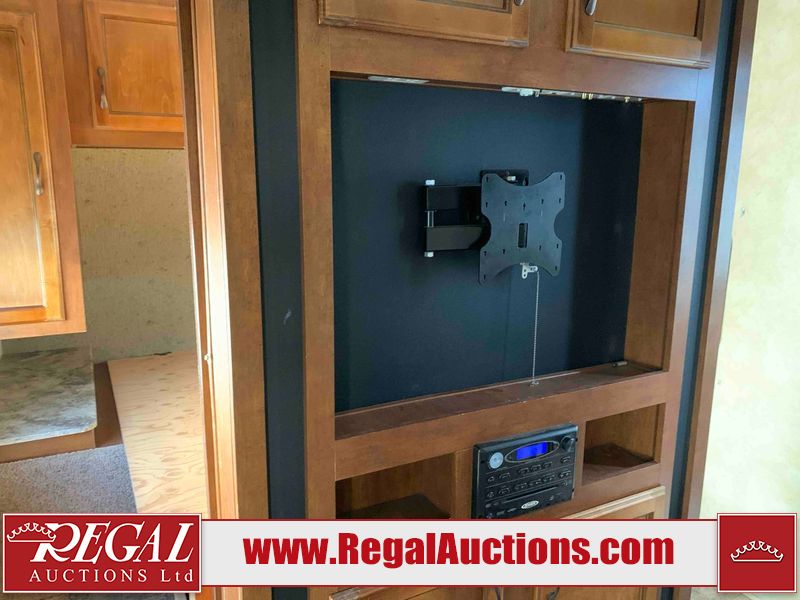 This RV is a 2013 Forest River Catalina 30BHS model tandem axle bumper trailer. It has a single door entry, roof air, single slide out accommodating the living area. The interior is dirty. The mattress is missing. Some walls are showing scratches and scuffs. The master bedroom window curtains are missing and detached. The floor is lifting. The television is missing. The carpet is stained. The couch is stained. The dinette table is removed and sitting in the kitchen area floor. All bunkhouse bed are missing, the bunkhouse walls are showing mildew. All rear sky windows trim is cracked. The refrigerator panels are showing signs of water damage. The exterior walls are made out of soft wall aluminum. The tires are mounted to alloy wheels and appear to be good enough condition to use. All walls are showing scuffs, scratches and chips. The front and left front wall are showing water delamination. Some decals are peeling. The rear wall is dented. The rear right wall lower trim is separating. The right wall has hail damage. This unit gets power with external power applied. The battery is missing. The tires are mounted to alloy rims and appear to be in good enough condition for use. The RV is equipped with a microwave, three burner stove top, oven, refrigerator, and a stereo system. The layout consist of the master bedroom in the front, kitchenette/dinette in the center, and washroom/bunkhouse at the rear.