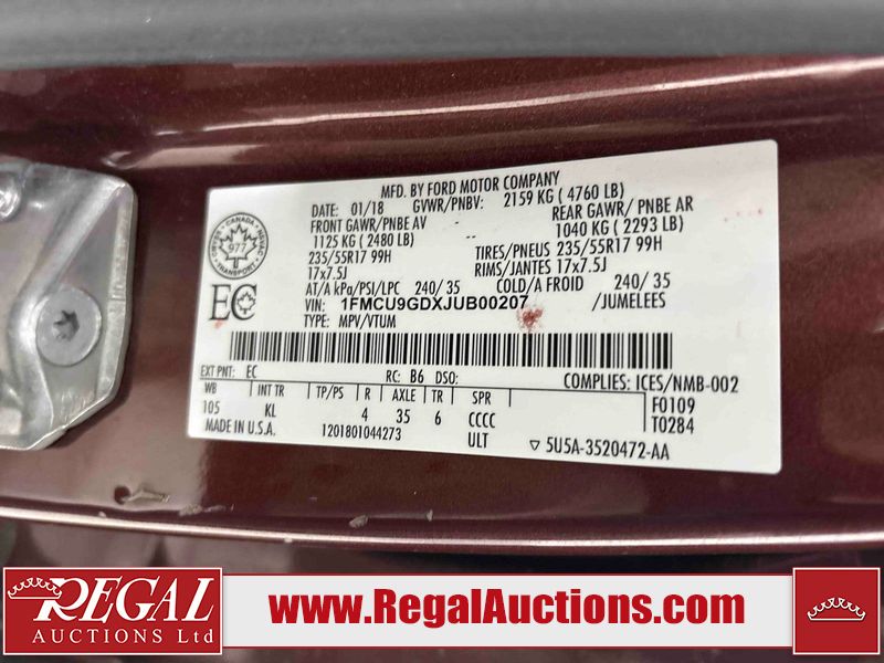 This 2018 FORD ESCAPE 4D UTILITY is powered by a turbocharged 1.5L 4-cylinder gasoline engine and an automatic transmission. It is equipped with four-wheel drive. The SUV has seats for 5 people. The SUV has high mileage for its age. The vehicle has high-value options, including power seats and a backup camera. The vehicle has some mechanical problems. The exhaust is noisy. (See Footnote 1) The body looks to be in good condition overall. The grille is cracked. There are minor chips on the hood. There are very minor chips in many areas around the body. There are very minor scratches in many areas around the body. There is very minor dent damage in a few areas around the body. The interior looks to be in good condition overall. The windshield is chipped. All of the tires have lots of tread remaining. This SUV is being sold by an automotive broker. The vehicle will be sold with the following declarations: Auctioneer Announcement "*EXHAUST LEAK/NOISE* ". Footnotes: 1) We've identified some mechanical problems with the vehicle. However, the vehicle has not undergone a mechanical inspection and our findings are not to be considered a complete evaluation of the vehicle's mechanical condition. Review our Buyer Protection Policy to see how Regal Auctions protects you from undisclosed mechanical problems. Regal Auctions Ltd. makes no guarantee or warranty, either express or implied, with respect to the data provided in this report. The information has been provided from the consignor and from sources generally believed to be reliable, however the accuracy of this information cannot be guaranteed by Regal Auctions.