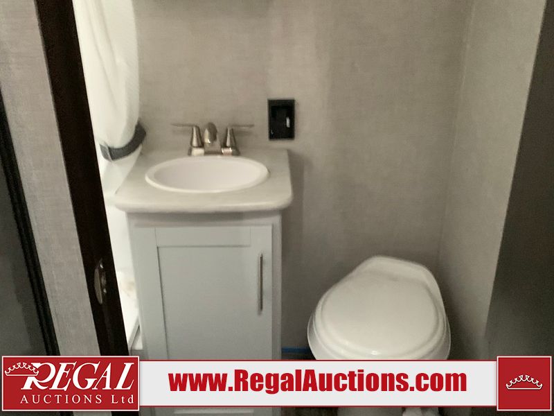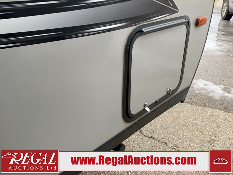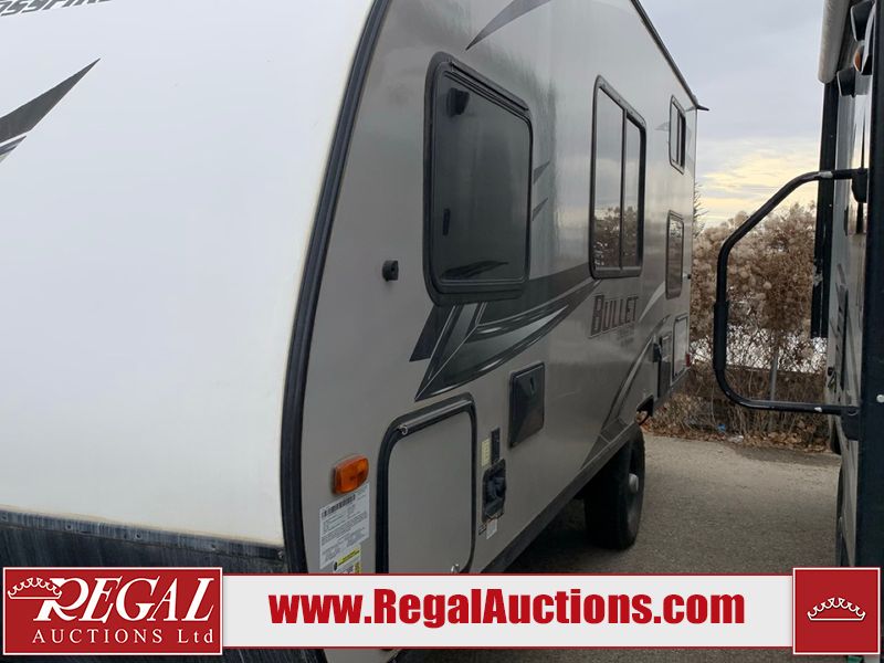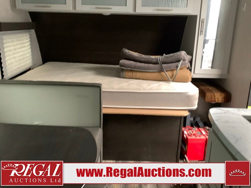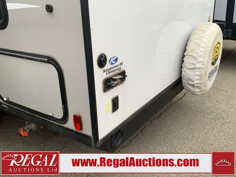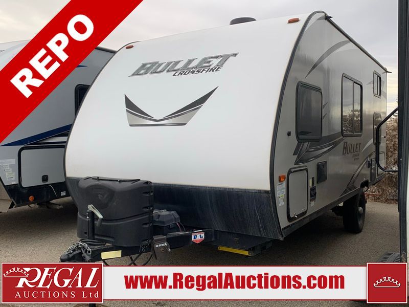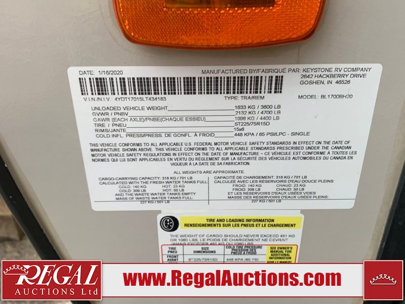 This RV is a 2020 Keystone Bullet 1700BH model bumper pull travel trailer. This unit unit has a single entry door and roof air. The interior is dirty. Some of the interior trim has scratches. The floor has scuffs. The exterior walls are made of hardware fiberglass. The front metal panel has chips. Both side wall have scratches. Some of the decals have faded. The unit unit is equipped two propane tanks and two batteries, the batteries have been removed in our inside interior. Steel rims are mounted, the tires appear to be in good enough condition for use. The layout consists of a master bed at the front, a living area/kitchen at the centre and a washroom/bunkhouse at the rear. the unit is equipped with a two burner stove, microwave, refrigerator, and a stereo system.