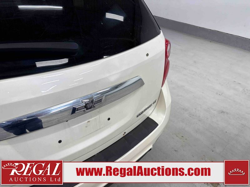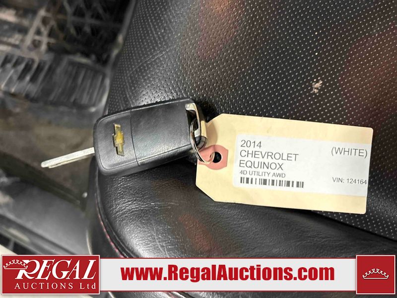 This 2014 CHEVROLET EQUINOX 4D UTILITY AWD is powered by a 2.4L 4 cylinder gasoline engine and an automatic transmission. It is equipped with four wheel drive. The SUV has seats for 5 people. The mileage is average considering the SUV's age. The vehicle has high value options including a sunroof, leather upholstery, power seats, heated seats, and a backup camera. The body looks to be in rough condition overall. There is conspicuous rust on the left front fender and right front fender. The left front fender and left rear fender have been repainted poorly. There are minimal chips on the front bumper and left rear door. There are minimal dents on the hood and roof. There is incidental rust on the left rear fender, rear door, and right rear fender. There are incidental scratches on the rear bumper. There is dent damage on the rear door and right rear door. There are very minor scratches in many areas around the body. There is very minor dent damage on the front bumper. There are very minor chips in many areas around the body. The interior looks to be in good condition overall. The windshield is chipped. All of the tires have lots of tread remaining. This SUV is being sold by an automotive broker. Regal Auctions Ltd. makes no guarantee or warranty, either express or implied, with respect to the data provided in this report. The information has been provided from the consignor and from sources generally believed to be reliable, however the accuracy of this information cannot be guaranteed by Regal Auctions.
