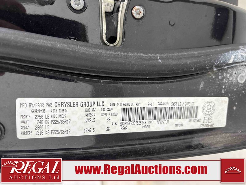 This 2011 DODGE JOURNEY 4D UTILITY is powered by a 3.6L V6 gasoline engine and an automatic transmission. It is a two-wheel drive model. The SUV has seats for 7 people. The SUV has low mileage for its age. The vehicle has high-value options, including a sunroof and power seats. The Tire Pressure light is on. The body looks to be in fair condition overall. There is moderate rust on the left front fender. The left front fender and right rear fender have been repainted poorly. There is minor rust on the right rear fender. There is incidental dent damage on the right rear door. There are very minor chips in many areas around the body. There are very minor scratches in many areas around the body. There is very minor dent damage on the left front fender. The interior looks to be in good condition overall. The windshield is chipped. The tires are all worn. This SUV is being sold by an automotive broker. The vehicle will be sold with the following declarations: Out of Province - BC (See Footnote 1) and Out of Province - AB OVERRIDE (See Footnote 2). Footnotes: 1) The vehicle's last registered jurisdiction is British Columbia. The purchaser must have the vehicle undergo and pass an Out of Province inspection before it can be registered in Alberta. 2) Out of province inspection for registering the vehicle in Alberta has been completed. Regal Auctions Ltd. makes no guarantee or warranty, either express or implied, with respect to the data provided in this report. The information has been provided from the consignor and from sources generally believed to be reliable, however the accuracy of this information cannot be guaranteed by Regal Auctions.
