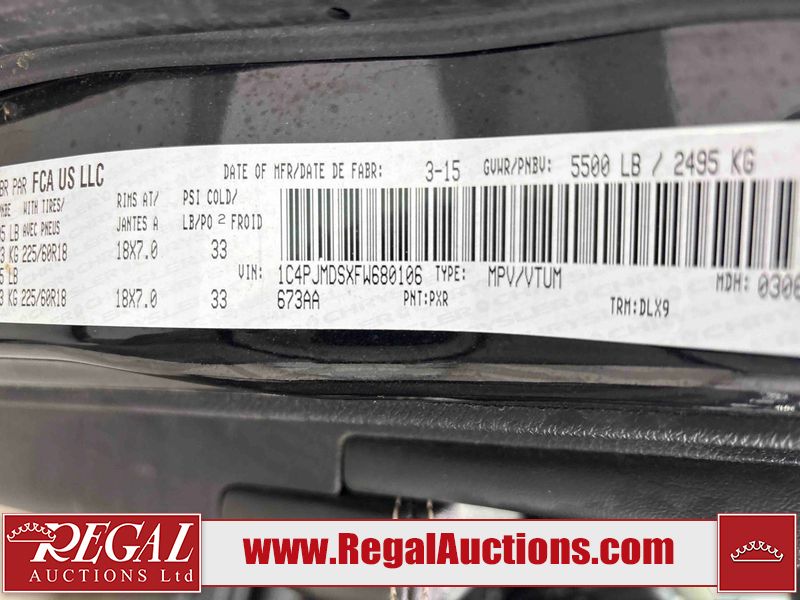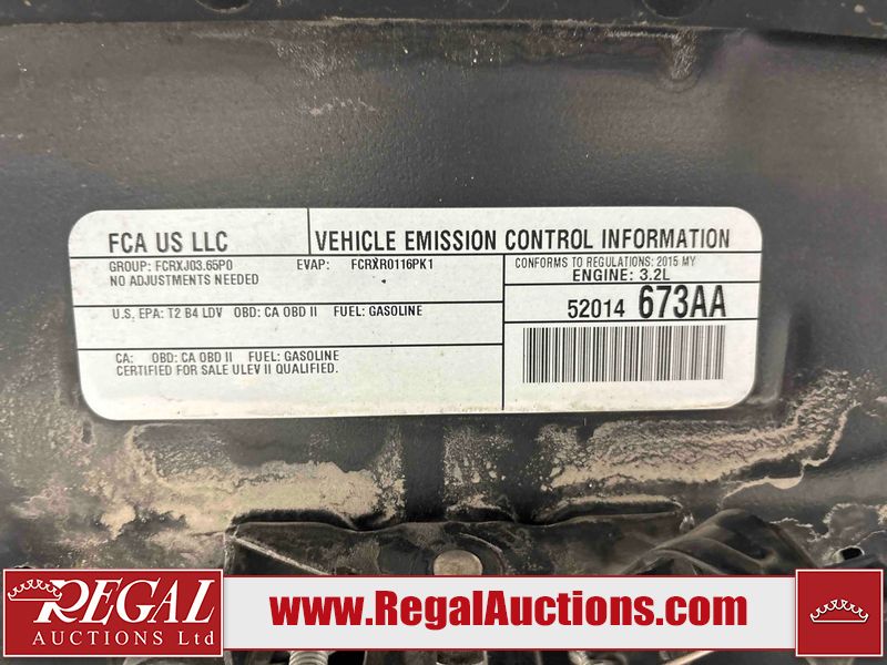 This 2015 JEEP CHEROKEE LIMITED 4D UTILITY is powered by a 3.2L V6 gasoline engine and an automatic transmission. It is equipped with four-wheel drive. The SUV has seats for 5 people. The SUV has low mileage for its age. LIMITED is a very popular trim level. The vehicle has high-value options, including a sunroof, leather upholstery, power seats, heated seats, navigation, and a backup camera. The body looks to be in fair condition overall. There are incidental scratches on the front bumper, left rear fender, and right rear door. There is minimal rust on the hood. There are very minor chips in many areas around the body. There are very minor scratches in many areas around the body. There is very minor dent damage on the left front door. The interior looks to be in good condition overall. The windshield is chipped. All of the tires have lots of tread remaining. This SUV is being sold by an automotive broker. The vehicle will be sold with the following declarations: Out of Province - BC (See Footnote 1) and Out of Province - AB OVERRIDE (See Footnote 2). Footnotes: 1) The vehicle's last registered jurisdiction is British Columbia. The purchaser must have the vehicle undergo and pass an Out of Province inspection before it can be registered in Alberta. 2) Out of province inspection for registering the vehicle in Alberta has been completed. Regal Auctions Ltd. makes no guarantee or warranty, either express or implied, with respect to the data provided in this report. The information has been provided from the consignor and from sources generally believed to be reliable, however the accuracy of this information cannot be guaranteed by Regal Auctions.