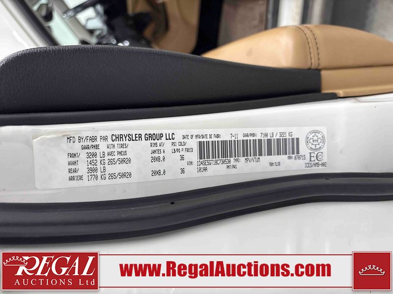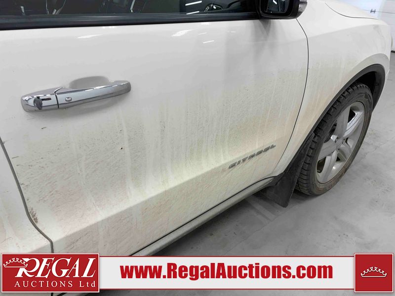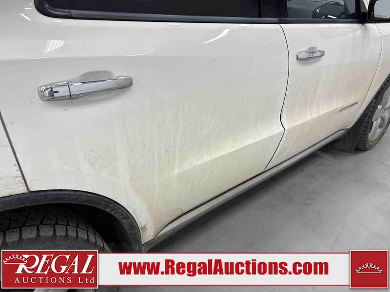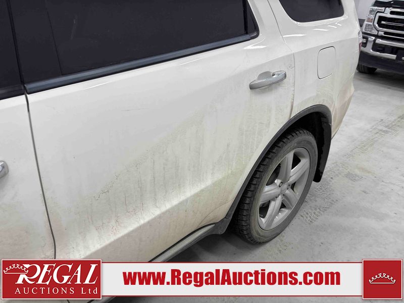 This 2011 DODGE DURANGO 4D UTILITY is powered by a 5.7L V8 gasoline engine and an automatic transmission. It is equipped with all-wheel drive. The SUV has seats for 7 people. The mileage is average considering the SUV's age. The vehicle has high-value options, including a sunroof, leather upholstery, power seats, heated seats, navigation, and a backup camera. The ABS light is on. The vehicle has some mechanical problems. The engine is making an abnormal noise. (See Footnote 1) The body looks to be in good condition overall. There are slight scratches on the front bumper. There are minimal chips on the hood. There is rust on the roof and right front door. There are very minor chips in many areas around the body. There are very minor scratches in many areas around the body. There is very minor dent damage on the right front fender. The interior looks to be in good condition overall. The driver's seat is torn. The windshield is chipped. All of the tires have lots of tread remaining. This SUV is being sold by a franchise dealership. The vehicle will be sold with the following declarations: Dealership Trade-In (See Footnote 2). Footnotes: 1) We've identified some mechanical problems with the vehicle. However, the vehicle has not undergone a mechanical inspection and our findings are not to be considered a complete evaluation of the vehicle's mechanical condition. Review our Buyer Protection Policy to see how Regal Auctions protects you from undisclosed mechanical problems. 2) This vehicle is being sold on behalf of a franchise dealership. Franchise Dealerships are automotive sales companies who are directly connected to an automotive manufacturer like Ford, Tesla, Honda, BMW, or similar. Regal Auctions Ltd. makes no guarantee or warranty, either express or implied, with respect to the data provided in this report. The information has been provided from the consignor and from sources generally believed to be reliable, however the accuracy of this information cannot be guaranteed by Regal Auctions.