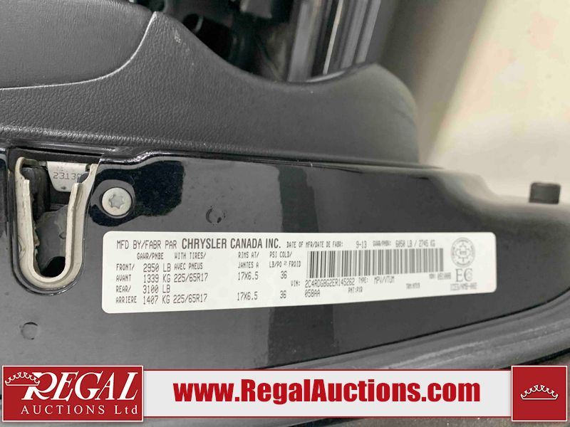 This 2014 DODGE GRAND CARAVAN is powered by a 3.6 liter 6 cylinder gasoline engine and an automatic transmission. The van has seats for 7 people. The van has low mileage for its age. The vehicle has high value options including power seats, a DVD Player, and a backup camera. The body looks to be in fair condition overall. There are incidental chips on the front bumper, grille, hood, rear bumper, and right front fender. There are minimal scratches on the front bumper, hood, left rear door, left rear fender, rear bumper, rear door, right rear fender, right rear door, and right front door. There is rust on the hood. There is incidental dent damage on the right front door. There are very minor chips in many areas around the body. There are very minor scratches in a few areas around the body. There is very minor dent damage on the left rear fender. The interior looks to be in good condition overall. The windshield is cracked. The front tires are nearly bald and should be replaced. The rear tires are worn. This van is being sold by an automotive broker. Regal Auctions Ltd. makes no guarantee or warranty, either express or implied, with respect to the data provided in this report. The information has been provided from the consignor and from sources generally believed to be reliable, however the accuracy of this information cannot be guaranteed by Regal Auctions.