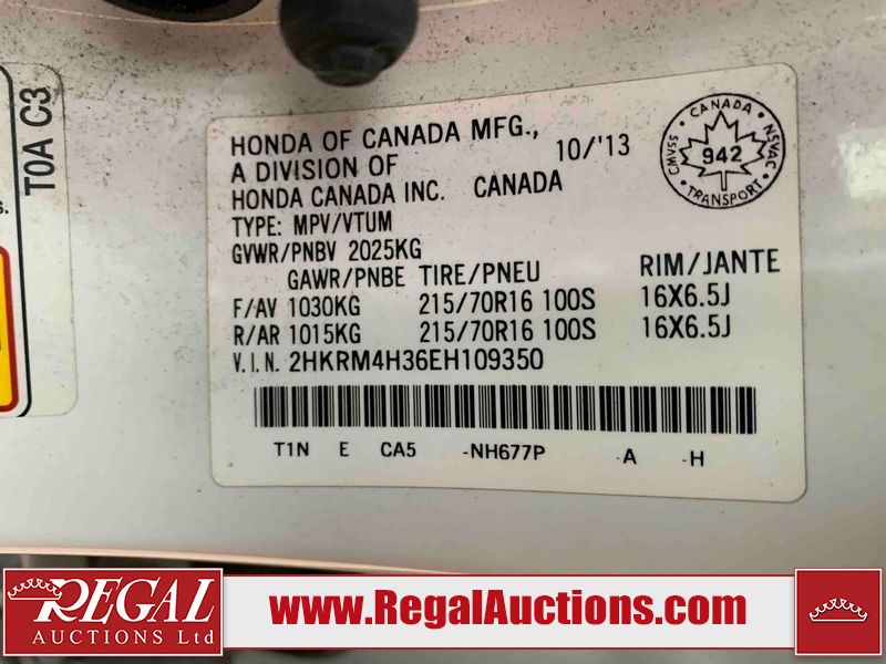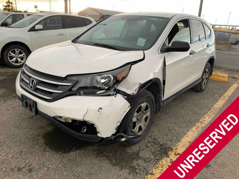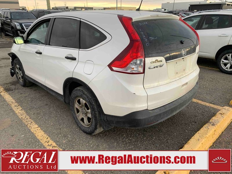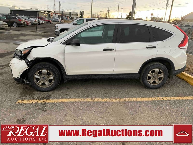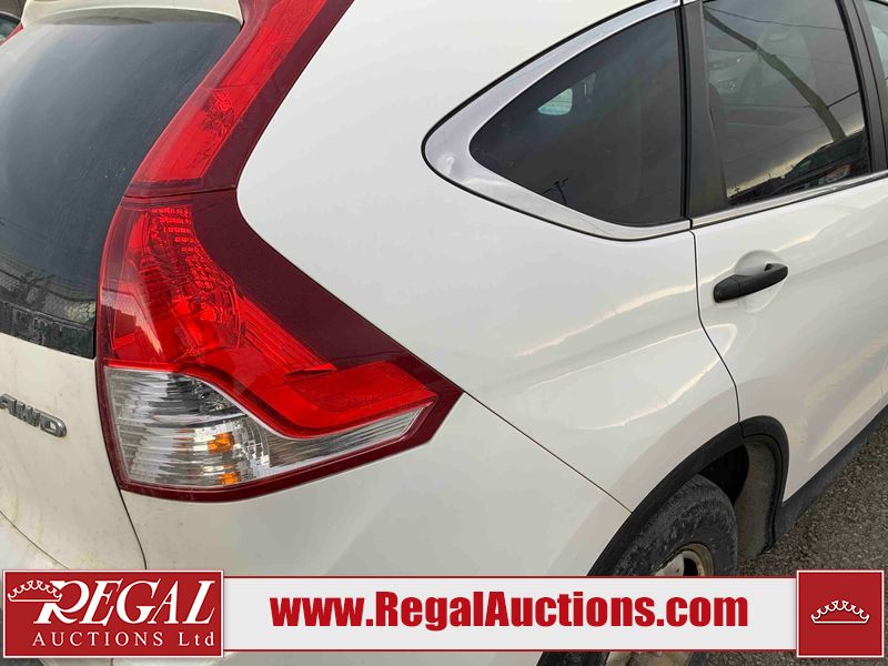 This 2014 HONDA CR-V LX 4D UTILITY is powered by a 2.4 liter 4-cylinder gasoline engine and an automatic transmission. It is equipped with all-wheel drive. The SUV has seats for 5 people. The SUV has high mileage for its age. The vehicle has high-value options, including heated seats and a backup camera. The Airbag and Check Engine lights are on. The vehicle has some mechanical problems. The vehicle is physically not drivable. It will have to be towed. The battery is dead. The vehicle requires a boost to start and may require a booster pack in order to stay running. (See Footnote 1) The body looks to be in rough condition overall. The front bumper is broken. There is very bad hail on the hood and roof. There is severe dent damage on the left front fender. There is some hail on the right rear fender and right front fender. There are chips on the hood. There are incidental scratches on the left rear door and rear bumper. There is slight hail on the right front door. There are very minor scratches in many areas around the body. There are very minor chips in many areas around the body. There is very minor dent damage on the right rear door. The headlights are broken. The fog lights are broken. The interior looks to be in fair condition overall. There are noteworthy stains on the passenger seat. There are cigarette burns on the doors. The doors are dirty. The carpet is dirty. The windshield looks to be in good condition. The driver's side front tire is nearly bald and should be replaced. The other tires are worn. This SUV is being sold by an automotive broker. The vehicle will be sold with the following declarations: Claims Total $3000 - $4999 (See Footnote 2), Frame Damage (See Footnote 3), Hail Damage (See Footnote 4), Mechanical Problems (See Footnote 1), and Out of Province - MB (See Footnote 5). Footnotes: 1) We've identified some mechanical problems with the vehicle. However, the vehicle has not undergone a mechanical inspection and our findings are not to be considered a complete evaluation of the vehicle's mechanical condition. Review our Buyer Protection Policy to see how Regal Auctions protects you from undisclosed mechanical problems. 2) The vehicle's total recorded insurance claims history is between $3,000 - $4,999. This is the amount of money that was paid out by an insurance company for repairs to cover claims against the vehicle's insurance policy. This information is provided by CarFax. 3) This vehicle's frame has been damaged and will require repair. 4) This vehicle shows signs of damage from a hail storm. Hail damage is not always clearly visible in photographs. 5) The vehicle's last registered jurisdiction is Manitoba. The purchaser must have the vehicle undergo and pass an Out of Province inspection before it can be registered in Alberta. Regal Auctions Ltd. makes no guarantee or warranty, either express or implied, with respect to the data provided in this report. The information has been provided from the consignor and from sources generally believed to be reliable, however the accuracy of this information cannot be guaranteed by Regal Auctions.