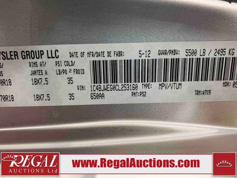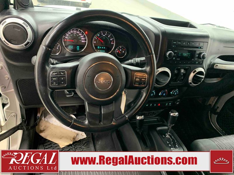 This 2012 JEEP WRANGLER SAHARA 4D UTILITY 4WD is powered by a 3.6L V6 gasoline engine and an automatic transmission. It is equipped with four-wheel drive. The SUV has seats for 5 people. The mileage is average considering the SUV's age. The vehicle has high-value options, including heated seats and a backup camera. The Tire Pressure light is on. The body looks to be in fair condition overall. There are minor chips on the hood, left front fender, left rear fender, right rear fender, and right front fender. There is minor hail on the hood. There is dent damage on the hood. There are minor scratches on the left front fender, left front door, left rear fender, and rear bumper. There are very minor chips on the grille. There are very minor scratches in many areas around the body. The interior looks to be in good condition overall. The driver's seat is torn. The windshield is cracked. The passenger side front tire is nearly bald and should be replaced. The passenger side rear tire is worn. Both driver's side tries have lots of tread remaining. This SUV is being sold by a franchise dealership. The vehicle will be sold with the following declarations: Dealership Trade-In (See Footnote 1). Footnotes: 1) This vehicle is being sold on behalf of a franchise dealership. Franchise Dealerships are automotive sales companies who are directly connected to an automotive manufacturer like Ford, Tesla, Honda, BMW, or similar. Regal Auctions Ltd. makes no guarantee or warranty, either express or implied, with respect to the data provided in this report. The information has been provided from the consignor and from sources generally believed to be reliable, however the accuracy of this information cannot be guaranteed by Regal Auctions.