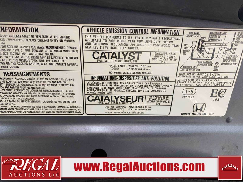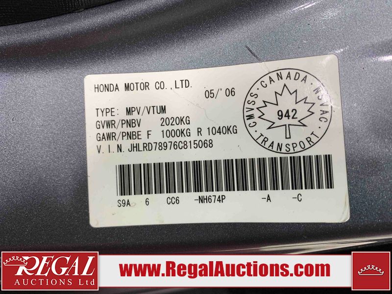 This 2006 HONDA CR-V 4D UTILITY 4WD is powered by a 2.4L 4 cylinder gasoline engine and an automatic transmission. It is equipped with four wheel drive. The SUV has seats for 5 people. The SUV has high mileage for its age. The vehicle has high value options including a sunroof, leather upholstery, and heated seats. The Check Engine light is on. The body looks to be in rough condition overall. There is very bad rust on the left rear fender and right rear fender. There are incidental chips on the front bumper, hood, and left front fender. There is minimal dent damage on the hood. There are minimal scratches on the hood, left front fender, left front door, left rear door, rear bumper, right rear fender, right rear door, right front door, and right front fender. There is paint overspray on the left front fender and right front fender. There is minor rust on the right front fender. There are very minor chips in a few areas around the body. There are very minor scratches on the left rear fender. The interior looks to be in good condition overall. The driver's seat is torn. The windshield looks to be in good condition. The passenger side tires are worn. The driver's side tires have lots of tread remaining. This SUV is being sold by a franchise dealership. The vehicle will be sold with the following declarations: Dealership Trade-In (See Footnote 1) and Out of Province - ON (See Footnote 2). Footnotes: 1) This vehicle is being sold on behalf of a franchise dealership. Franchise Dealerships are automotive sales companies who are directly connected to an automotive manufacturer like Ford, Tesla, Honda, BMW, or similar. 2) The vehicle's last registered jurisdiction is Ontario. The purchaser must have the vehicle undergo and pass an Out of Province inspection before it can be registered in Alberta. Regal Auctions Ltd. makes no guarantee or warranty, either express or implied, with respect to the data provided in this report. The information has been provided from the consignor and from sources generally believed to be reliable, however the accuracy of this information cannot be guaranteed by Regal Auctions.