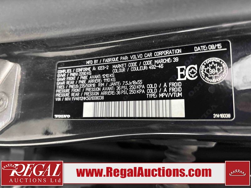 This 2016 VOLVO V60 T5 CROSS COUNTRY 4D WAGON 4WD is powered by a turbocharged 2.5 liter 5 cylinder gasoline engine and an automatic transmission. It is equipped with four wheel drive. The SUV has seats for 5 people. The SUV has low mileage for its age. The vehicle has high value options including a sunroof, leather upholstery, power seats, and a backup camera. There is a red warning light on. The body looks to be in good condition overall. The left front door has parts missing. There are minimal scratches on the left rear door. There are very minor chips in many areas around the body. There are very minor scratches in many areas around the body. There is very minor dent damage on the hood. The interior looks to be in good condition overall. The windshield looks to be in good condition. All of the tires have lots of tread remaining. This SUV is being sold by an automotive broker. The vehicle will be sold with the following declarations: Claims Total $3000 - $4999 (See Footnote 1) and Out of Province - BC (See Footnote 2). Footnotes: 1) The vehicle's total recorded insurance claims history is between $3,000 - $4,999. This is the amount of money that was paid out by an insurance company for repairs to cover claims against the vehicle's insurance policy. This information is provided by CarFax. 2) The vehicle's last registered jurisdiction is British Columbia. The purchaser must have the vehicle undergo and pass an Out of Province inspection before it can be registered in Alberta. Regal Auctions Ltd. makes no guarantee or warranty, either express or implied, with respect to the data provided in this report. The information has been provided from the consignor and from sources generally believed to be reliable, however the accuracy of this information cannot be guaranteed by Regal Auctions.