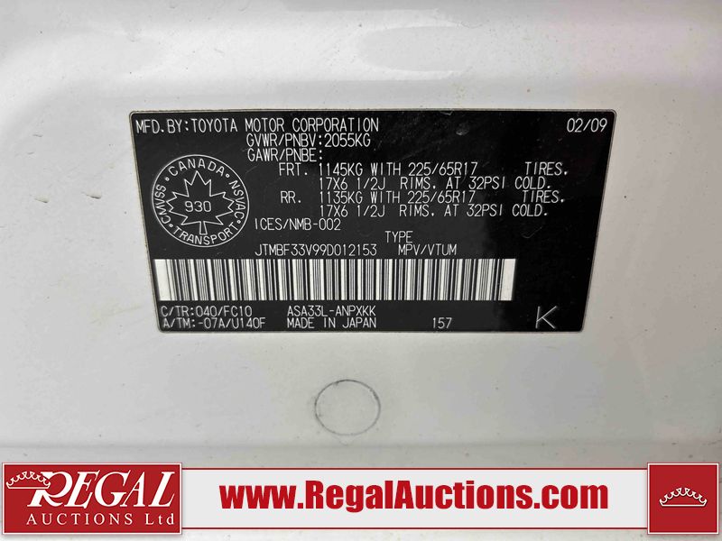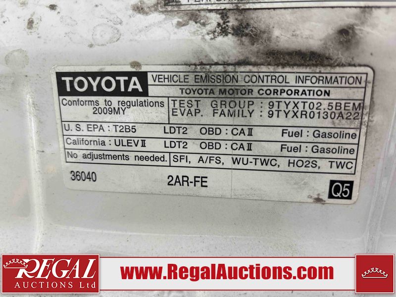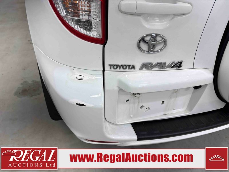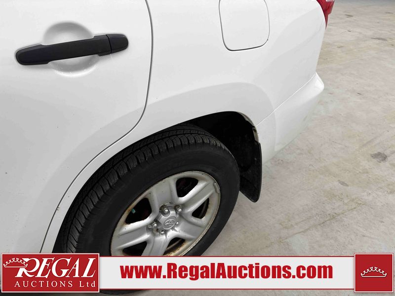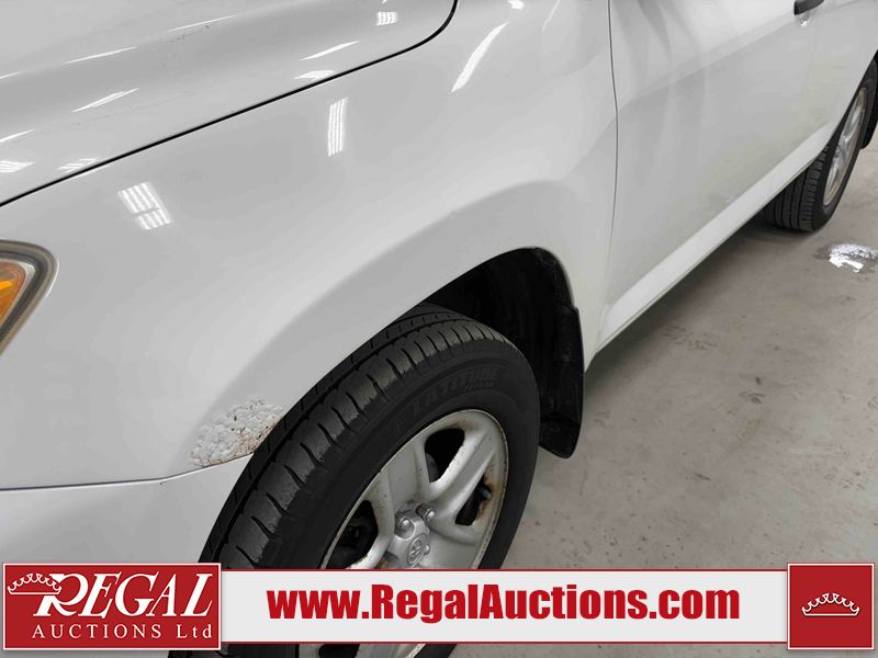 This 2009 TOYOTA RAV4 STANDARD 4D UTILITY 4WD is powered by a 2.5 liter 4-cylinder gasoline engine and an automatic transmission. It is equipped with four-wheel drive. The SUV has seats for 5 people. The SUV has low mileage for its age. The body looks to be in fair condition overall. There is pronounced rust on the left front fender and right front fender. The left front fender, rear bumper, and right front fender have been repainted poorly. There are chips on the hood and left rear fender. There is rust on the roof, right rear fender, right rear door, and right front door. There are minimal scratches on the rear bumper. There are very minor chips in many areas around the body. There are very minor scratches in many areas around the body. The interior looks to be in good condition overall. The windshield is cracked. The front tires are nearly bald and should be replaced. The rear tires have lots of tread. This SUV is being sold by an automotive broker. The vehicle will be sold with the following declarations: Claims Total $10,000 - $14,999 (See Footnote 1). Footnotes: 1) The vehicle's total recorded insurance claims history is between $10,000 - $14,999. This is the amount of money that was paid out by an insurance company for repairs to cover claims against the vehicle's insurance policy. This information is provided by CarFax. Regal Auctions Ltd. makes no guarantee or warranty, either express or implied, with respect to the data provided in this report. The information has been provided from the consignor and from sources generally believed to be reliable, however the accuracy of this information cannot be guaranteed by Regal Auctions.