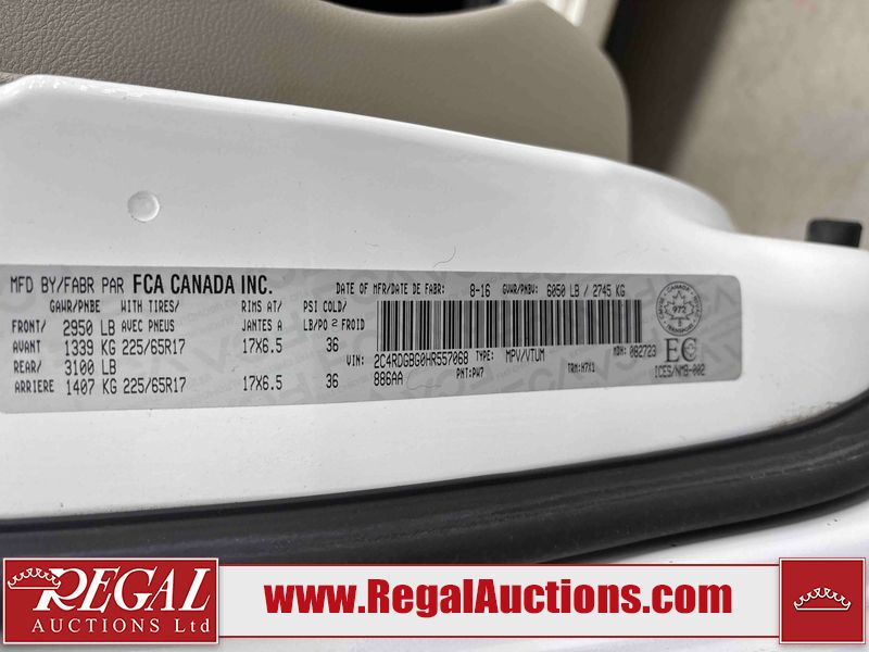 This 2017 DODGE GRAND CARAVAN SXT WAGON is powered by a 3.6 liter 6-cylinder gasoline engine and an automatic transmission. The van has seats for 7 people. The van has high mileage for its age. The vehicle has high-value options, including power seats and a backup camera. The Brake System light is on. The body looks to be in fair condition overall. The front bumper is broken. There are slight scratches on the front bumper, left rear fender, and rear bumper. There is rust on the roof, left rear fender, and right rear fender. There are chips on the left front fender. There are very minor chips in many areas around the body. There are very minor scratches in many areas around the body. There is very minor dent damage on the right rear door. The taillights are broken. The interior looks to be in good condition overall. The driver seat is torn. The windshield is damaged. All of the tires have lots of tread remaining. This van is being sold by an automotive broker. Regal Auctions Ltd. makes no guarantee or warranty, either express or implied, with respect to the data provided in this report. The information has been provided from the consignor and from sources generally believed to be reliable, however the accuracy of this information cannot be guaranteed by Regal Auctions.